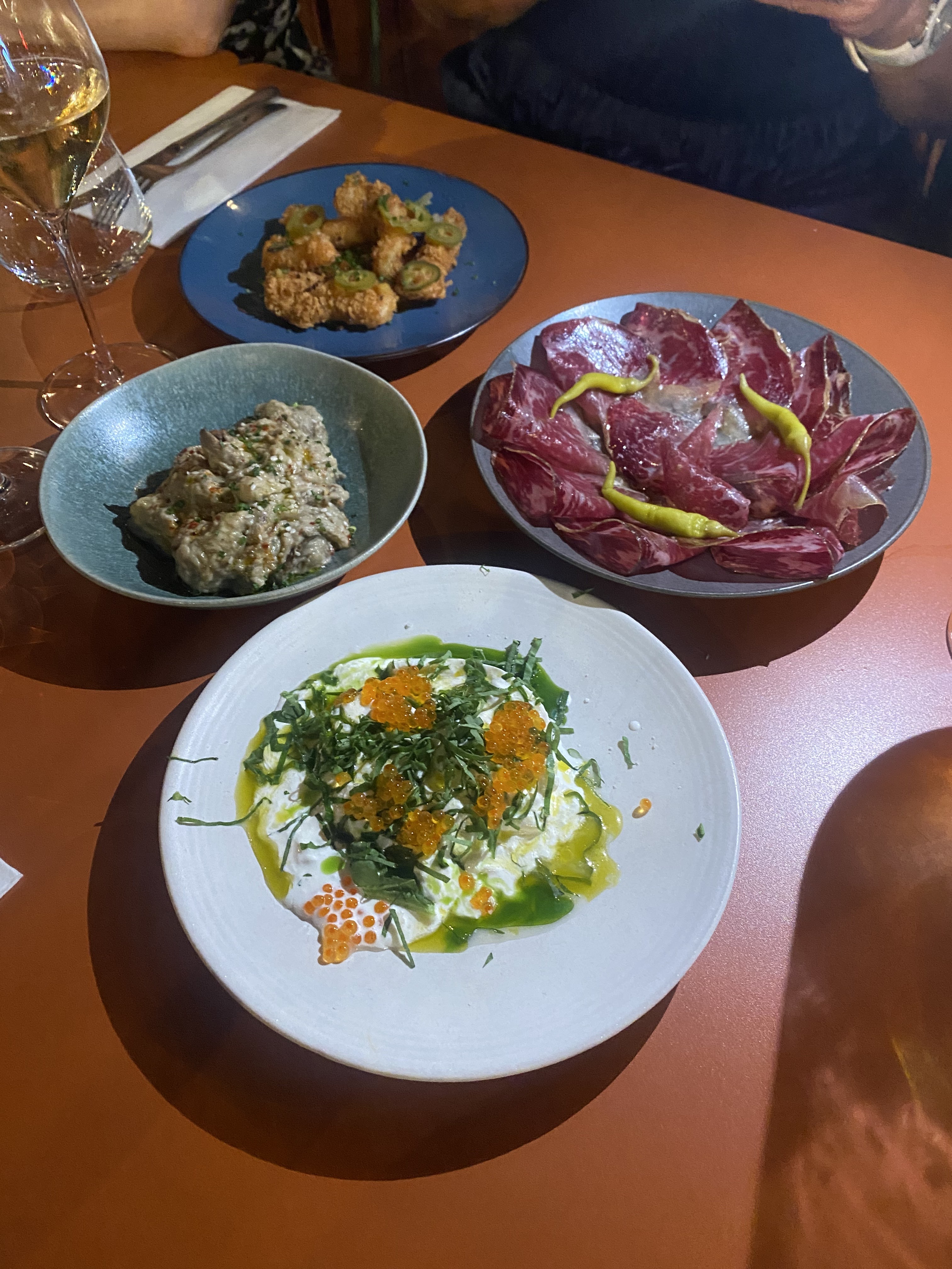 Nous étions 4 pour dîner Soirée Tapas chez Jean Jean Assez mitigé … légèrement décevant Carpaccio ✅ Asperges 🟰 Burrata pesto ✅ Arancini ❌ Saumon ❌ Manque d’assaisonnement, de peps ! Oui le restaurant offre une prestation différenciante dans le quartier Mais un peu insuffisant Cuisine ouverte et wc propres 🟢 Il faut clairement réajuster Service très correct , serveuse souriante