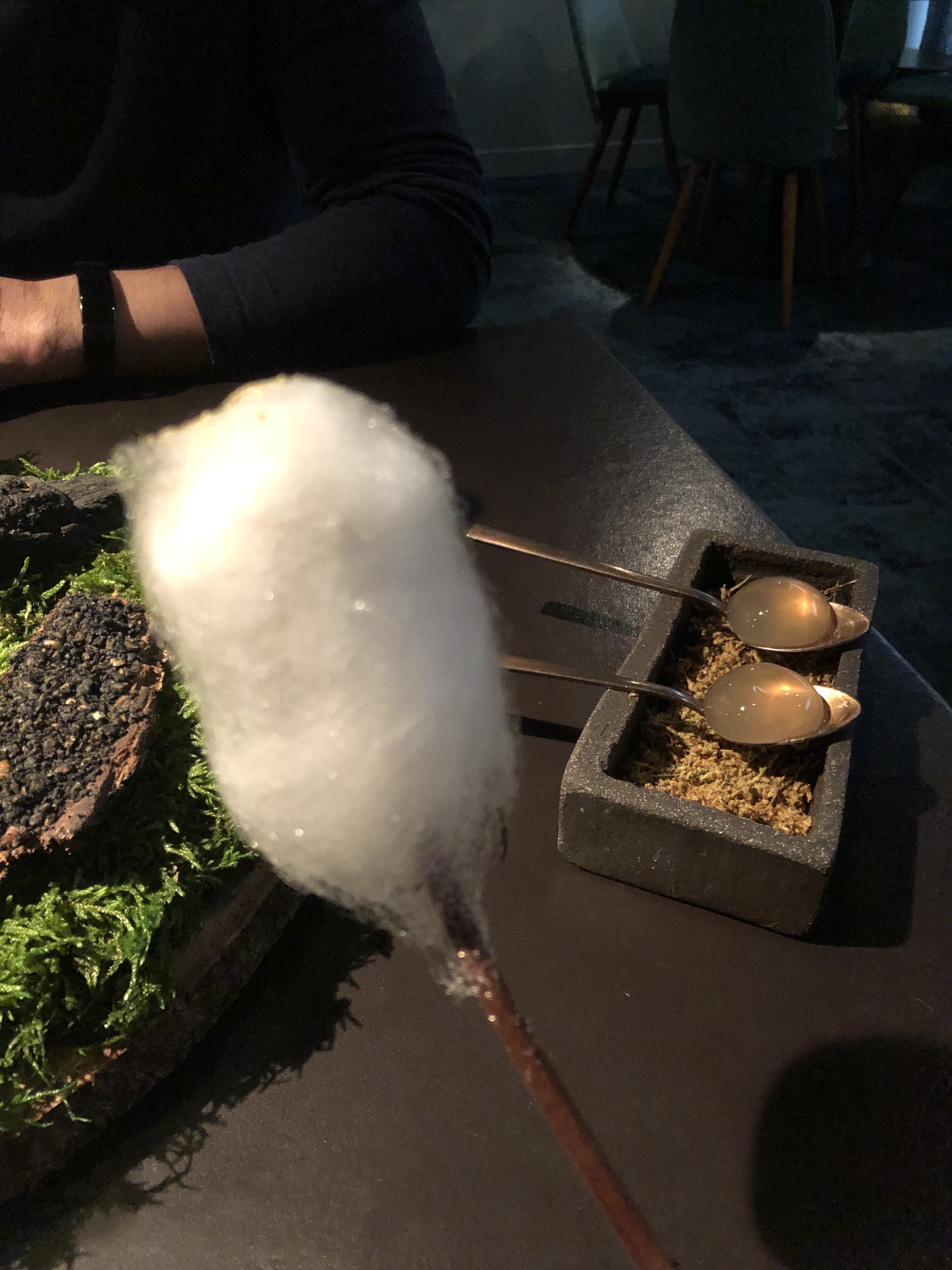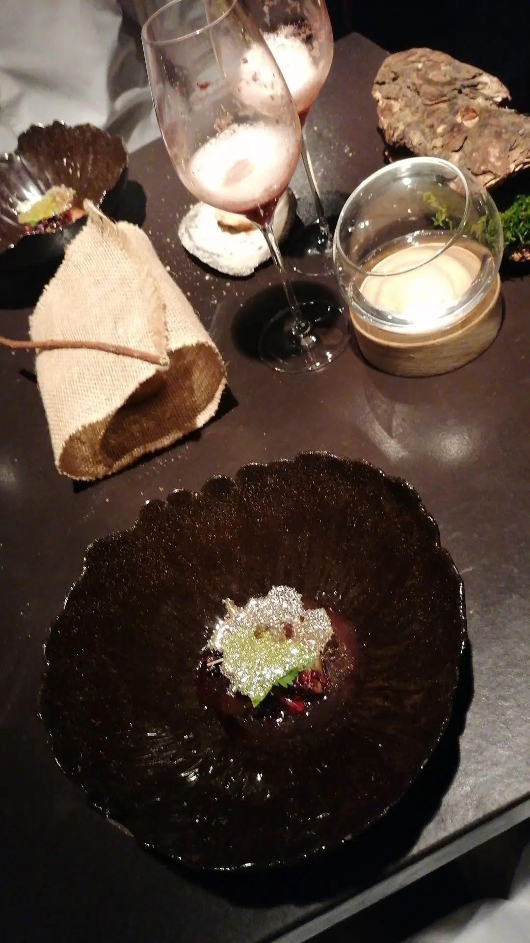 Expérience extraordinaire ! Repas autour de la forêt. Expérience juste génial. Le repas est une histoire, une balade au milieu de la forêt. Mousse, bois, audio, décoration, tout autour de la forêt. Plusieurs plats ayant chacun un intérêt ! Jolie jeux de texture, couleur, et de goût. Seul point négatif, j’ai trouvé que l’accord avec les vins n’était pas forcément le plus adapté. Je vous le conseille très vivement.