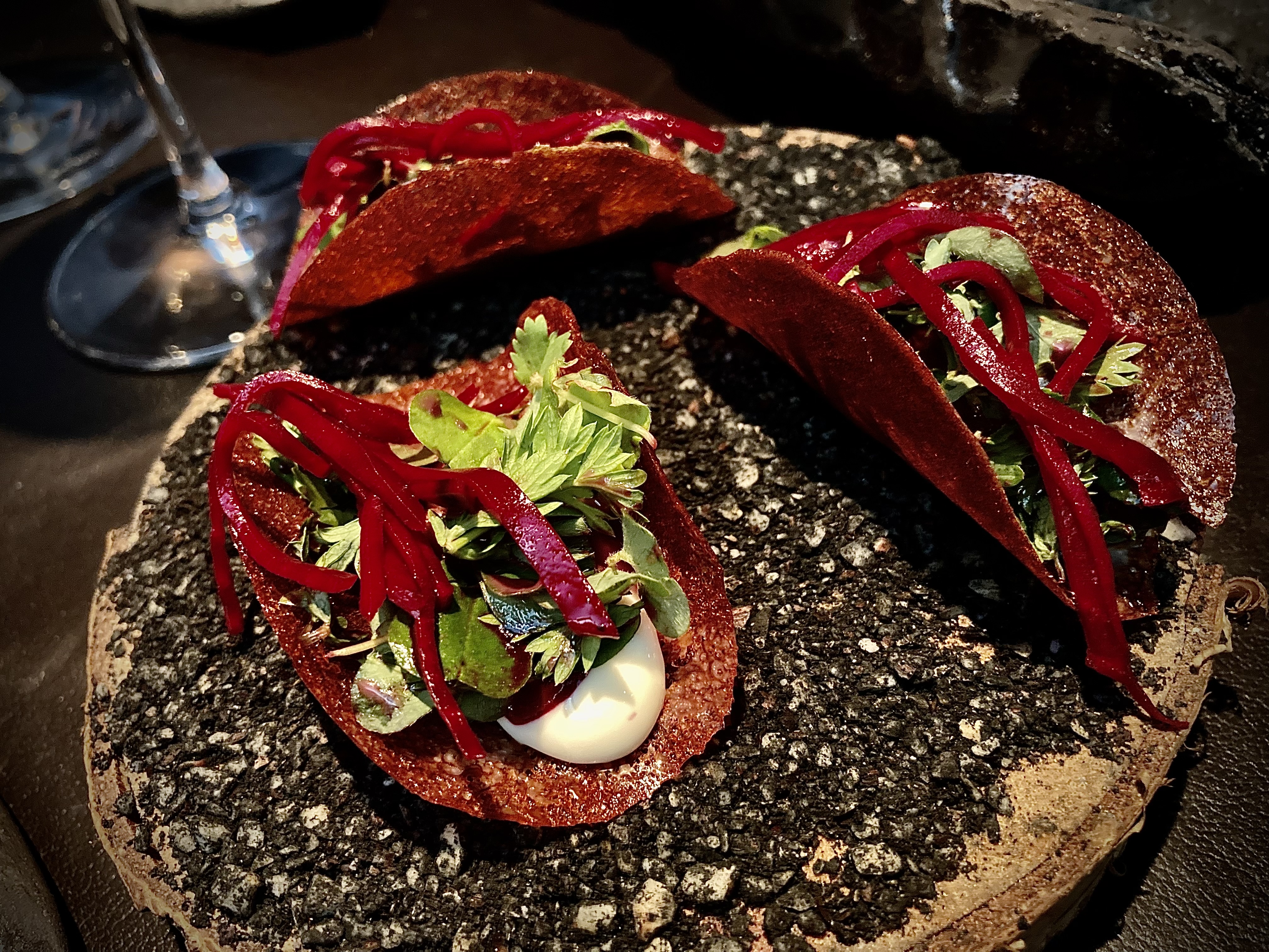 Un feu d’artifice dans la bouche et dans les yeux…une quarantaine de découvertes, originales, dont un plat à déguster avec un casque sur les oreilles. Ce chef est jeune et talentueux et son équipe est à sa hauteur. Un grand bon et beau moment comme on les aime.