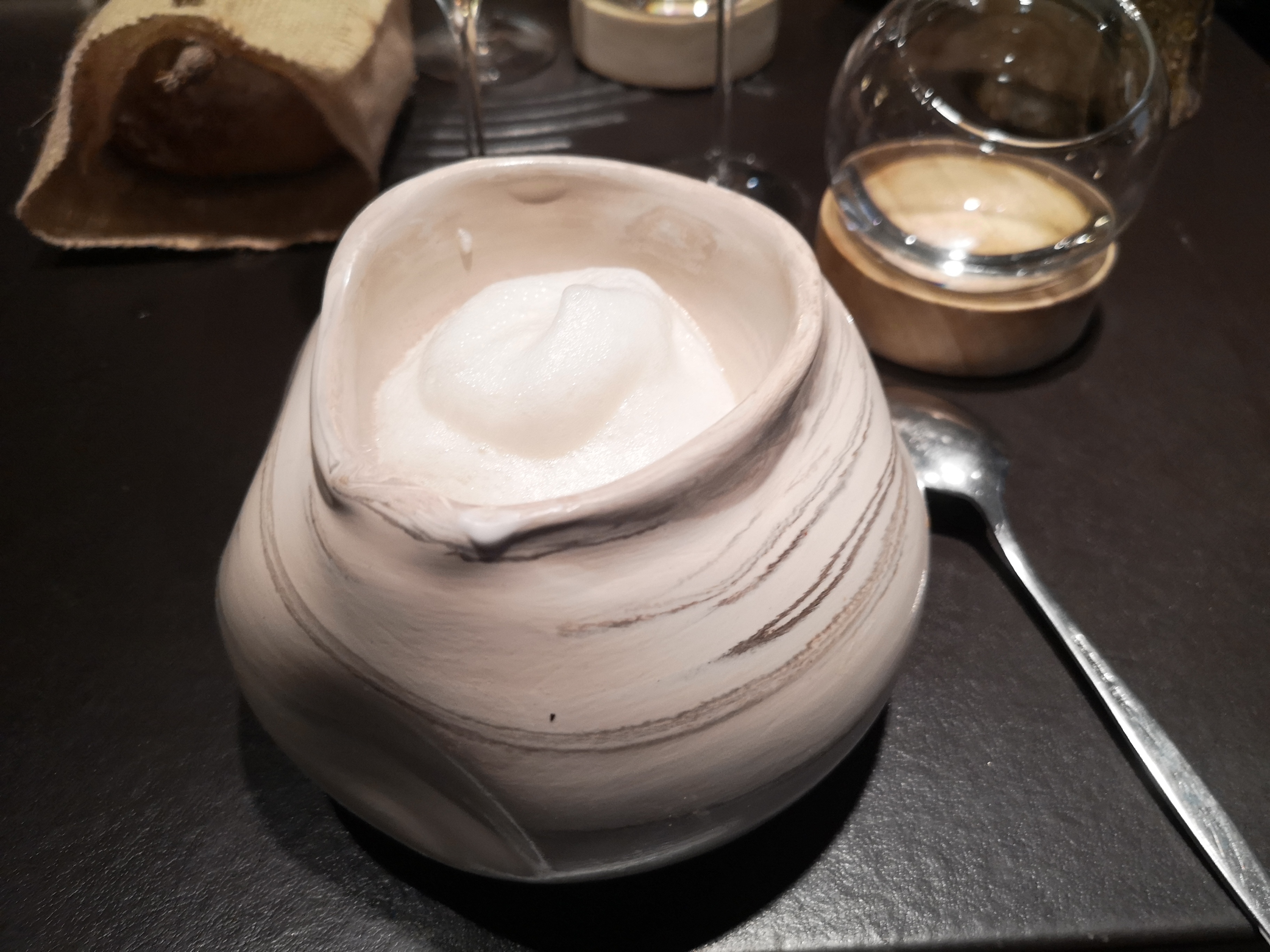 Nous avons pris le menu découverte 7 plats et 4 verres de vin. S'il y a performance esthétique, la satisfaction n'est pas forcément au rendez-vous, malgré des alliances originales. Le dessert à la mousse de lait par exemple a très peu de saveur. Par ailleurs ce menu est trop copieux, et les 4 verres de vin sont excessifs (quand bien même nous avons fait ce choix). Au fil du repas, on passe ainsi de la surprise bienheureuse à un excès de sophistication.