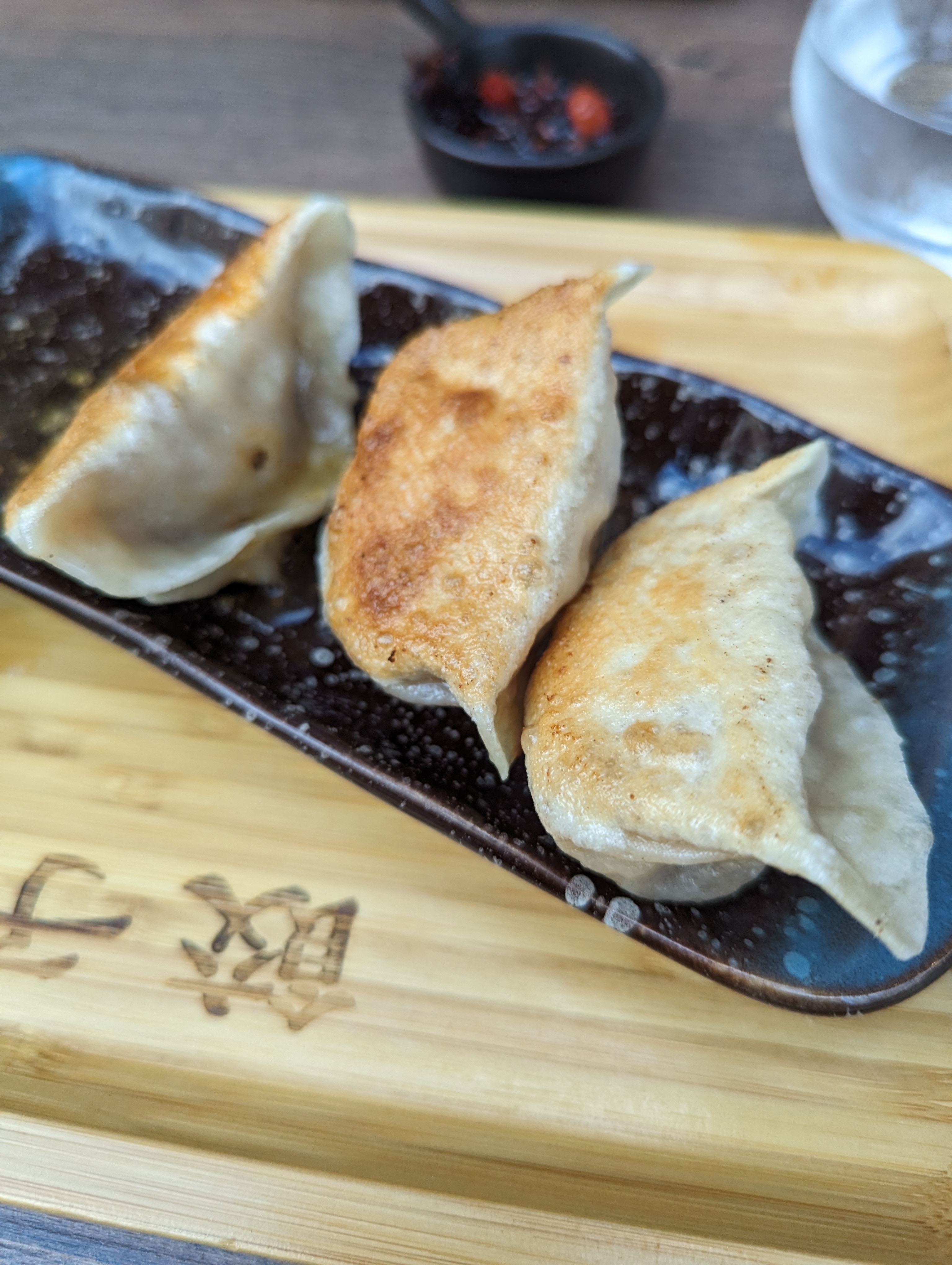Gyoza bien croustillants ! Bon rapport quantité prix pour le menu gyoza ! Personnel avenant et lieu dog friendly ♥️ j’ai envie de découvrir les autres raviolis à la carte Il y a plusieurs choix vg et quelques choix véganes