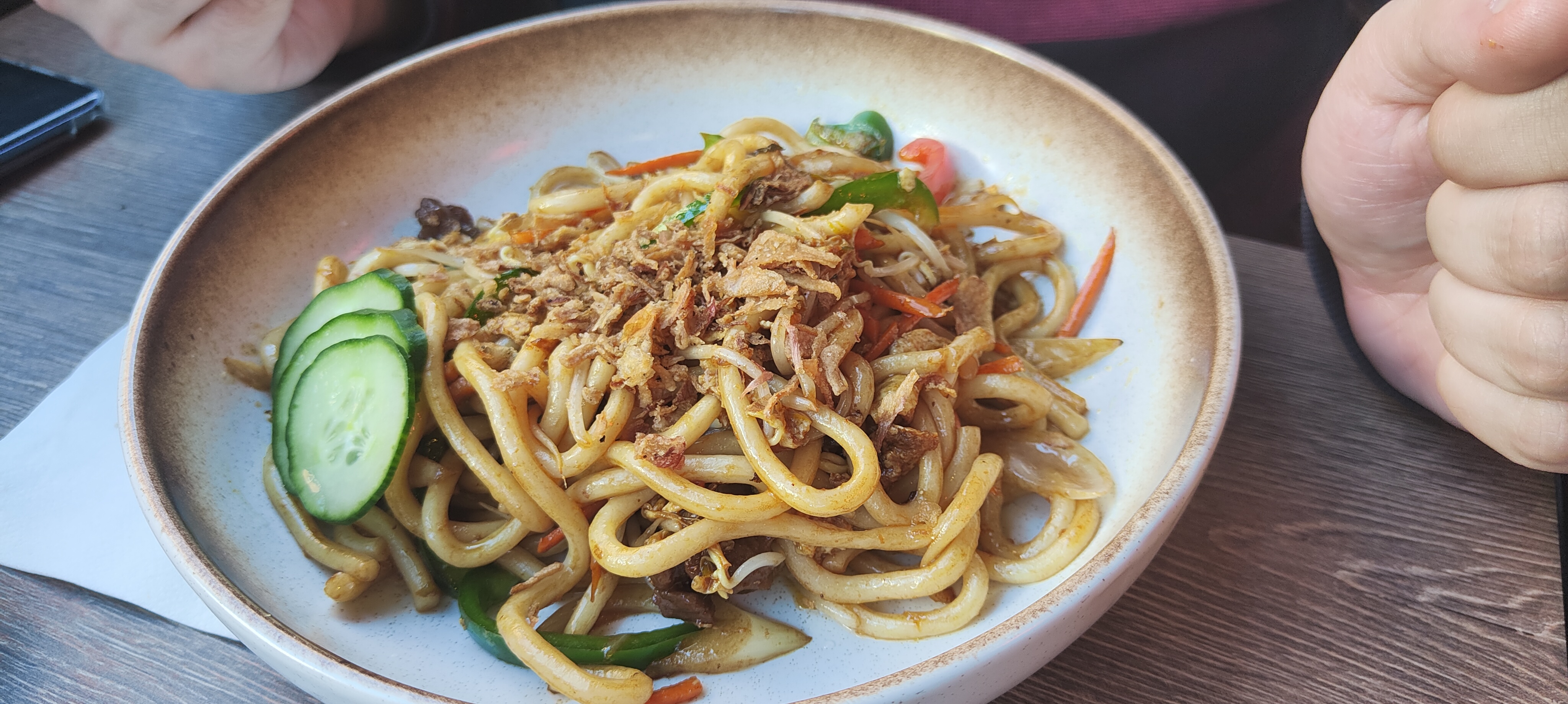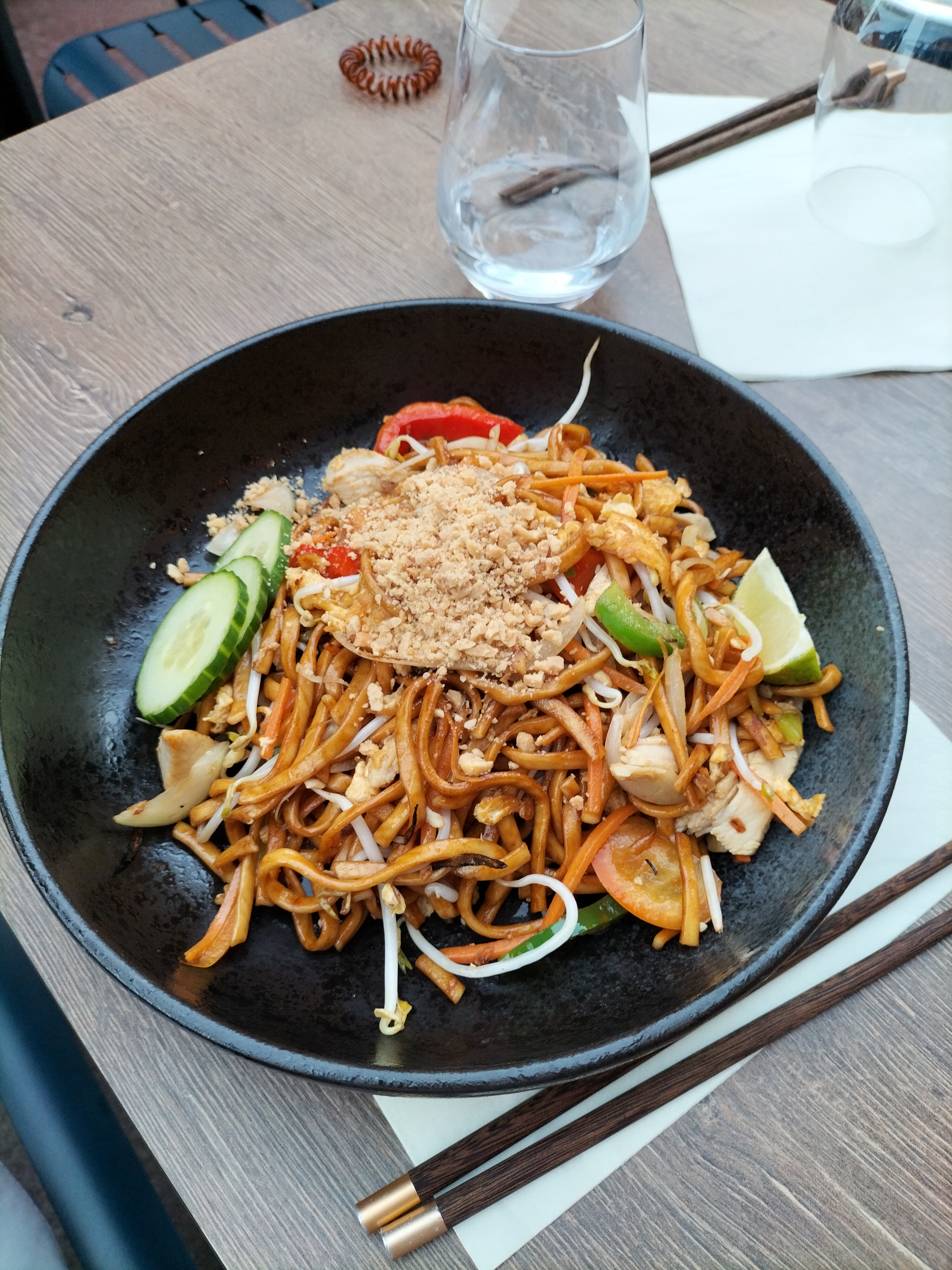En entrée, nous avons mangé de bons raviolis vapeur veggies et de succulents raviolis grillés gyozas poulet. En plats de résistance, nous avons fortement apprécié les nouilles udon sautés au poulet. Ils auraient mérité d'être un peu plus chaudes mais cela n'impactera pas la note car le goût y était ! Ma compagne et moi recommandons ce restaurant !