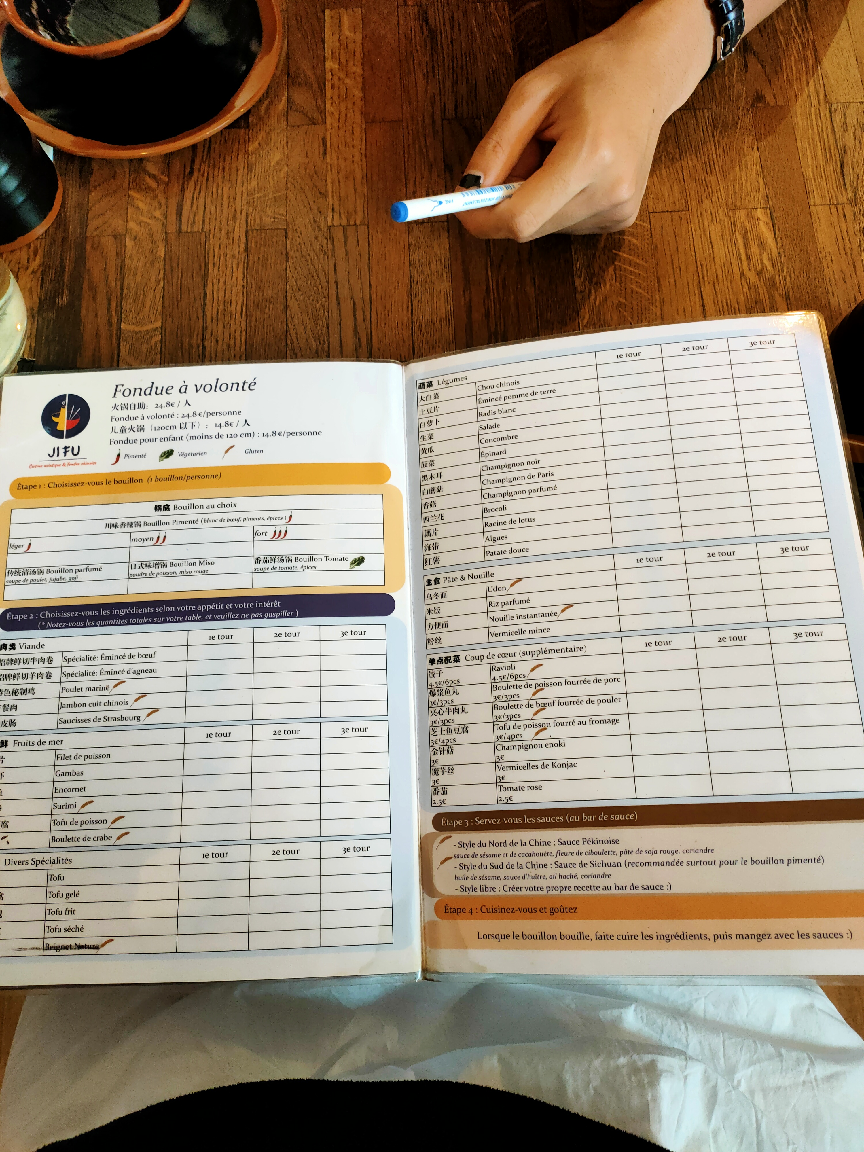Excellent restaurant de fondue chinoise. La formule à volonté est idéale (une fois que l’on a compris comment elle fonctionne), les bouillons sont délicieux, le choix des légumes/viandes/nouilles sont variés. Des ingrédients sont mis à disposition pour composer notre sauce nous même ! Je recommande.