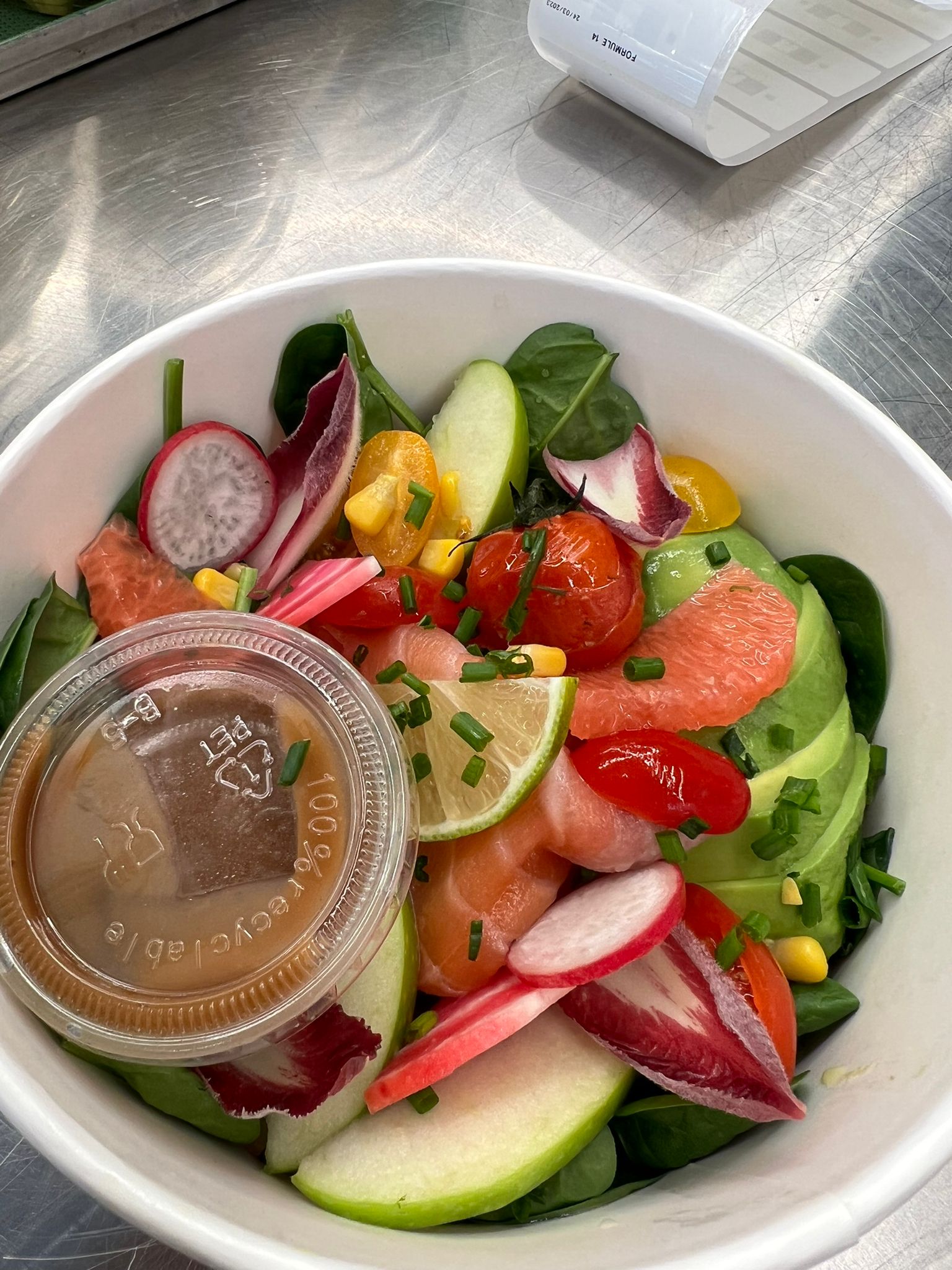 Beaucoup de choix parmi salades, paninis, bagels, plats de pâtes ou de riz, pizza et les desserts (donuts <333, cookies, tiramisu). J'ai beaucoup aimé le fait que les plats soient à disposition (et donc disponibles de suite) et qu'on ait pas à commander via une borne, attendre que le plat soit préparé (sauf pour les pizzas). De plus, on peut payer directement avec notre smartphone grâce à leur QR code, montrer le reçu et partir de suite avec notre repas! ça m'a permis de prendre le temps de choisir ce que je voulais et quand j'avais fais mon choix de partir tout de suite. c'est trop cool quand on a une pause déj d'1h seulement et qu'on peut passer les 45 mins à manger au lieu de 15 à cause de l'attente pour commander, préparer et payer.