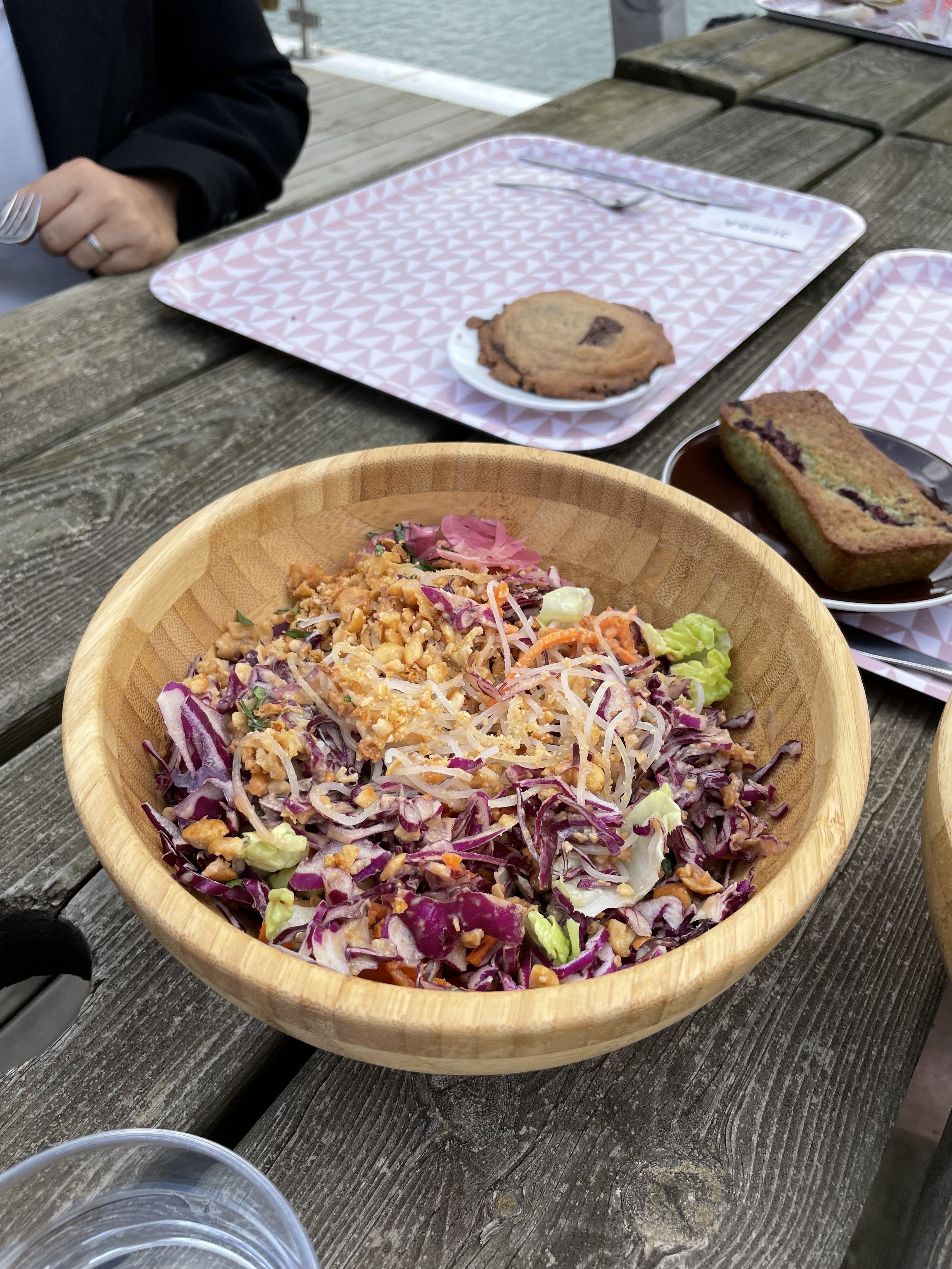 Ambiance très détendante, jolie vue sur la baie avec des sièges déco très sympas sur les terrasses. Ma salade était top en goût et quantité, joliment présentée. En plus les garçons au bar sont serviables et charmants ! Bravo à toute l'équipe