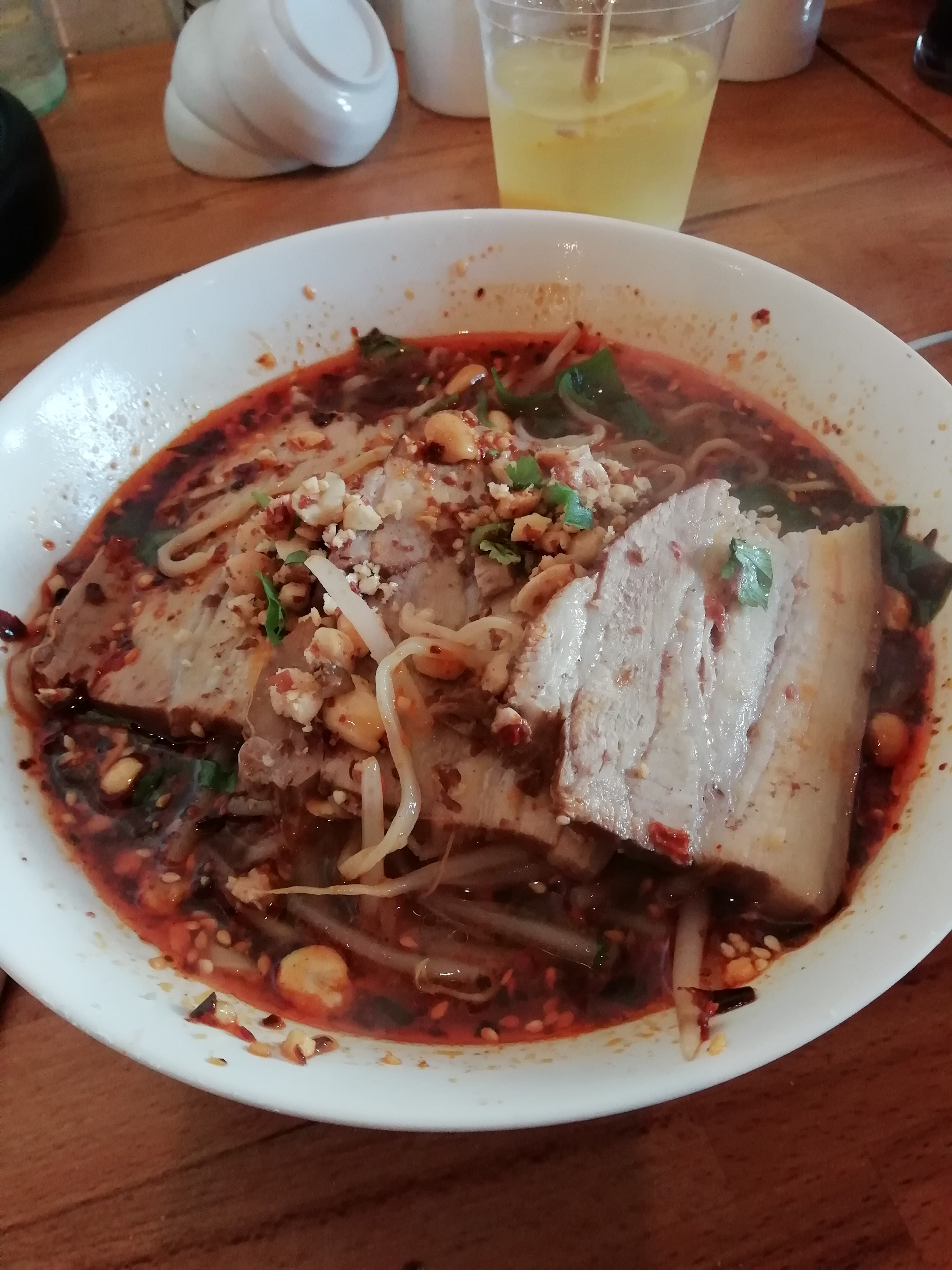 J'ai mangé une délicieuse soupe de nouilles à la poitrine de porc, magnifique. Les murs sont un peu vieillots et attaqués par l'humidité. Les prix sont raisonnables pour le quartier.