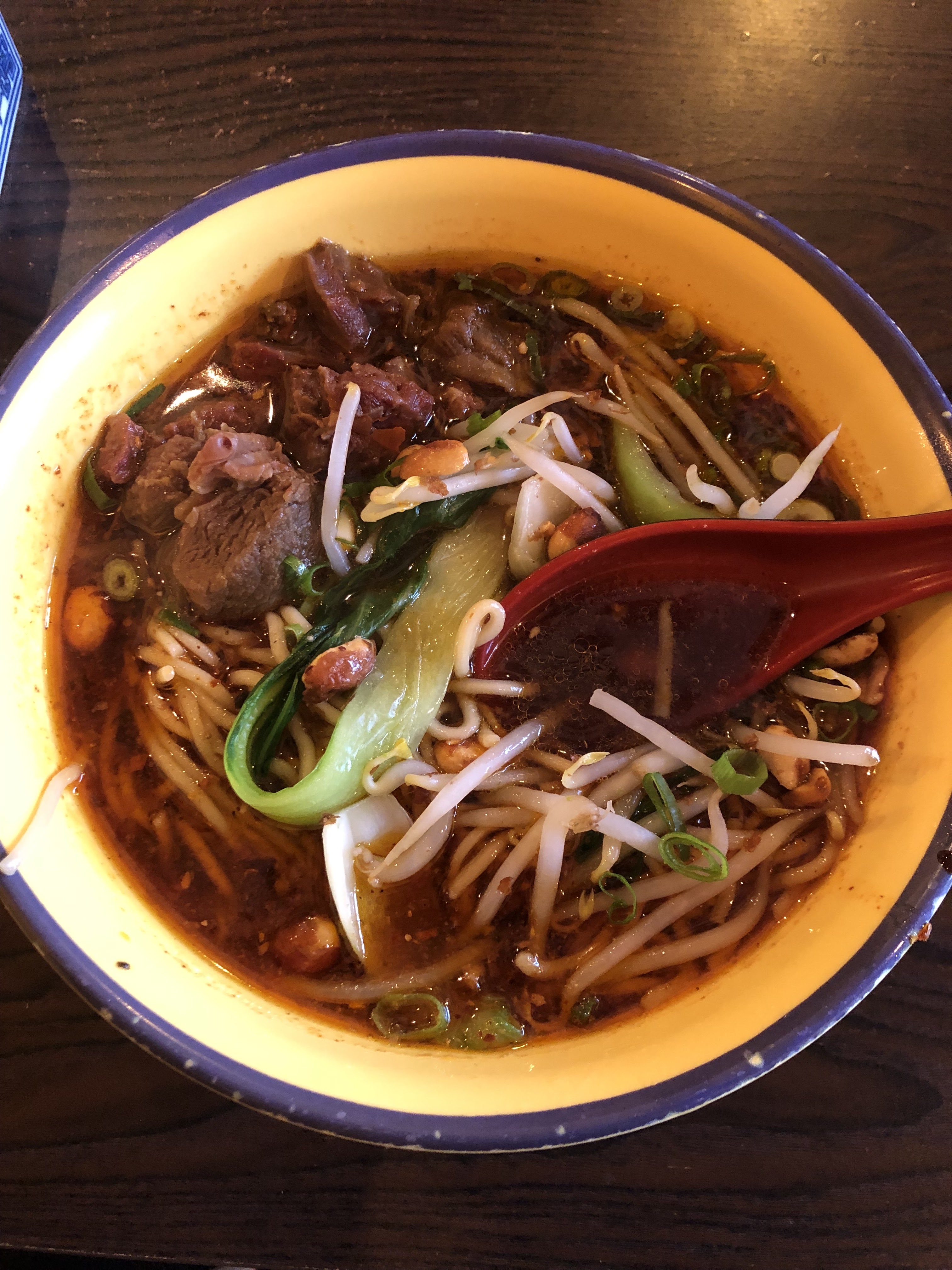 Très bon restaurant. J'ai pris le menu à 10€ et c'était vraiment excellent. Au début j'ai pensé qu'il n'avait pas assez de nouilles mais c'était parfait avec les deux dumplings. En parlant dumpling, il y a un petit paille que vous mettez dedans pour boire le jus. Attention ! Il est chaud mais c'est si bon!! Après vous manger le dumpling pour savourer tout ensemble. Les nouilles (j'avais pris végétarien) étaient parfaitement Pimenté et le sauce, oh man, c'était trop bon.
