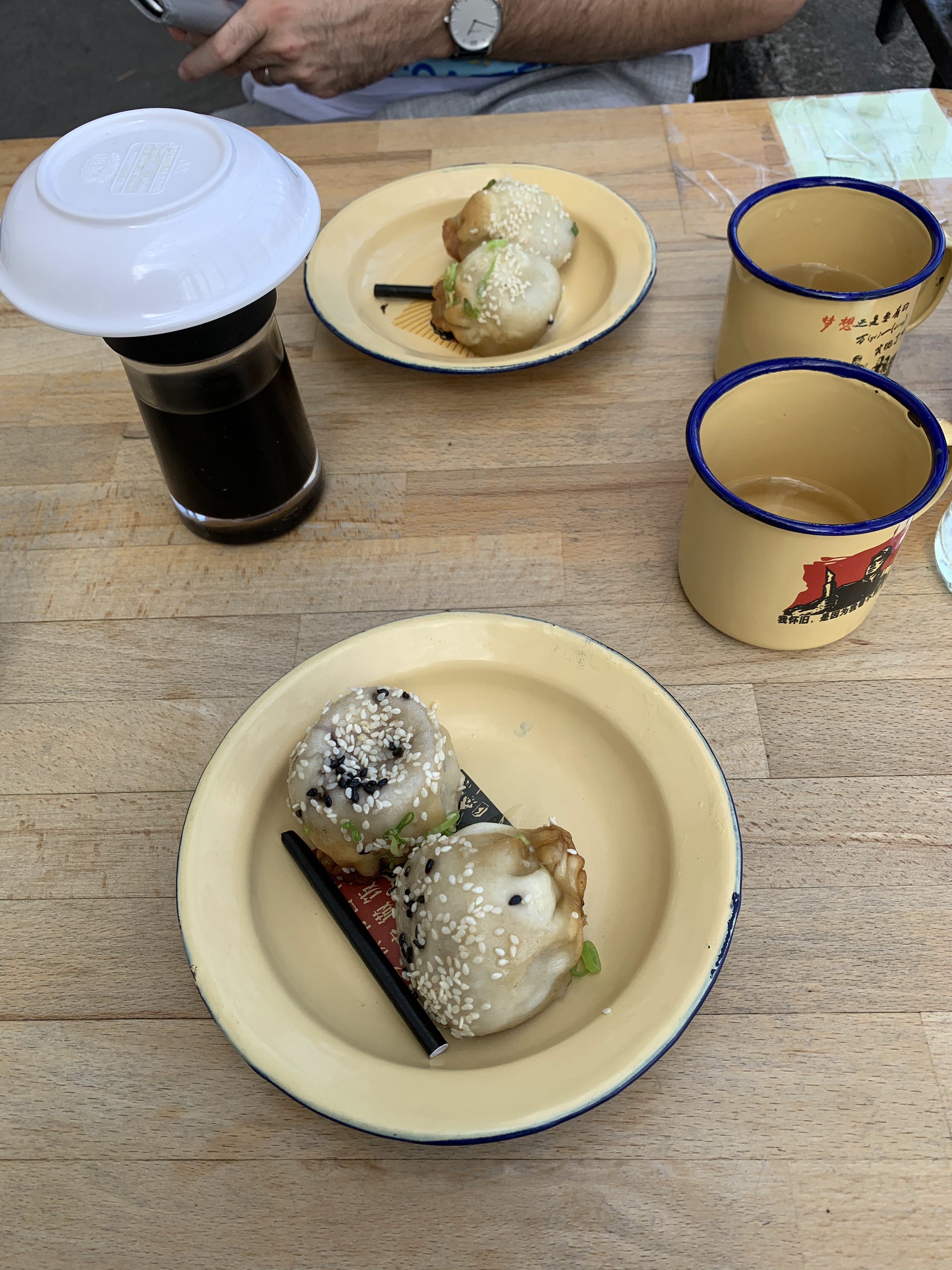 Second restaurant Jixiao's buns après celui de Beaubourg avec un service encore un peu chaotique. Des Shengjian mantou soit au porc (un délice avec bouillon dans le bun) soit aux légumes (dominance maïs). Ensuite des soupes de nouilles (plutôt de la région de Chongqing) bien balancé ! Je préfère celui de Beaubourg qui a la même carte mais les plats y sont mieux soignés., par contre, là bas, c'est uniquement à emporter ou en terrasse .