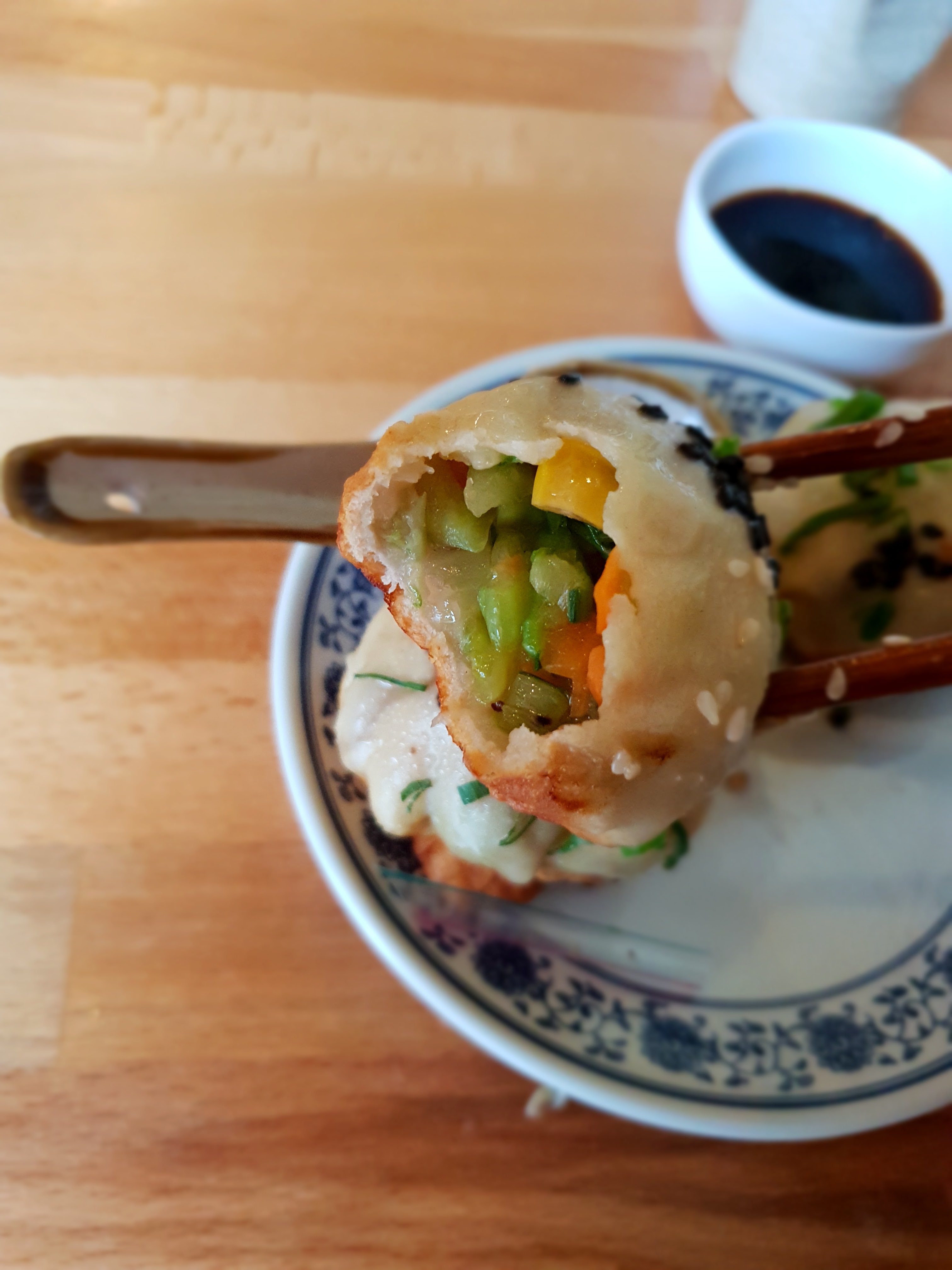 Les dumplings aux légumes étaient super bons, on en a pris 6 pour 10€, ils étaient très remplis et savoureux même si bouillants au début. Ils remplissent très bien l'estomac. 🥟 L'endroit est joli et le personnel très sympa.