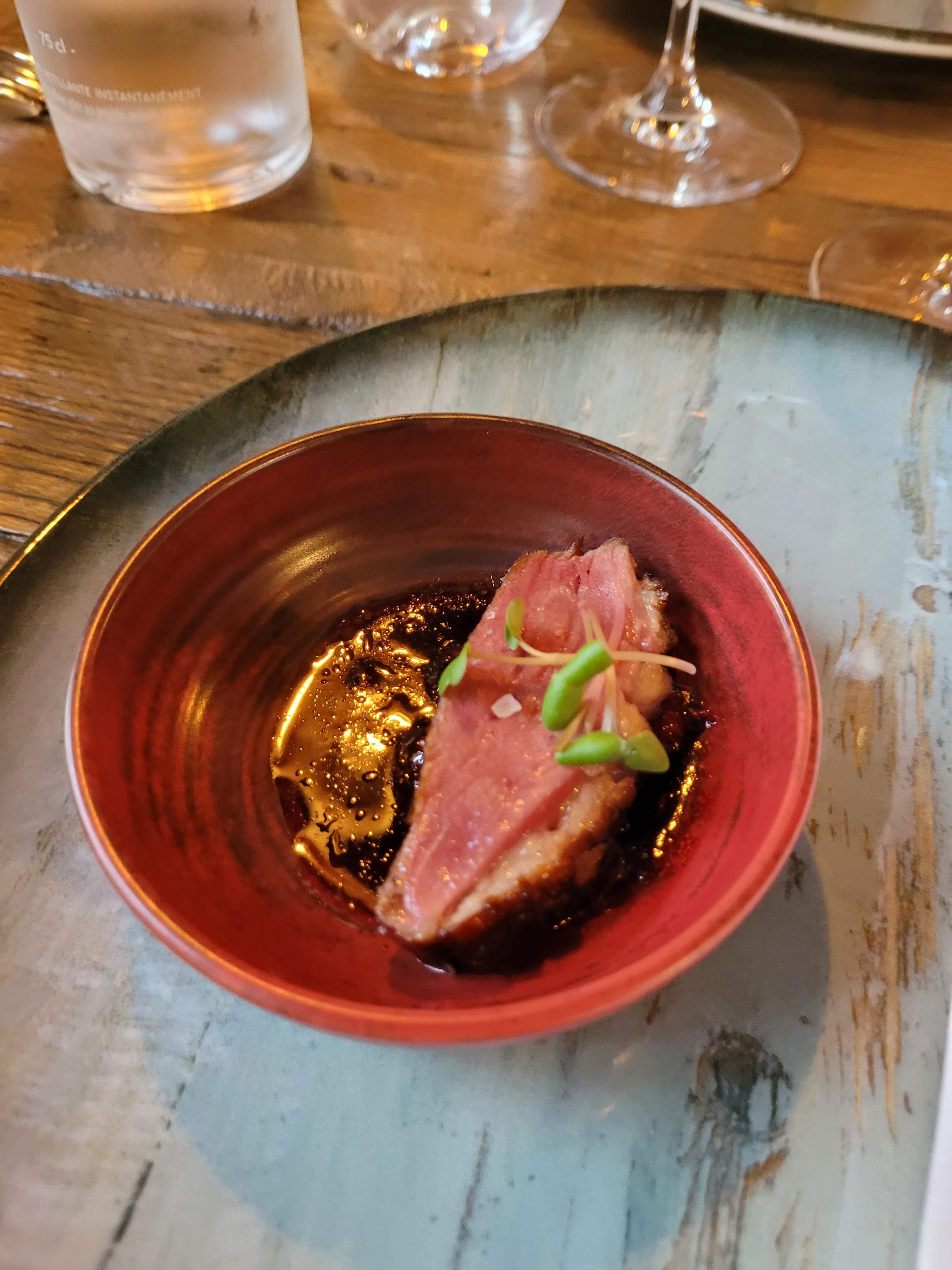 Super découverte ! C’était génial de ne pas connaître le menu à l’avance car ça nous a permit de goûter des choses qu’on aurait pas forcément choisi de base. Le mariage des aliments était étonnant et exquis. Le service était top, je suis enceinte et ils ont bien géré les cuissons et les aliments pour ne pas qu’il y ait de soucis. On recommande fortement cet endroit qui est super avec une équipe au top !