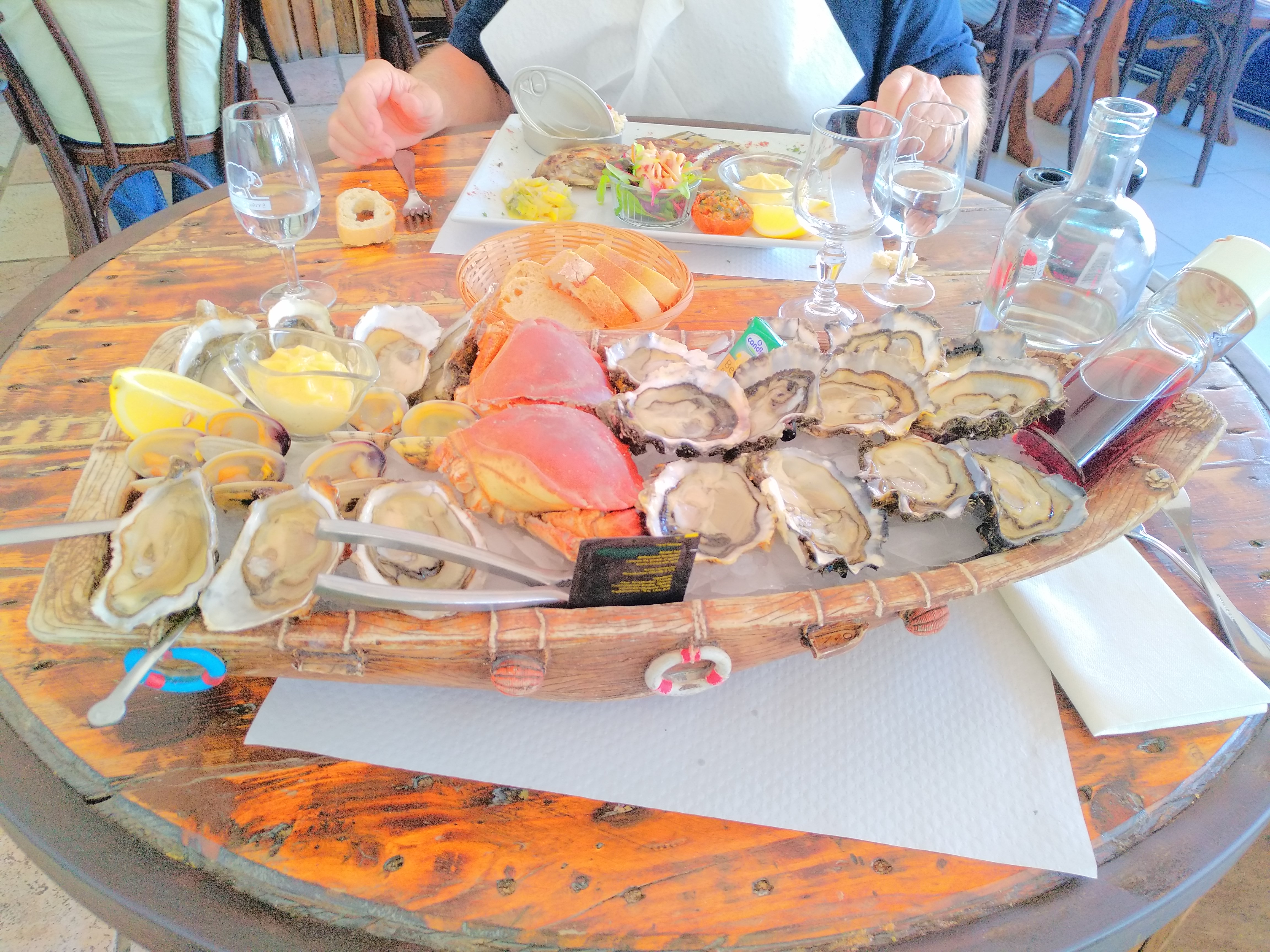 Conseillés par des amis Suisses nous y avons tête très bien reçu. Le personnel est au petits soins, tableau de suggestions particulièrement alléchant. N'y allez pas pour de la viande, ici c'est poissons ou crustacés. La suggestion poisson est pêchée la nuit, les huîtres de Bouzigues ou de la baie (bien charnue et iodées). Vous pouvez composer votre plateau suivant vos goûts. J'aurais aimé goûter un Violet mais ils n'en avaient pas aujourd'hui. Il vaut mieux réserver, le prix du plateau est relativement raisonnable. Pour digérer une balade sur la plage s'impose.