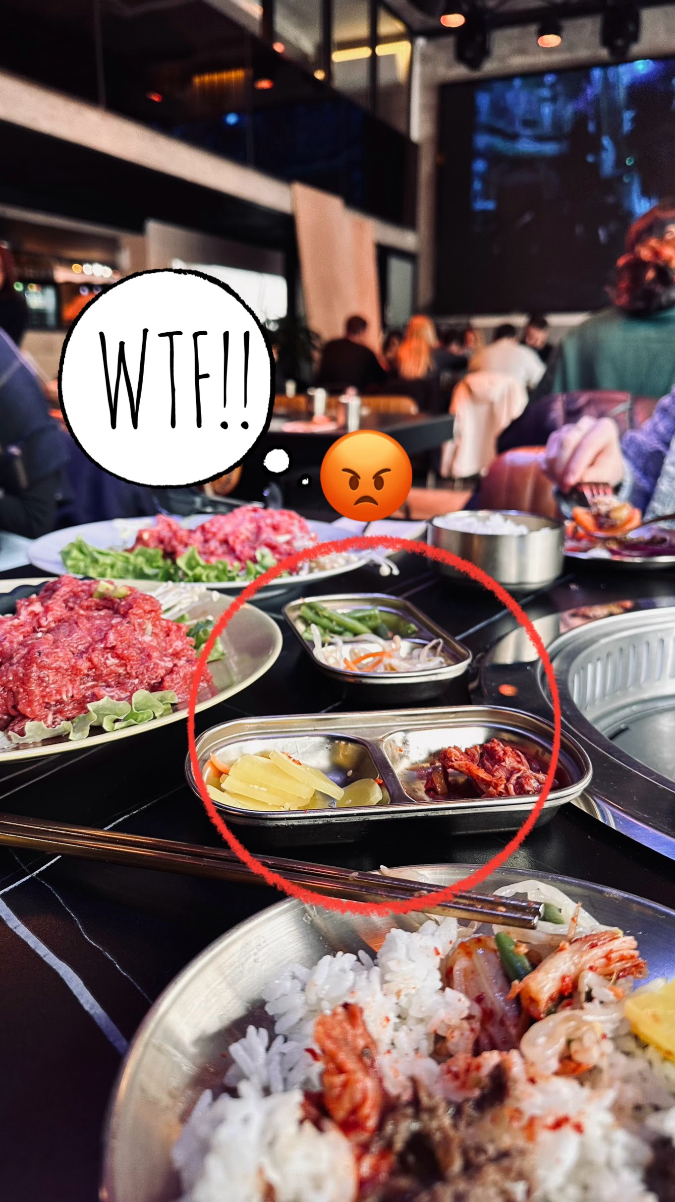 Si vous avez fait au moins un autre barbecue coréen à Paris, vous savez à quel point c'est surfait à cause de tiktok. Nous avions de la viande et du poulet, les deux étaient fades, pas marinés, la viande n'est pas de la meilleure qualité, même si la quantité était bonne, les accompagnements sont TELLEMENT MAIGRES, vous n'en avez que quatre au début, et puis ils vous évitent autant que possible. ils le peuvent, donc vous ne demanderez pas de recharges (kimchi, soja, concombres, un truc jaune). La salade n'est pas gratuite, contrairement à la plupart des endroits (coûte 2,5e POUR UNE PORTION) Le service est HORRIBLE, c'est de loin le pire, j'ai demandé une autre portion de salade qui n'est JAMAIS arrivée mais qui était néanmoins présente dans l'addition. Nous avons également demandé plusieurs fois la sauce épicée et avons simplement été ignorés. Fondamentalement, c'est un gaspillage d'argent, il existe des endroits bien meilleurs au même prix.