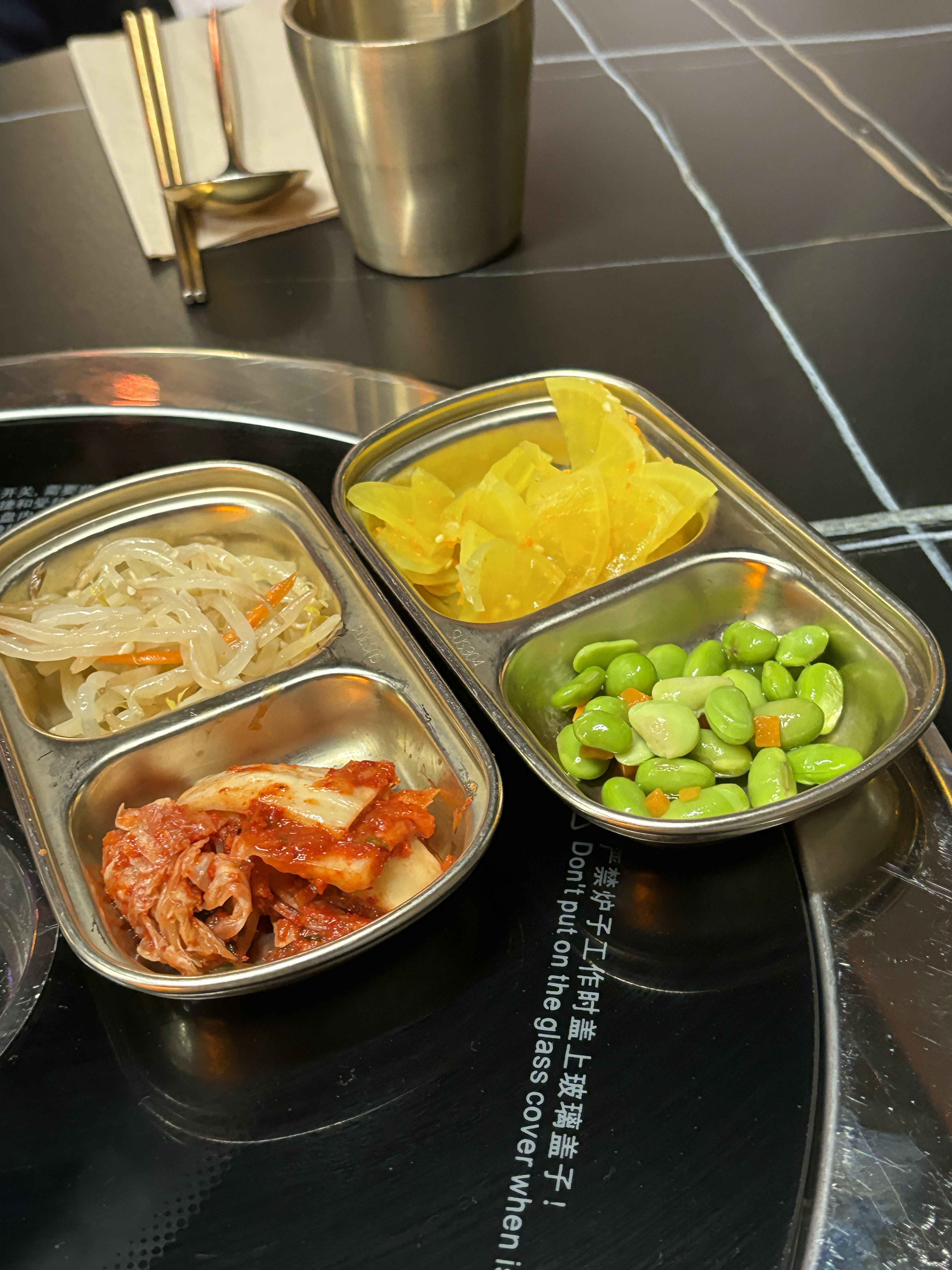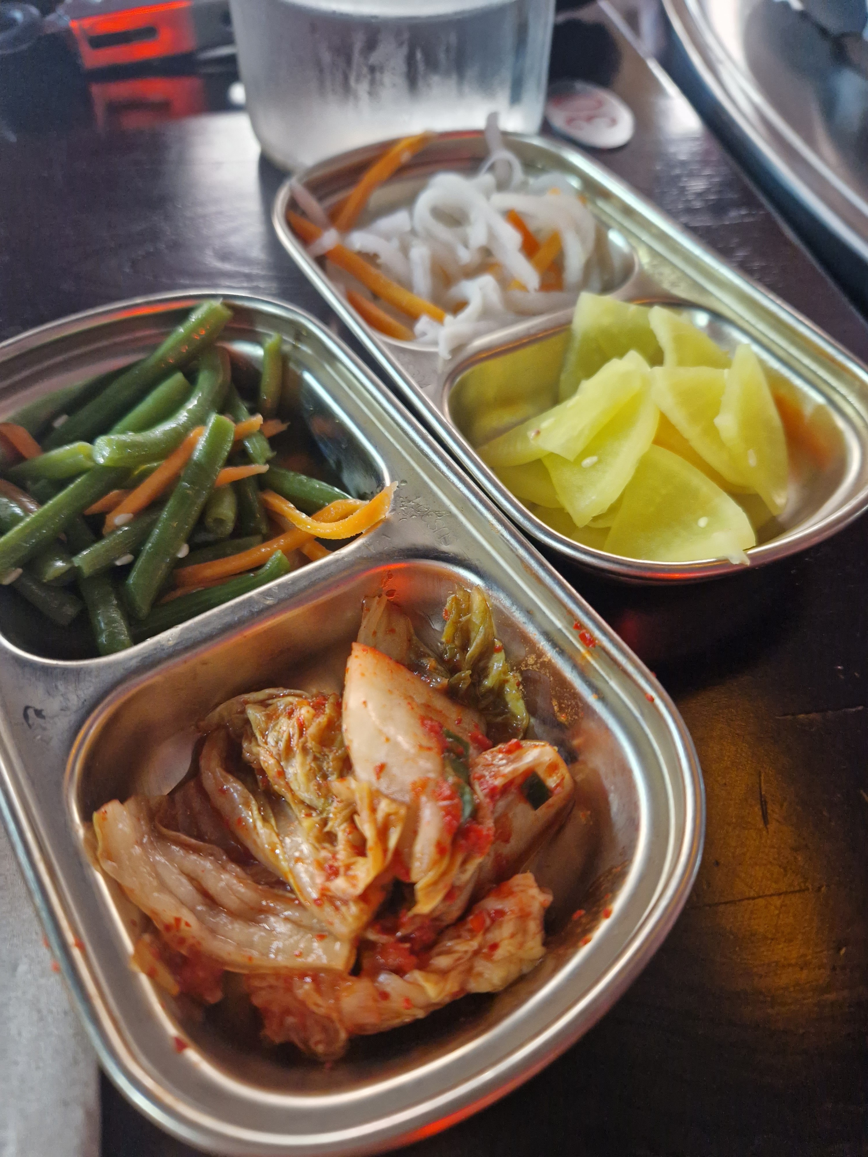 Très bonne galette kimchi (même sans sauce; le goût du kimchi + galette est très bien ajusté) Jajangmyeon assez fade Marmite bœuf (qui s’assimile à du bulgogi) très goutu Si vous prenez pas de barbecue coréen vous pourrez être assis à côté de l’entrée ce qui n’est pas top quand il fait froid