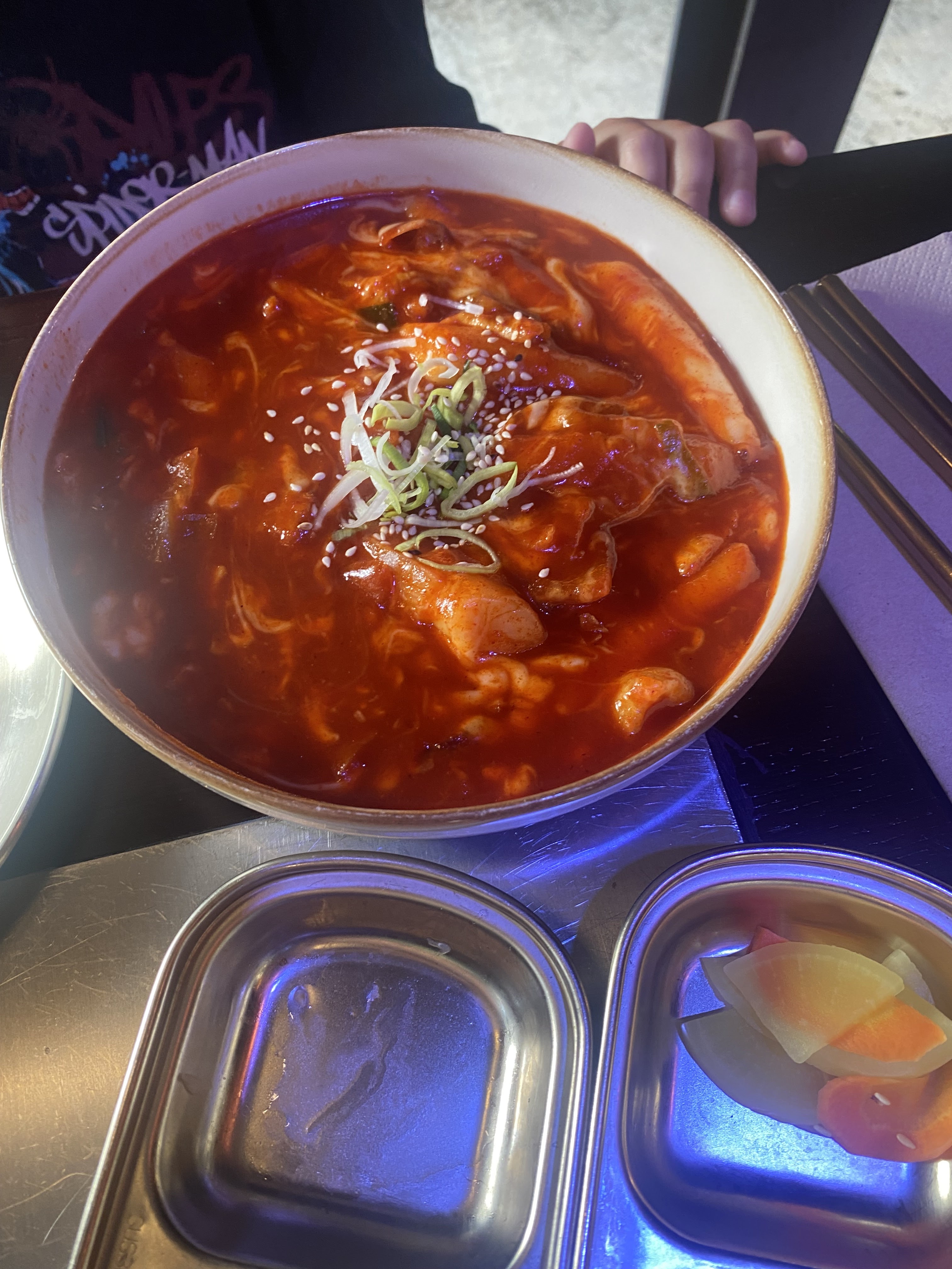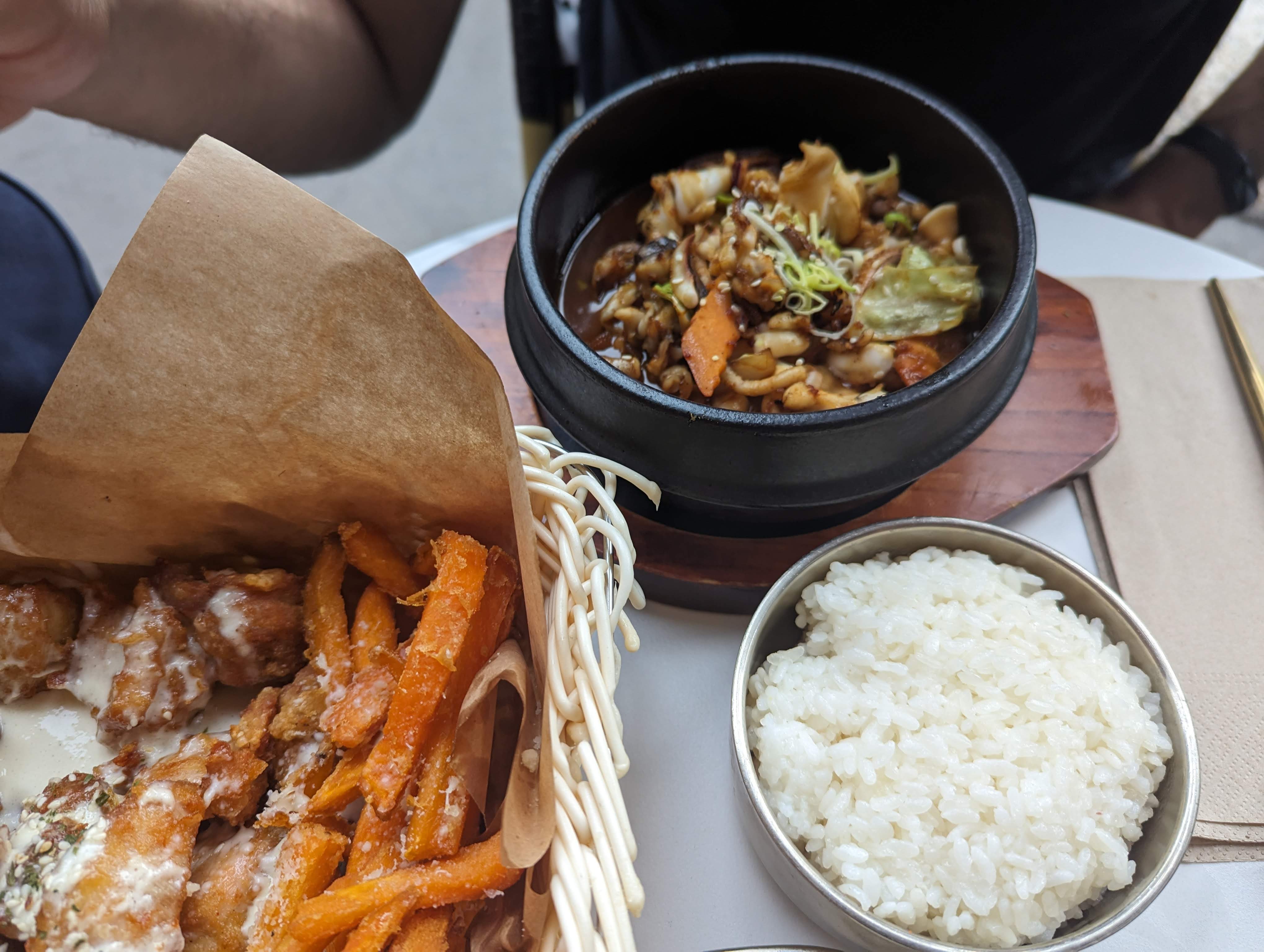 Lieu convivial convient aux familles le service était rapide et la nourriture très bonne sauf pour les tteokbokki pas assez cuit et trop de sauce pour la quantité