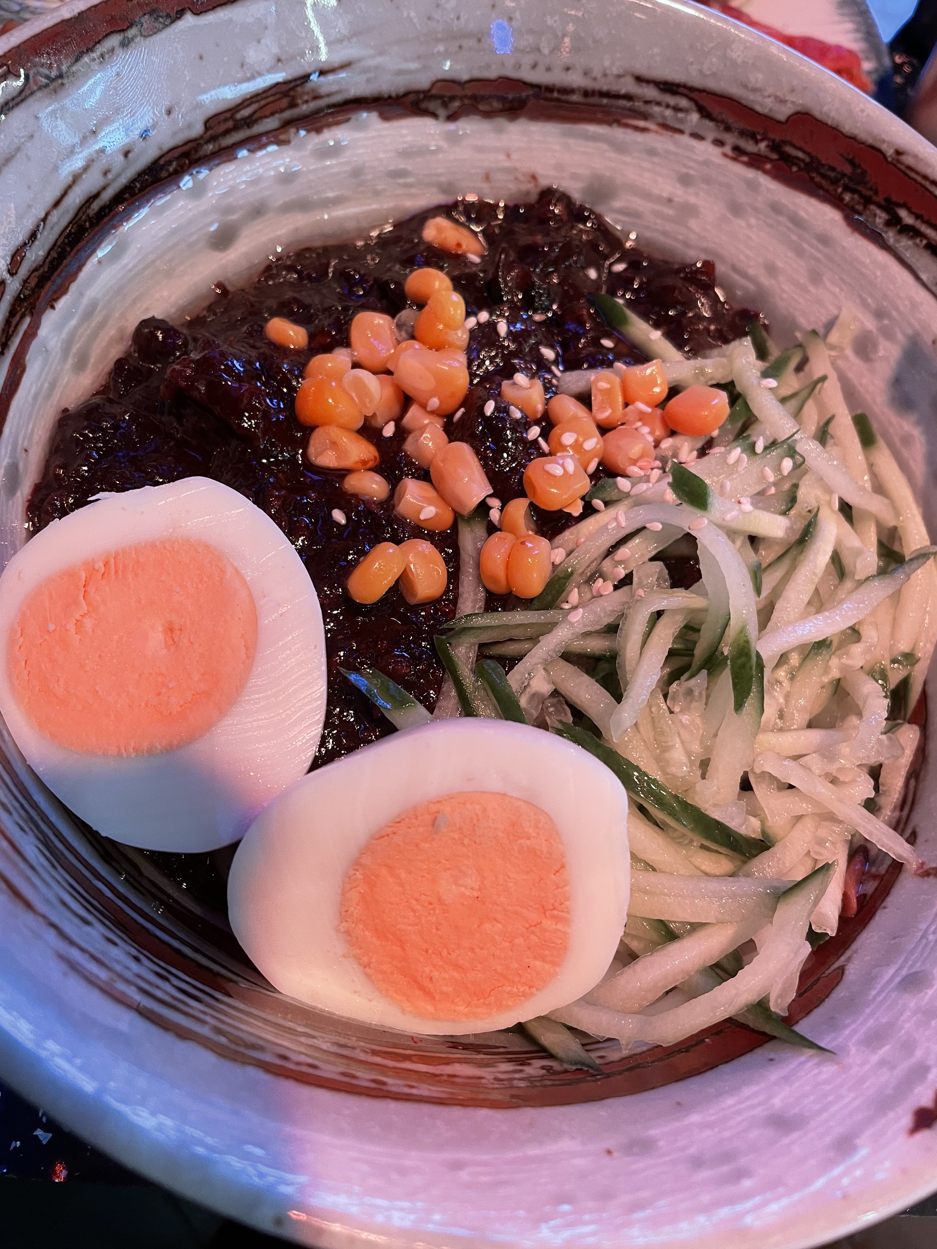 C'était très bon. La soupe au ravioli était un peu trop bouillante mais sinon, ambiance sympathique. Le prix est très raisonnable également à midi. Je n'aurais néanmoins pas mis du parmesan avec des raviolis en entrée qui n'apporte pas un réel plus niveau goût. Le jajangmyeon est bon mais sans être extra. Je recommande néanmoins.