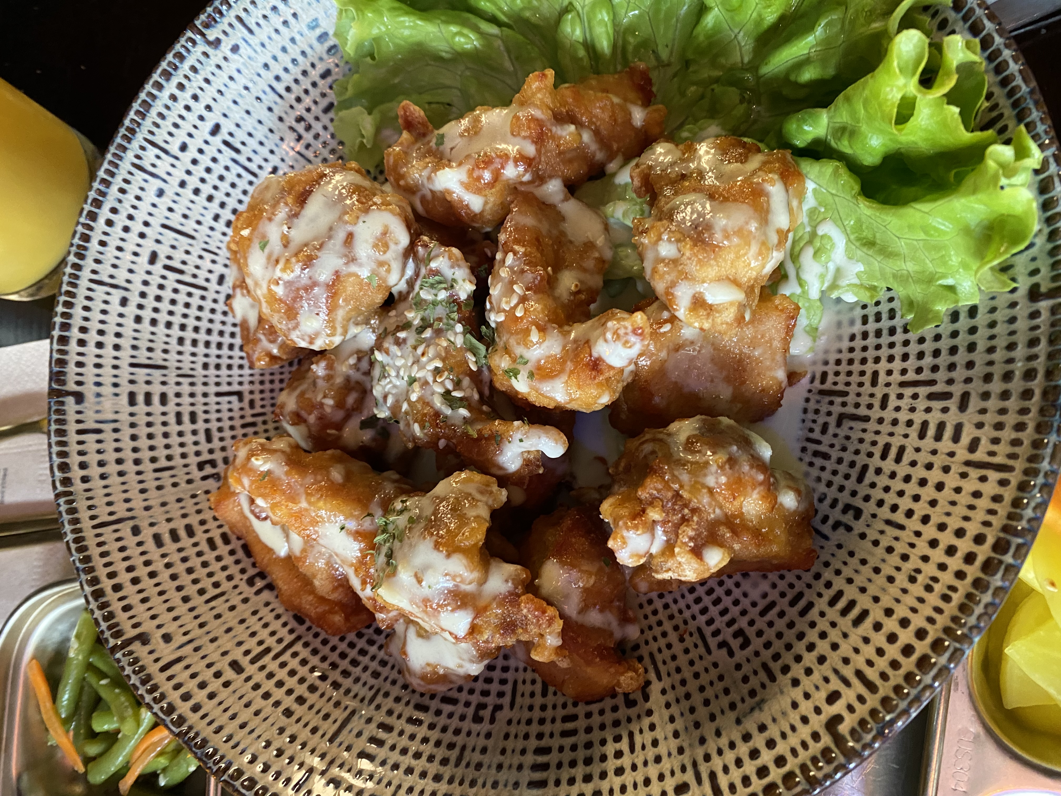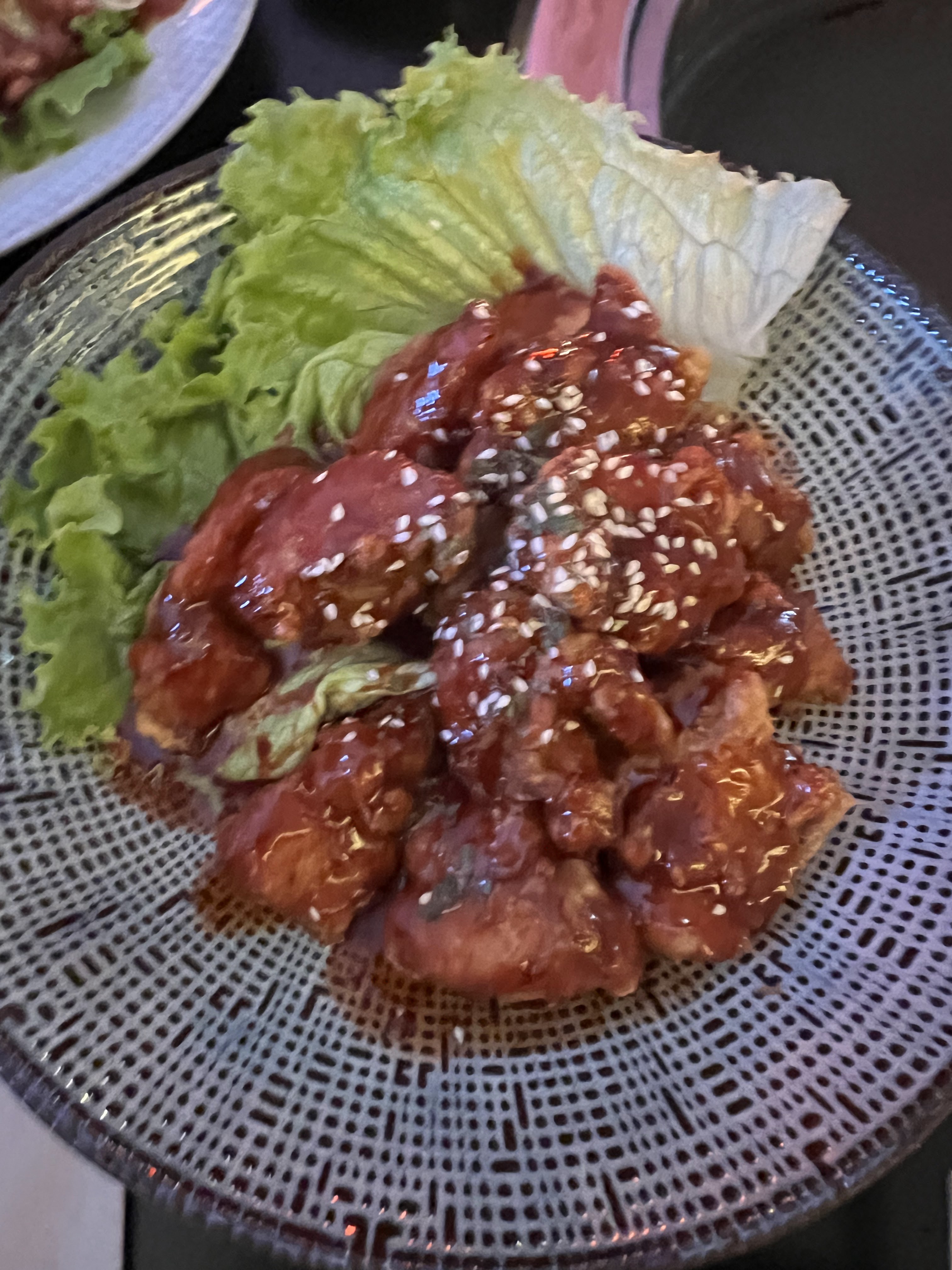 Très bon repas, nous avions pris du poulet coréen frit a la sauce sweet chili qui était très bon état un barbecue Coréen avec du poulet et boeuf mariné les viandes étaient très bonne. La serveuse aussi était très gentille et serviable.