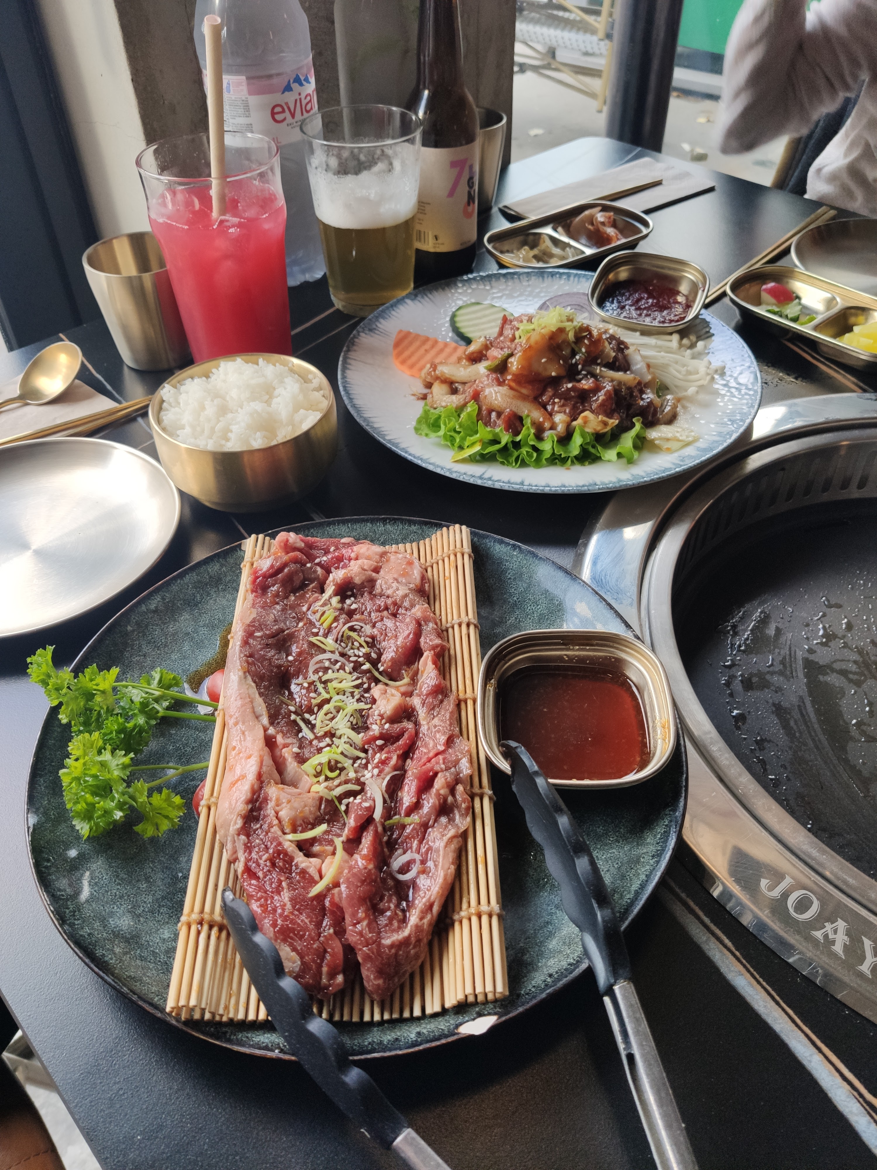 Un très beau restaurant Très bon Rapport qualité prix Ce que j’ai aimer c’est le fait d’avoir une tablette tactile pour avoir des images des différents plats à commander. J’ai pris la formule 3 viandes au choix pour le barbecue très rentable. Le dessert bingsu incroblement bon.