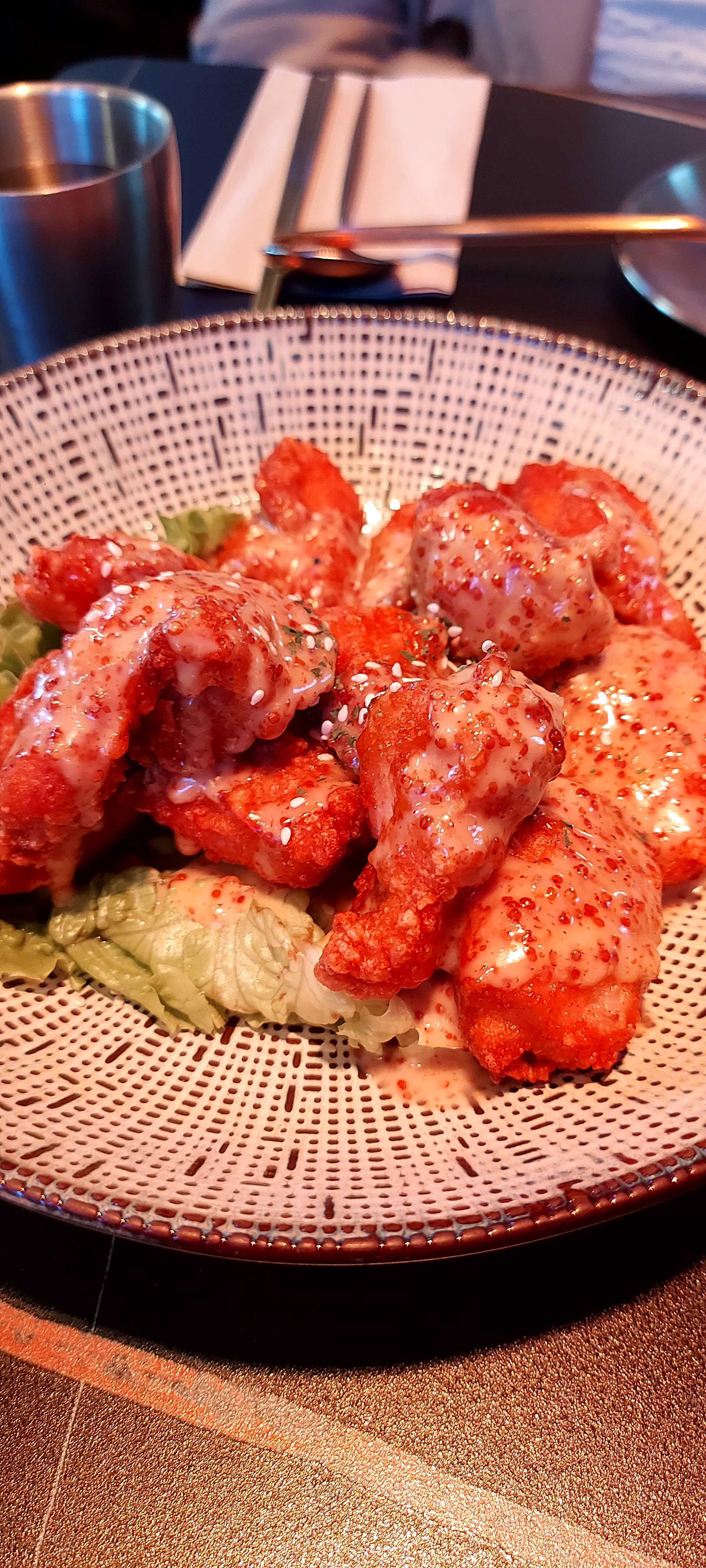 La hype insta m'a fait venir comme un gros pigeon. Honnêtement, ils sont méga rapide, la bouffe est super et j'aime bien les assortiments. Pour une fois, je trouve que le poulet épicé au fromage était assez varié pour ne pas être écœurant. vous voyez ce moment où vous luttez pour finir alors que vous avez plus faim et vous vous sentez comme un gros cochon, ben là ça allait. Par contre, il faisait un peu froid, et le grand écran avec la K-pop m'a cringé. Mais je vais pas faire le mec chokbar, c'est un resto coréen