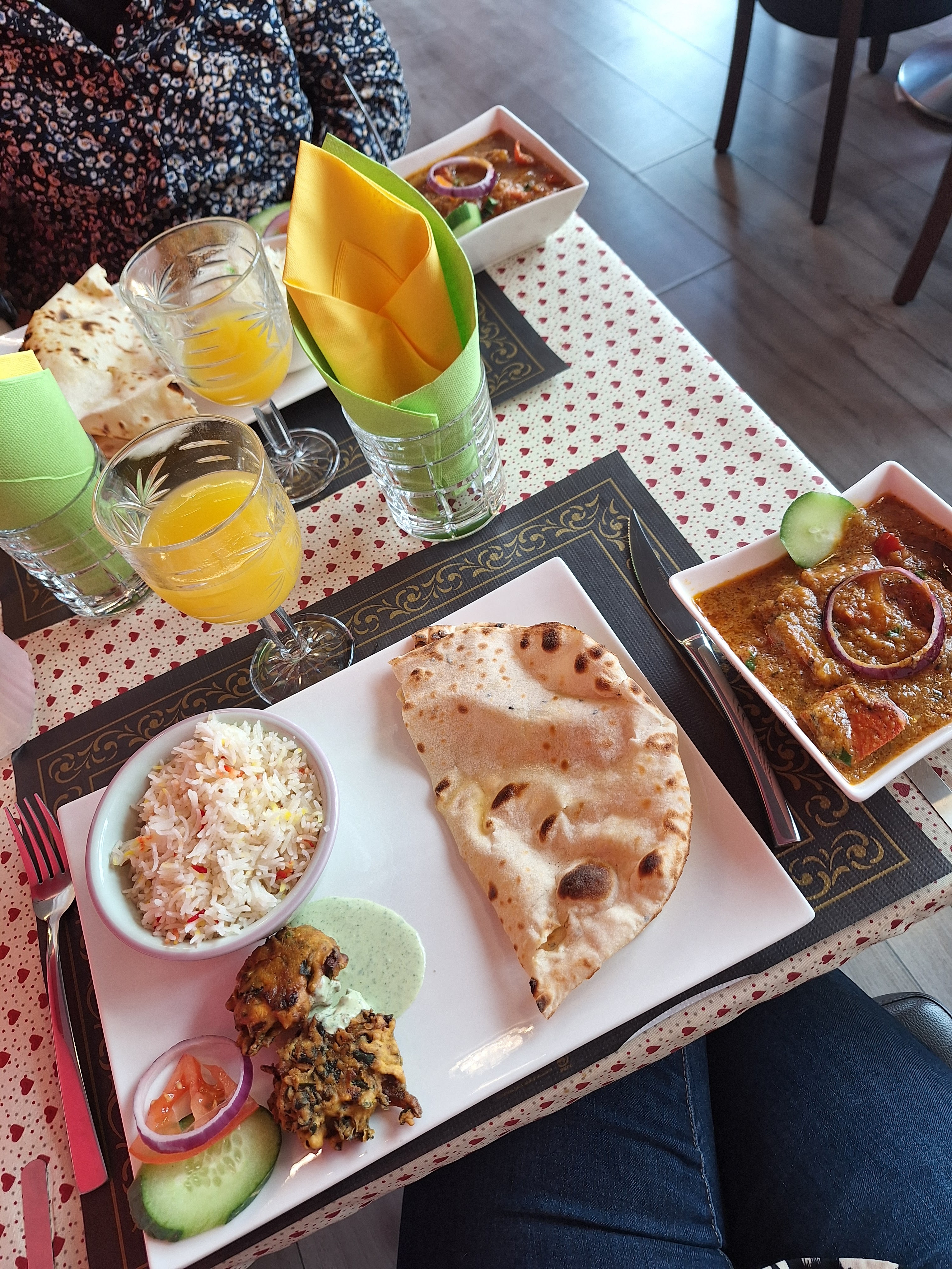 Nous nous sommes régalés ! Très bonnes explications de la personne qui nous a accueillis : Une belle découverte des mets indiens guidés par de très bons conseils. Menu a volonté avec 2 formules de dispo nous avons pris celle avec le choix d'un plat a la carte crevettes aux épinards et agneau (fondant à souhait) dans une sauce sucrée... les nans sont excellentes, celles au fromage à tomber ! Je recommande avec plaisir et encore merci pour la qualité nde l'accueil !