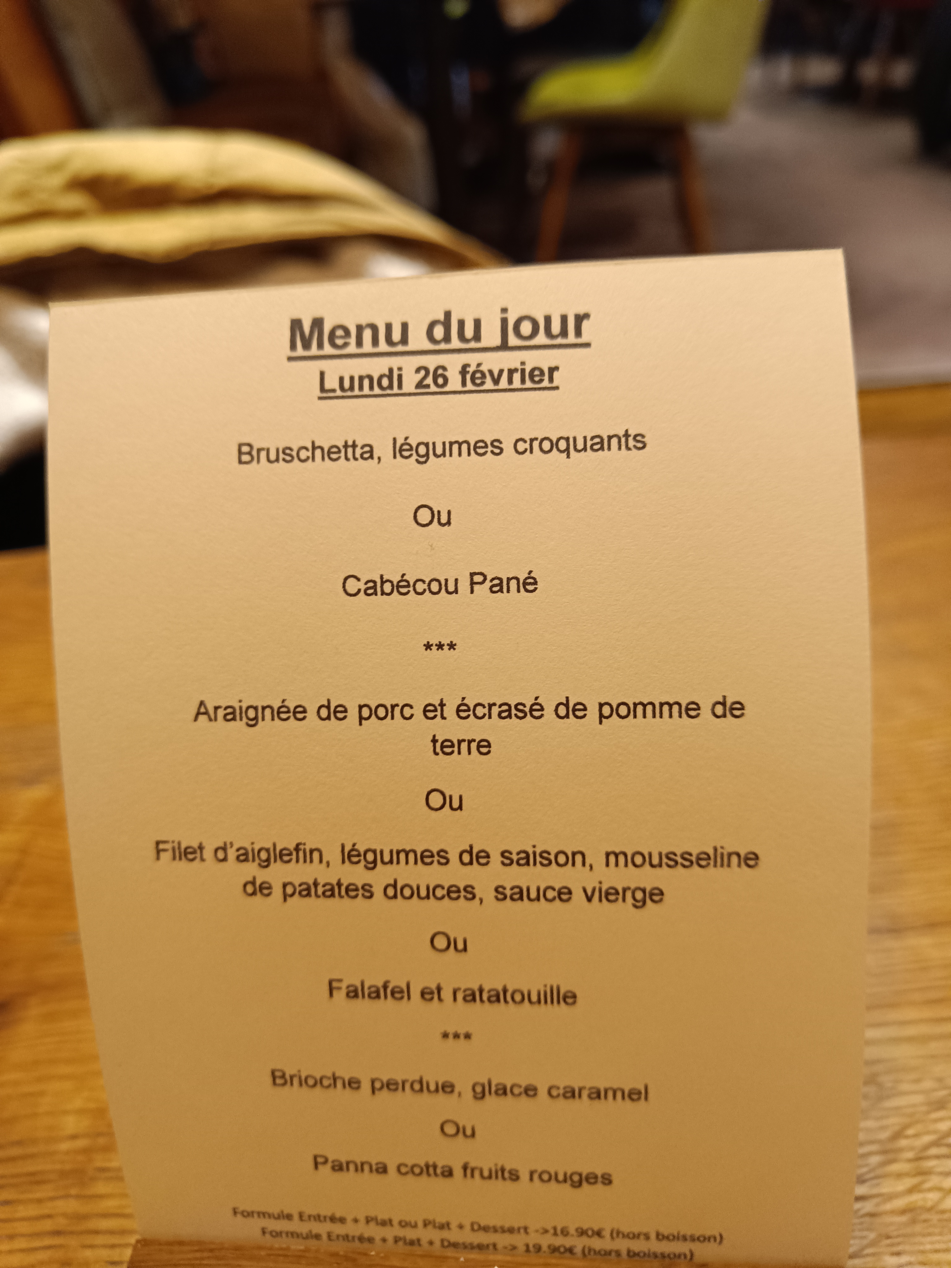 On a passé un bon déjeuner très rapide même s'il nous reste seulement 40 minutes pour prendre le TGV. Les serveurs sont souriants. Les plats très bien décorés par rapport à leur prix pas élevé. On a aimé les entrées chaudes aubergine. Félicitation au cuisine!