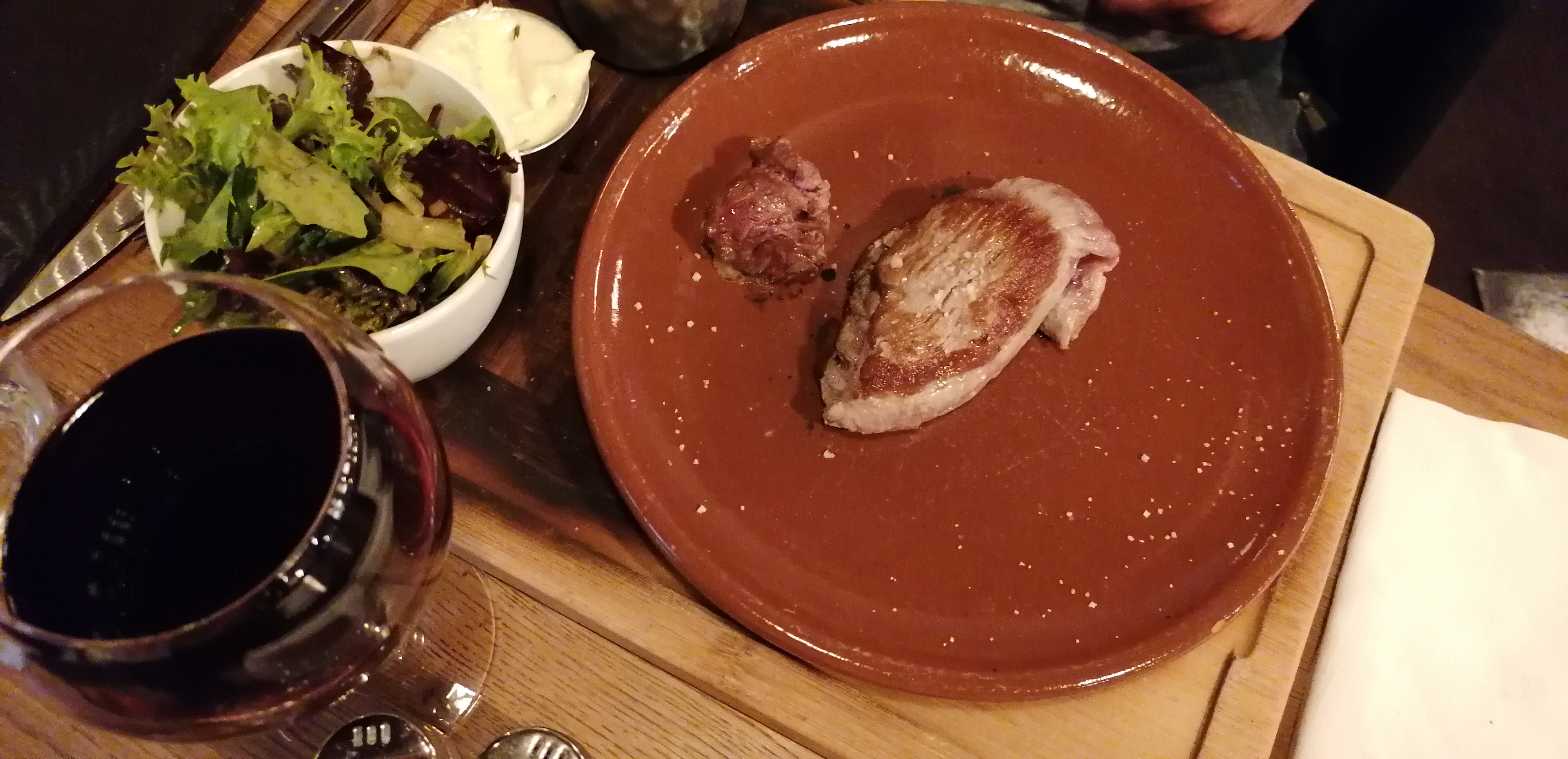 Je connais très bien ce restaurant, j’y vais tous les ans car j’adore le cadre et l’ambiance et la carte pour une fois a bien changé avec + de choix, mais les prix sont élevés pour la faible quantité. J’ai pris une assiette de pâtes à la truffe à 20€ qui était succulente mais en même pas 5 bouchées j’avais déjà fini mon assiette ! J’avais donc encore faim… et en dessert, le seul avec du chocolat est le coulant, très bon mais il coute tout de même 9€ ! Nous en avons eu pour 33€ chacun juste pour un verre d’apéro, un tout petit plat et un dessert et forcément nous sommes ressortis avec la faim… bien dommage, je ne pense pas revenir de si tôt.