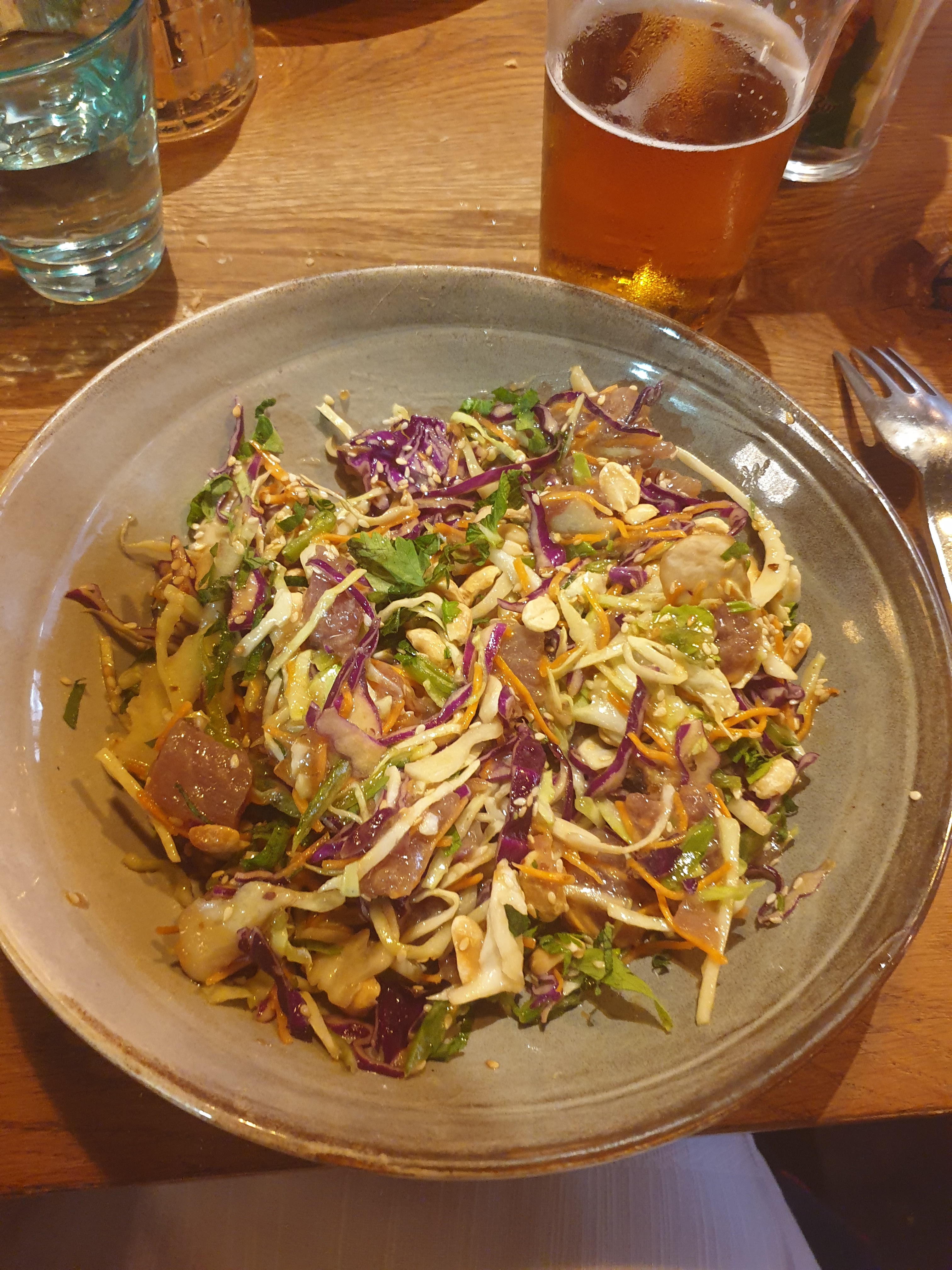 Juste deux bémols : le temps d'attente un peu long et je n'ai pas apprécié avoir payé un café et un thé qui ont été annoncés offerts par la maison, ce que je trouve très peu professionnel. Mais je souligne que la cuisine était très bonne avec une entrée de saumon fumé bien garnie et un tataki de thon avec des influences asiatiques. Le cadre est très sympa et cosy. Les serveurs sont agréables.