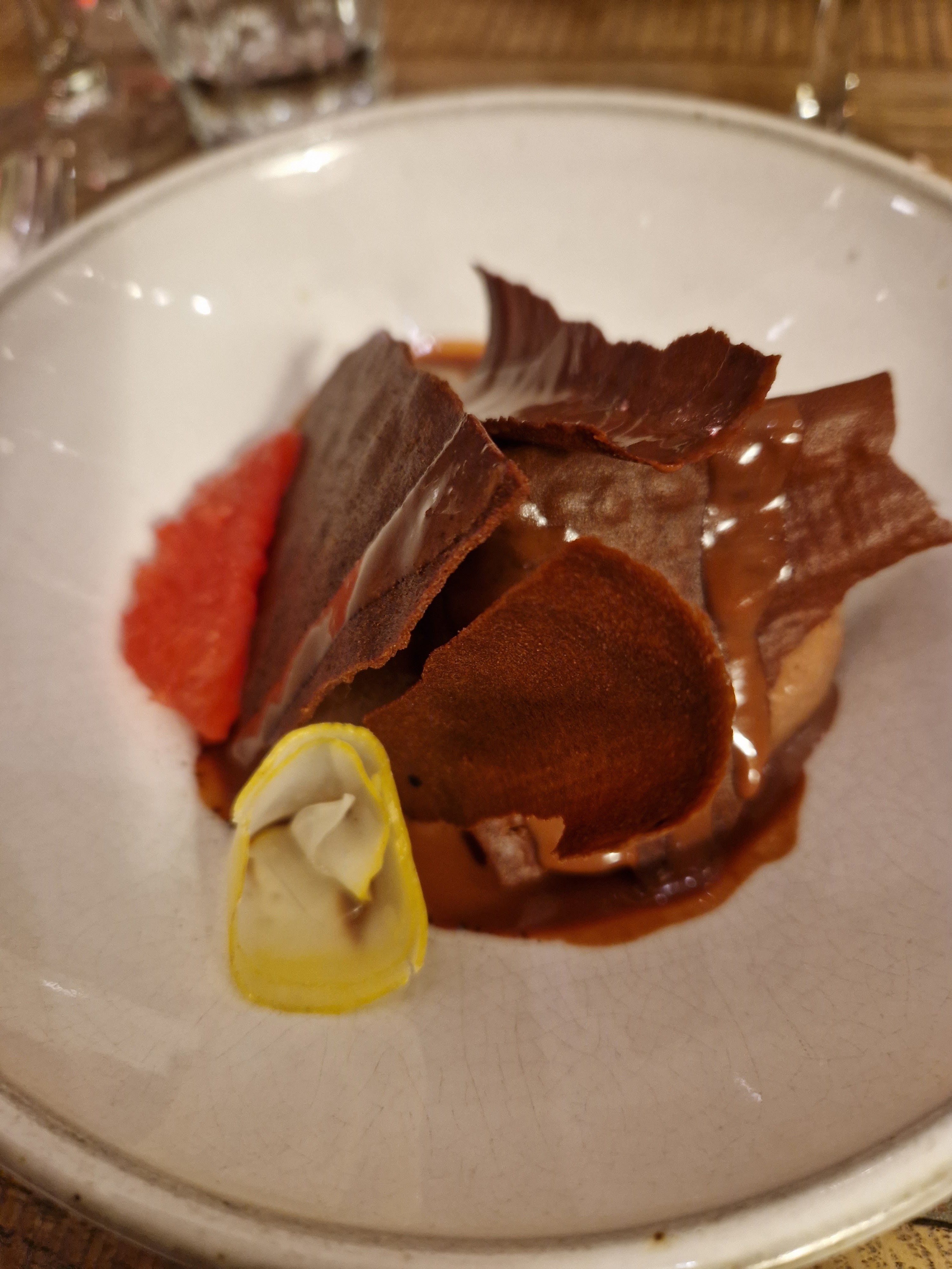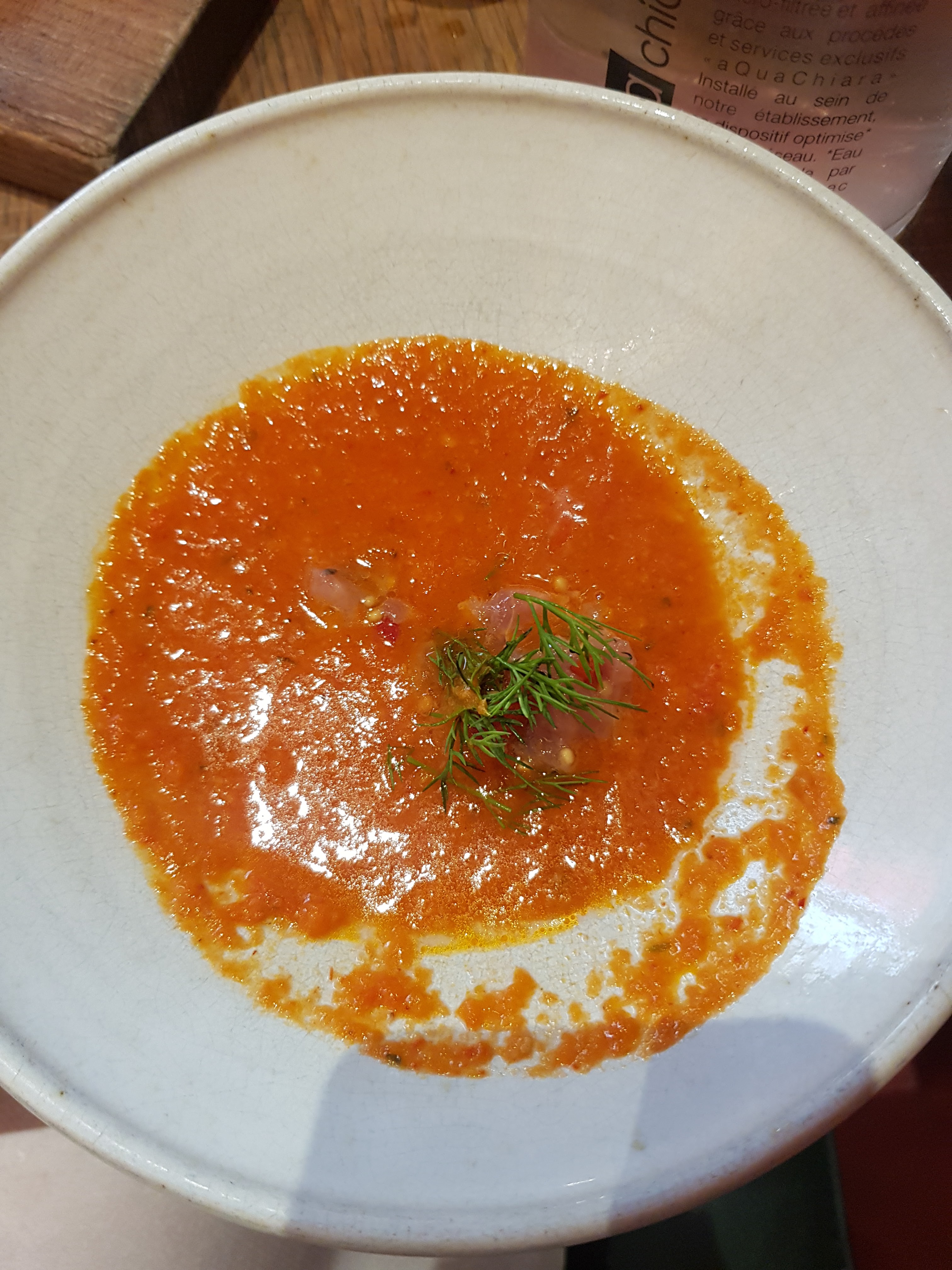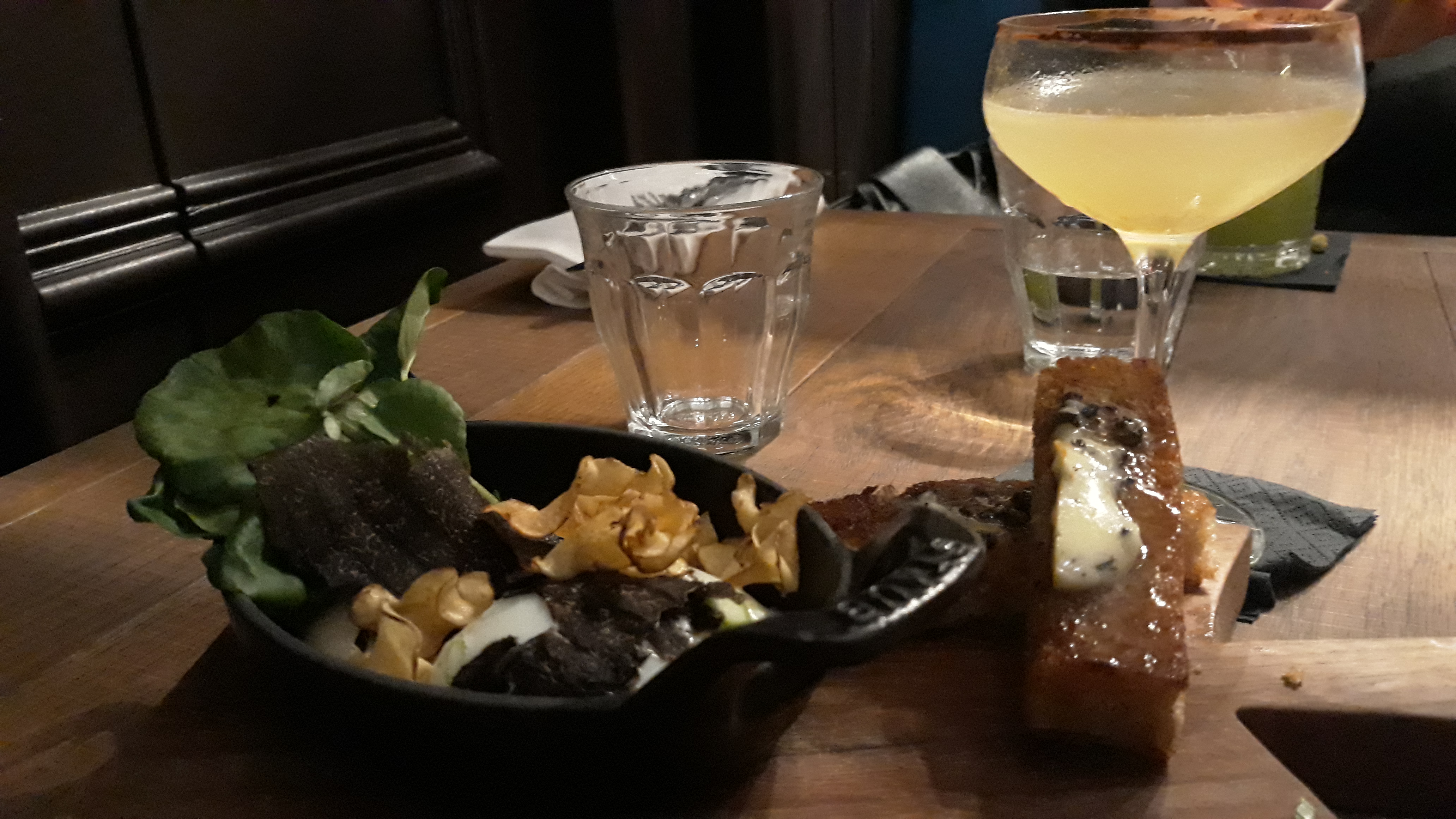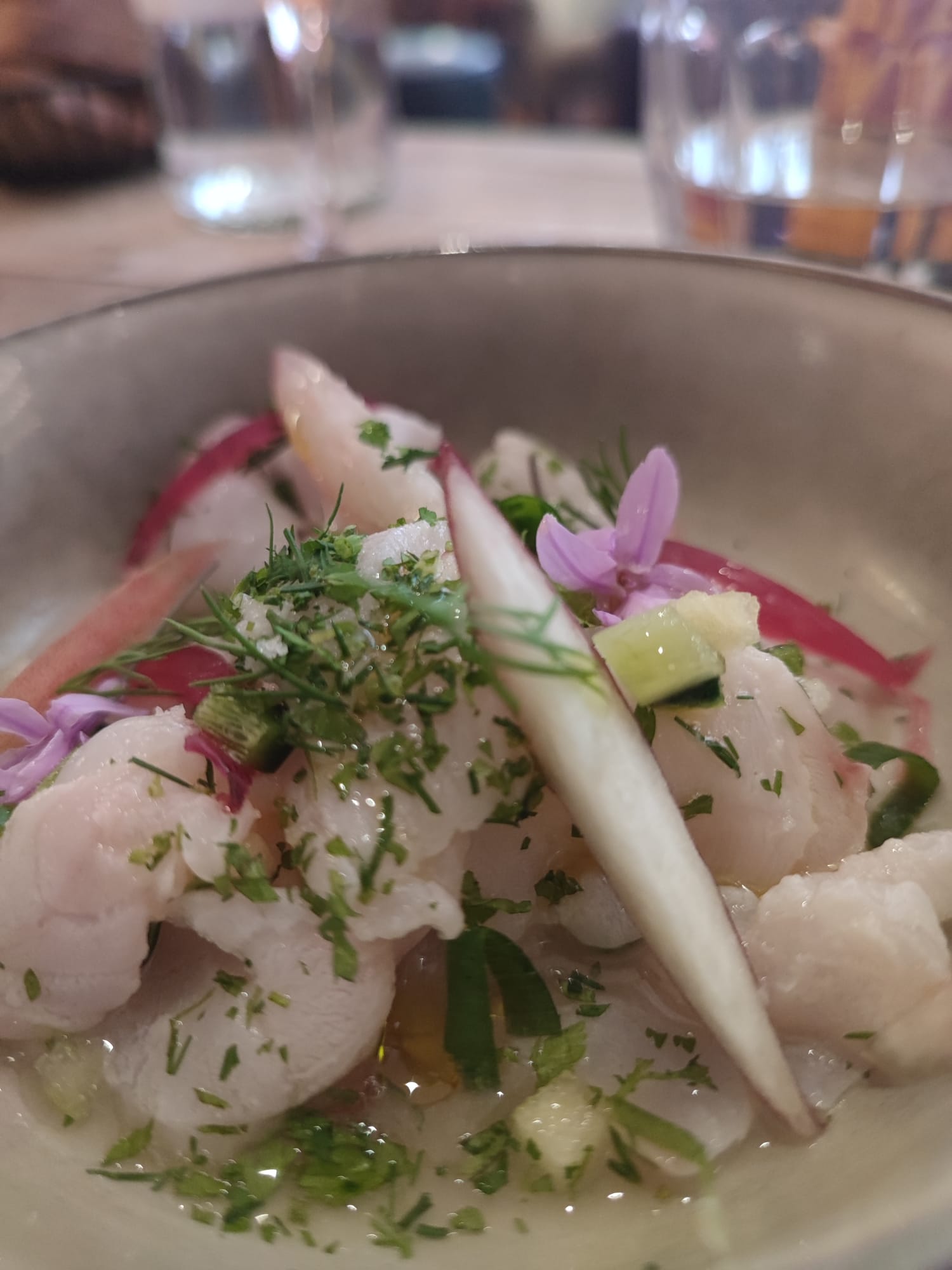 Alors juste un délice, très bons produits et travail, pas encore vraiment gastro (certains produits sont encore un peu trop bruts ou simples pour l’être). Simplement un peu cher pour ce que c’est, les portions sont un peu chiches (Ici l’entrée était une demi betterave avec beaucoup d’herbes et le plat de résistance c’etait 3 saint jacques par personne, bref heureusement que nous n’avions pas de gros mangeurs) Sinon les cocktails sont juste extras également (15€ cela dit)