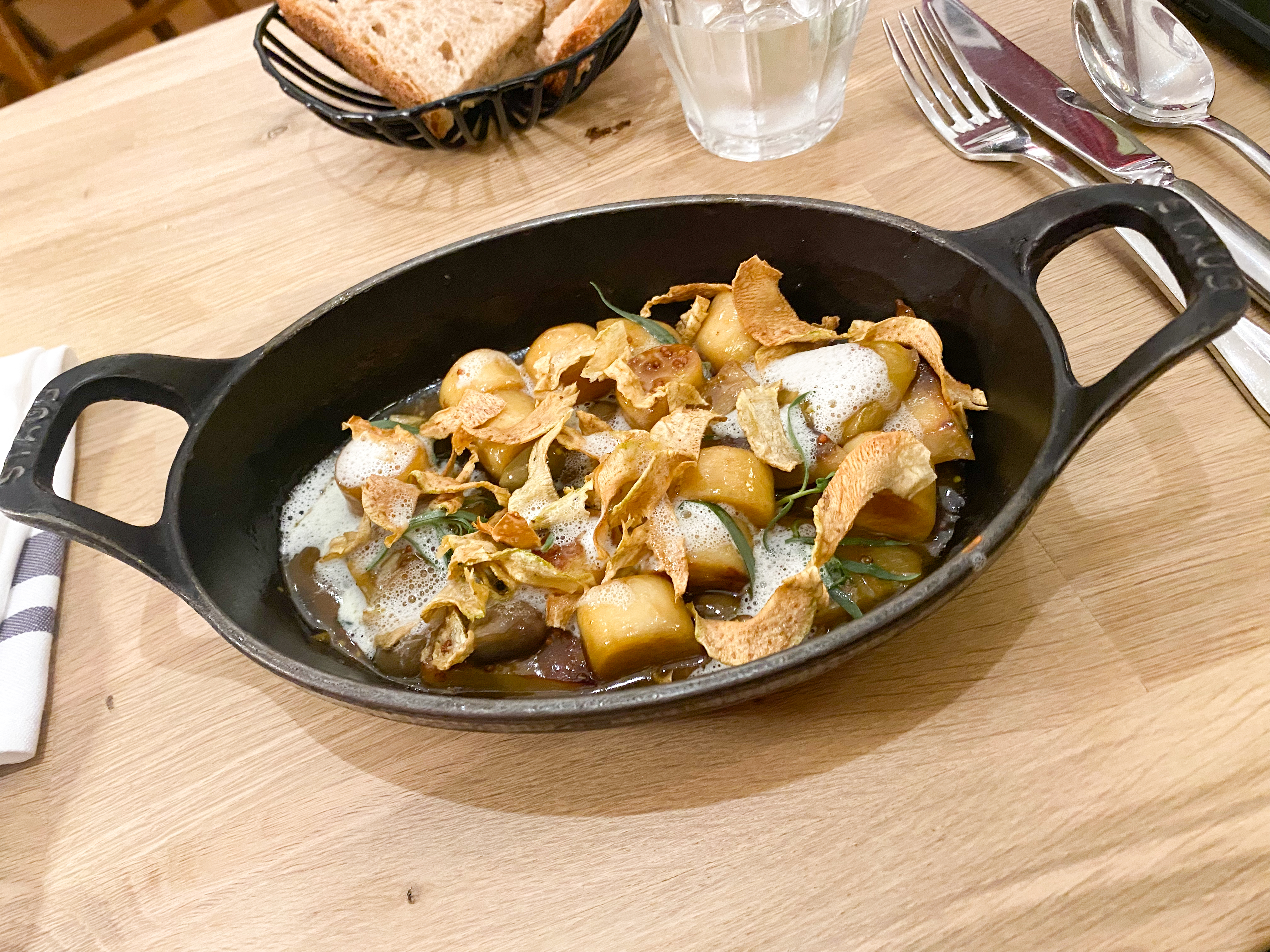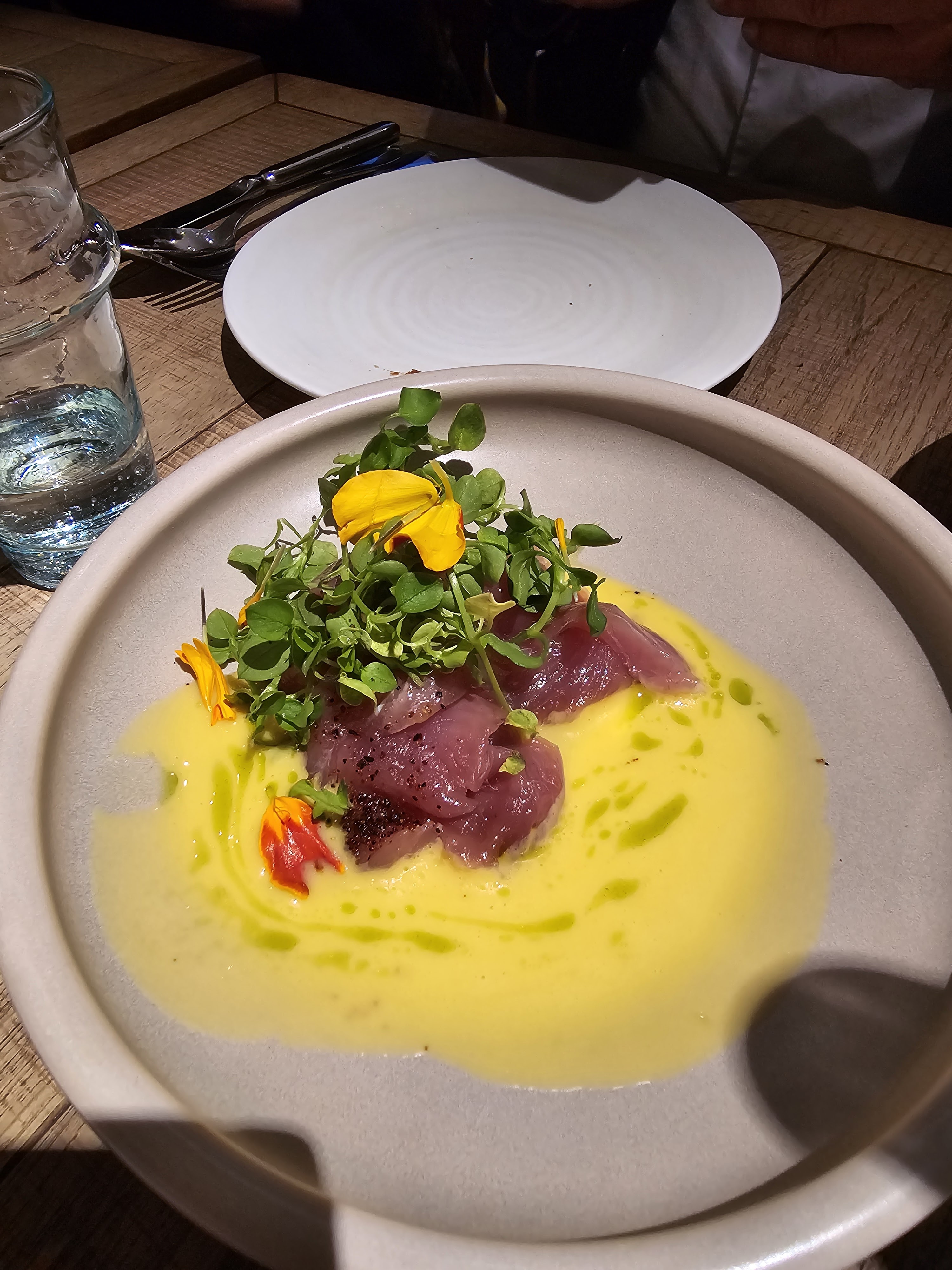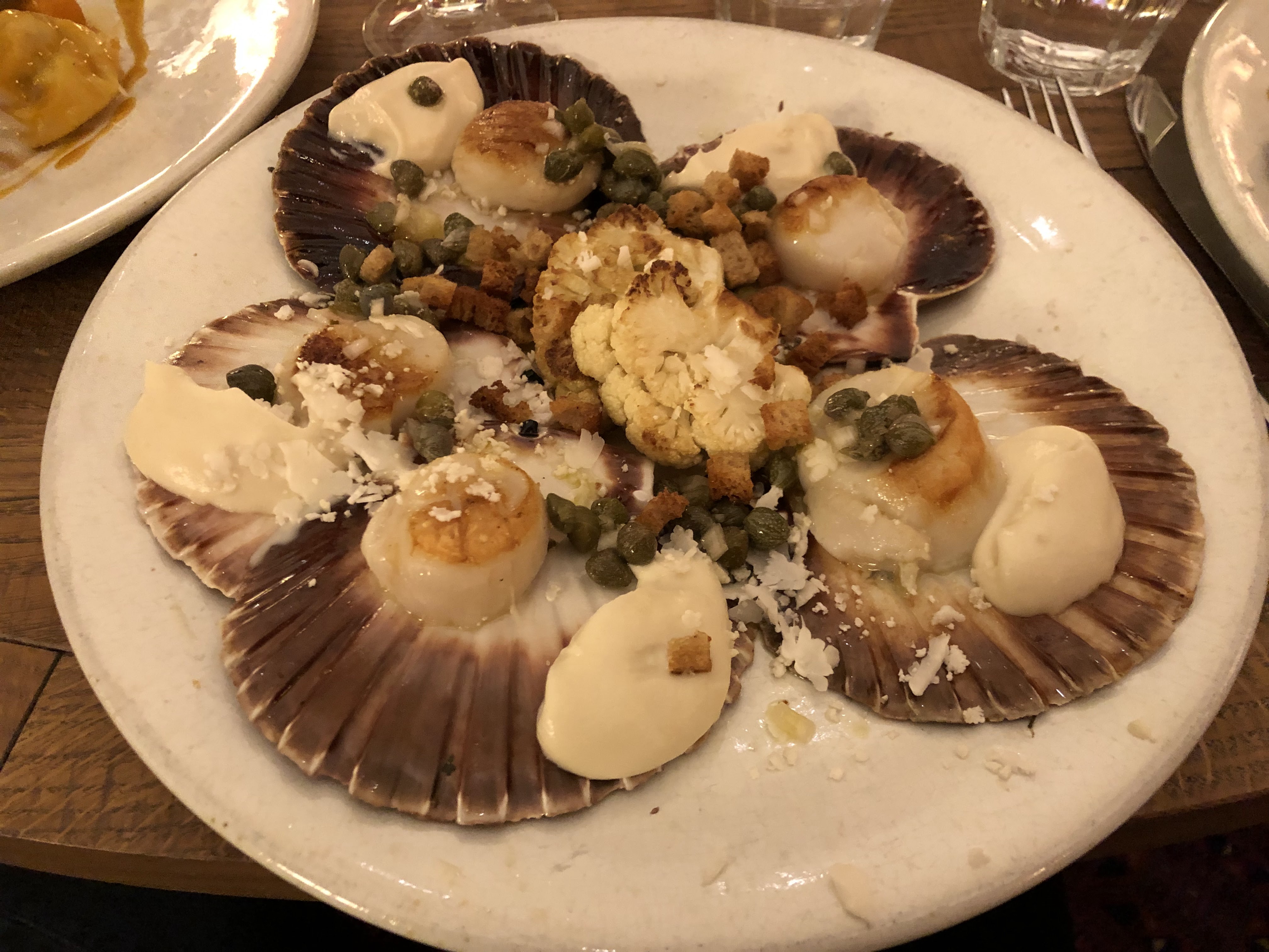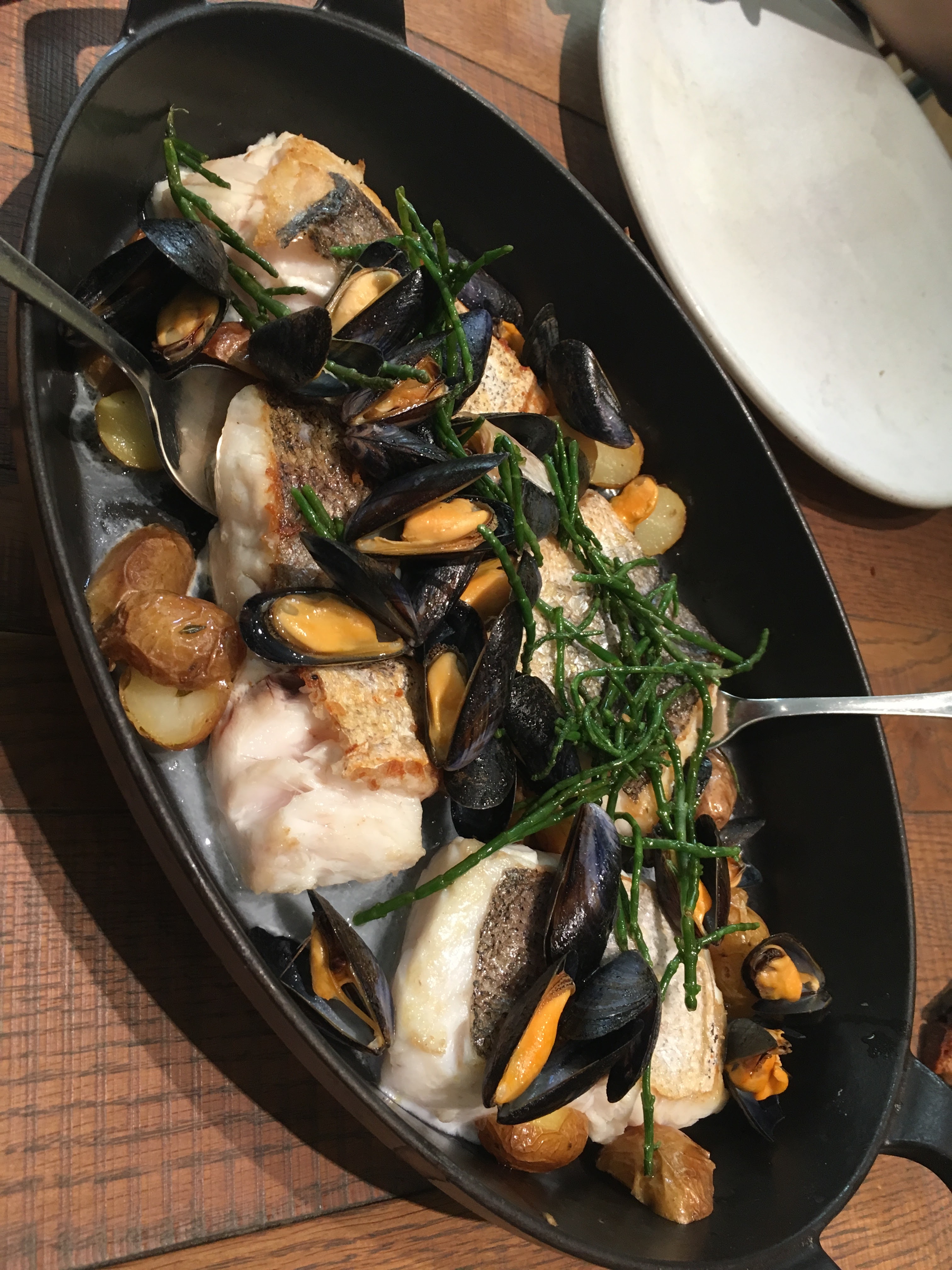 Alors juste un délice, très bons produits et travail, pas encore vraiment gastro (certains produits sont encore un peu trop bruts ou simples pour l’être). Simplement un peu cher pour ce que c’est, les portions sont un peu chiches (Ici l’entrée était une demi betterave avec beaucoup d’herbes et le plat de résistance c’etait 3 saint jacques par personne, bref heureusement que nous n’avions pas de gros mangeurs) Sinon les cocktails sont juste extras également (15€ cela dit)