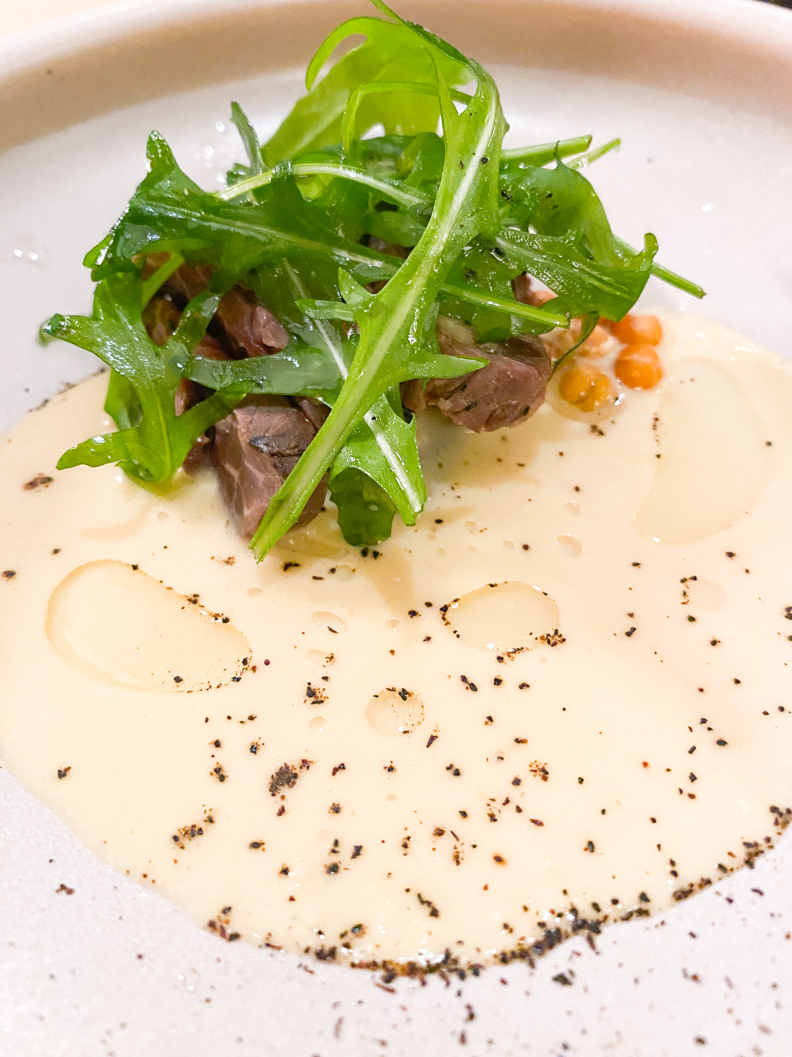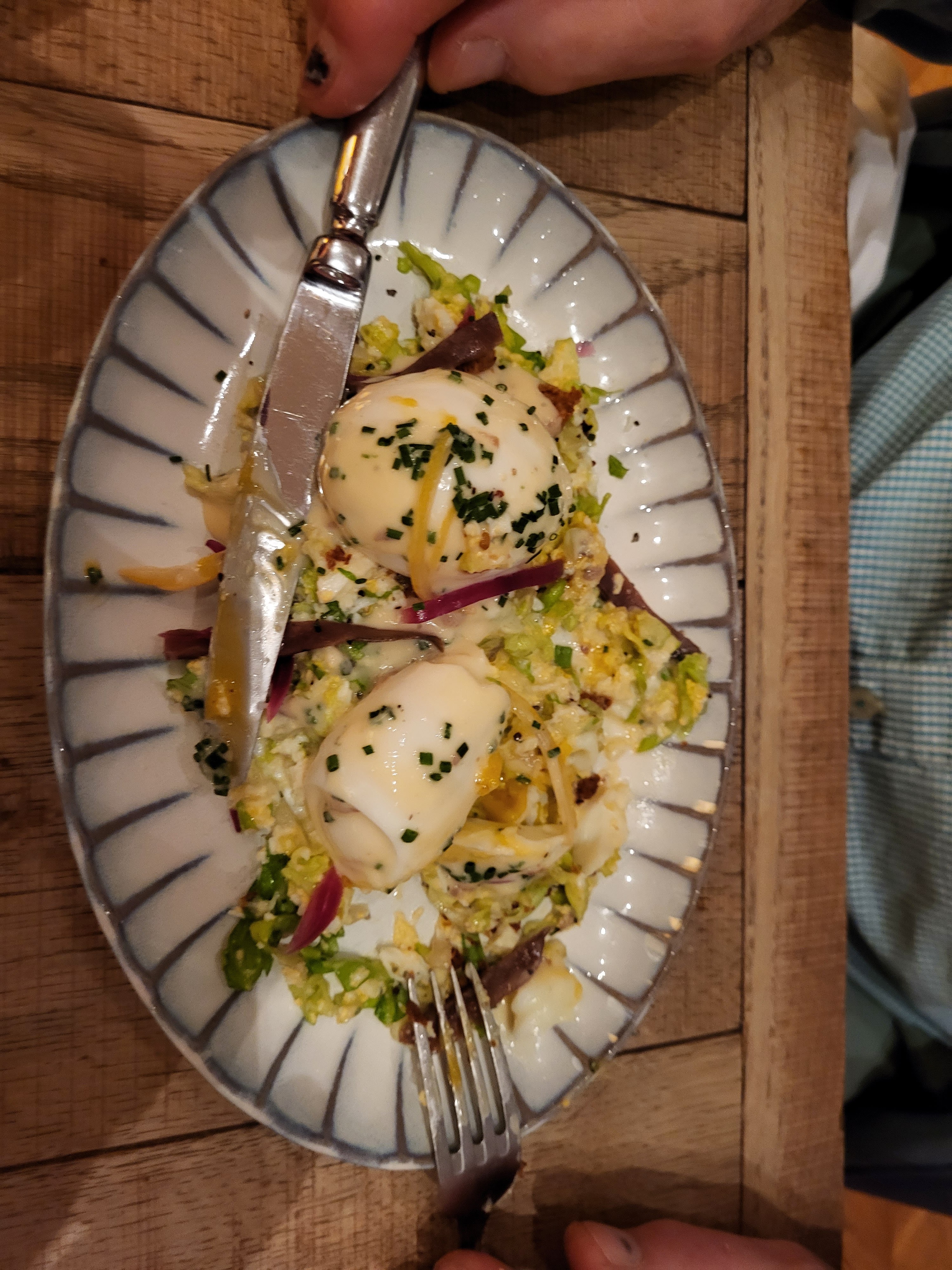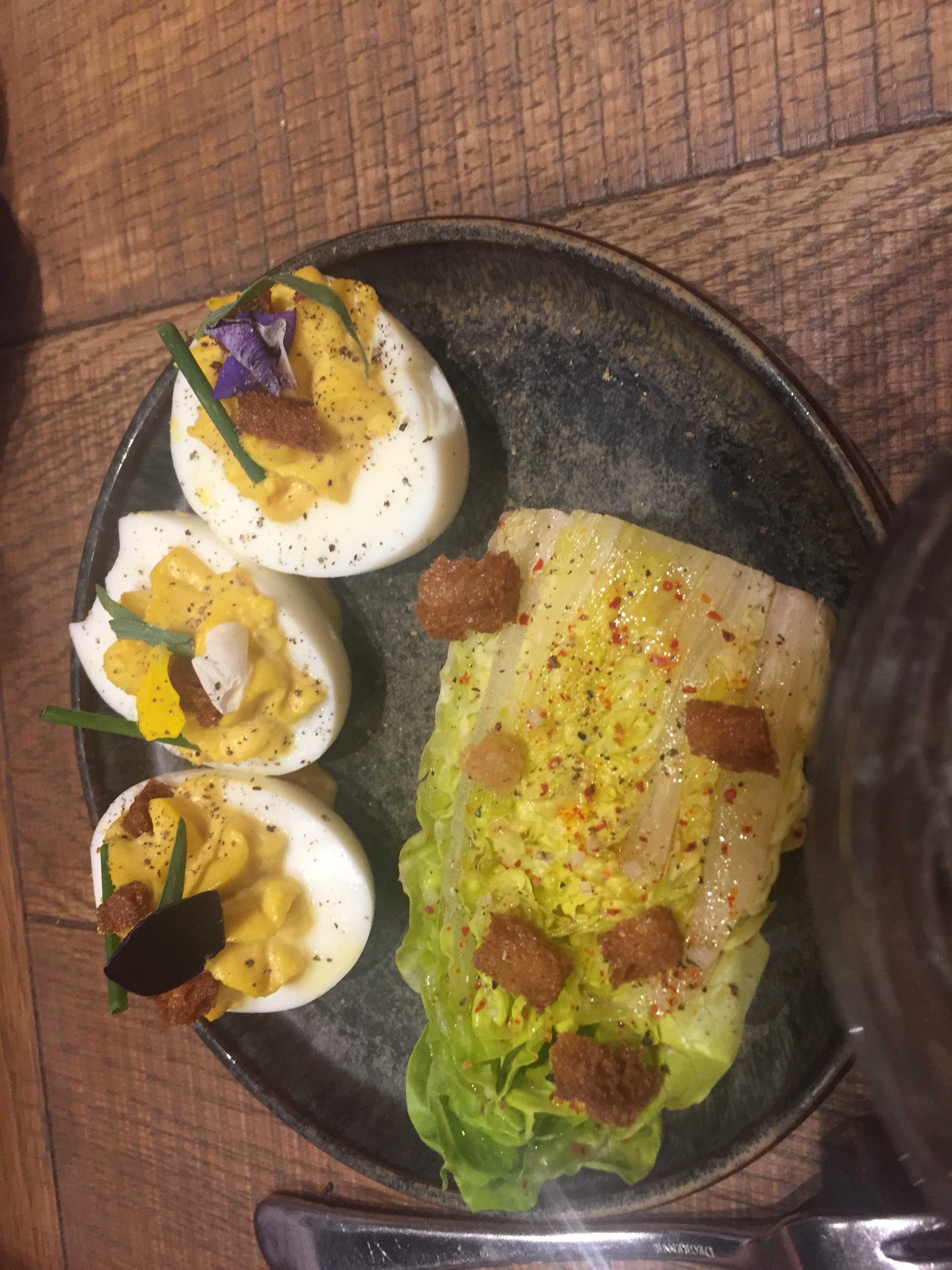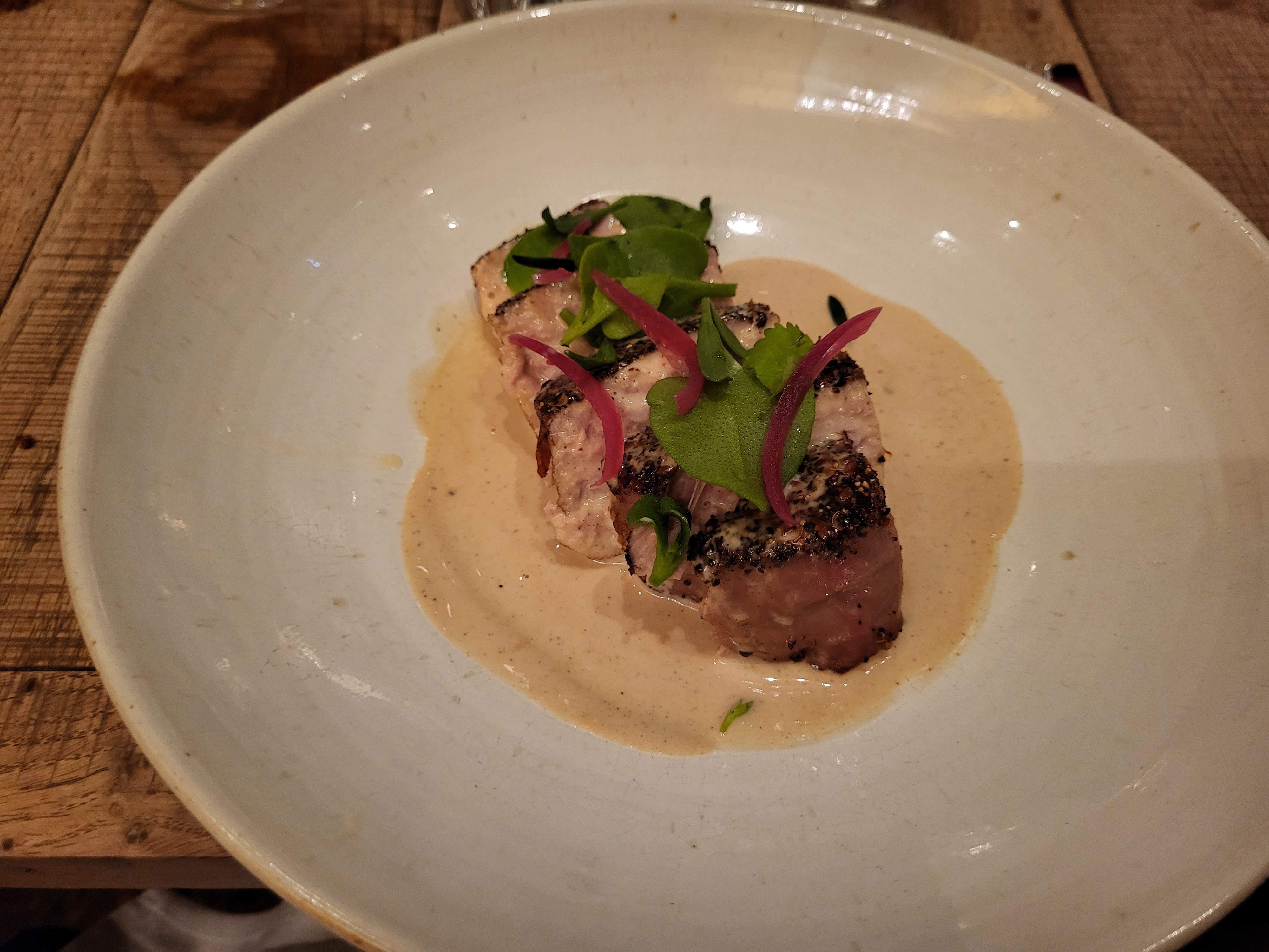 Alors juste un délice, très bons produits et travail, pas encore vraiment gastro (certains produits sont encore un peu trop bruts ou simples pour l’être). Simplement un peu cher pour ce que c’est, les portions sont un peu chiches (Ici l’entrée était une demi betterave avec beaucoup d’herbes et le plat de résistance c’etait 3 saint jacques par personne, bref heureusement que nous n’avions pas de gros mangeurs) Sinon les cocktails sont juste extras également (15€ cela dit)