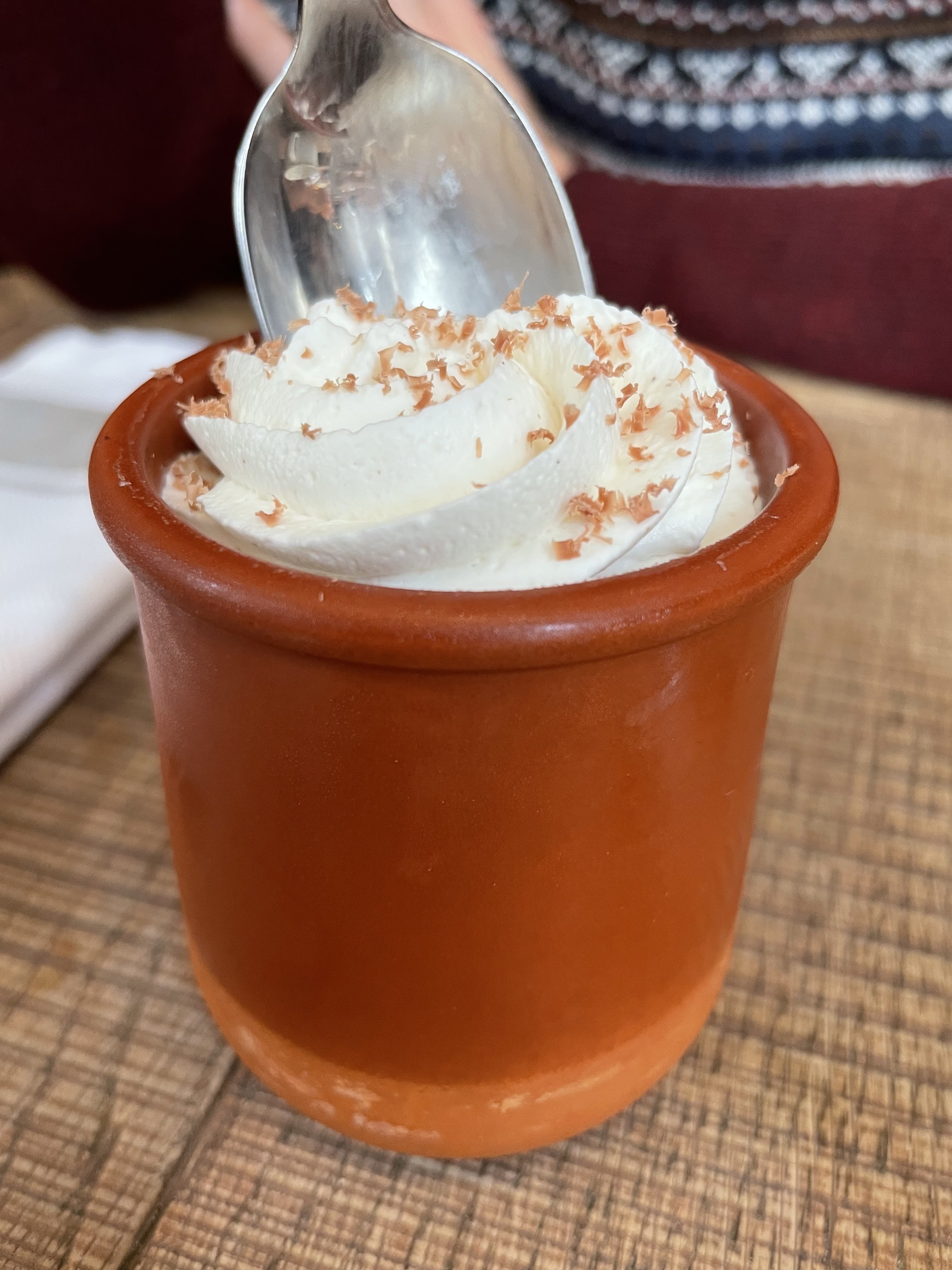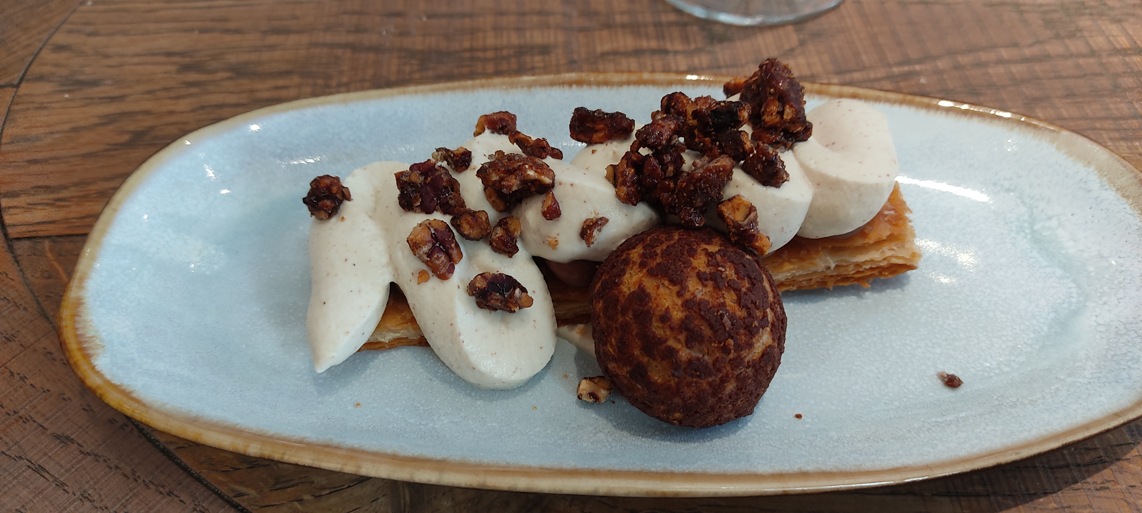 Tout était parfait ! Cadre cool, foie gras en entrée excellent et très très copieux, côté de veau pour 2 excellente, pavlova aux marrons sur une meringue parfaite On ne peut qu'avoir envie de revenir !!