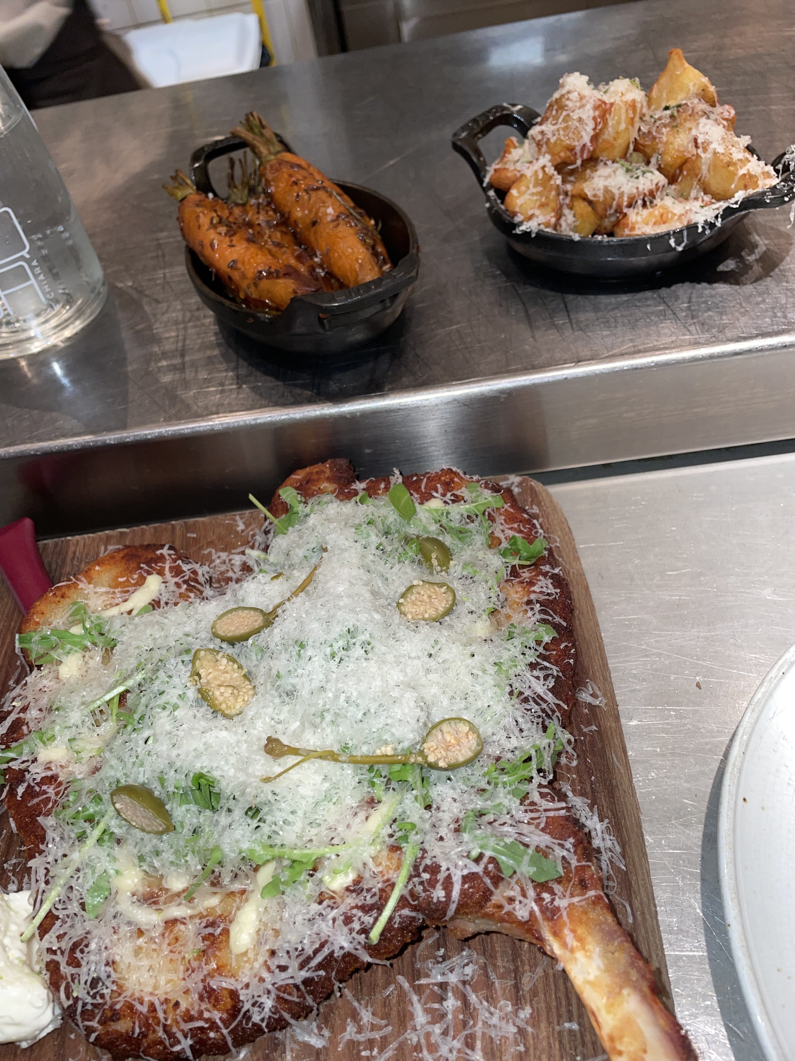 Nouvelle adresse vu Hélène Darroze. La carte est bien faite avec du choix mais pas trop. Les plats à partager sont donne une ambiance chaleureuse au restaurant. Le rib de bœuf est à tomber et le Poulet est délicieux. Nous avons pris la polenta crémeuse et les pommes de terre... très bons aussi. Le guacamole est servi de façon original abec les condiments séparés et l’avocat dans le mortier. Le jambon noir de bigorre est extra fin. Côté dessert, le pavlova est léger et le chou craquant. Côté prix c’est un bon rapport qualité prix, moyenne prix du plat 30€/pers + prix de l’accompagnement environ 7€. Le seul bémol, la déco qui manque de chaleur et de goût. On est mieux installé à l’étage qu’au rdc. Le bar à l’étage permet d’attendre tranquillement sa table. Et le service fut agréable quoi qu’un peu maladroit, ils sont jeunes et nombreux.