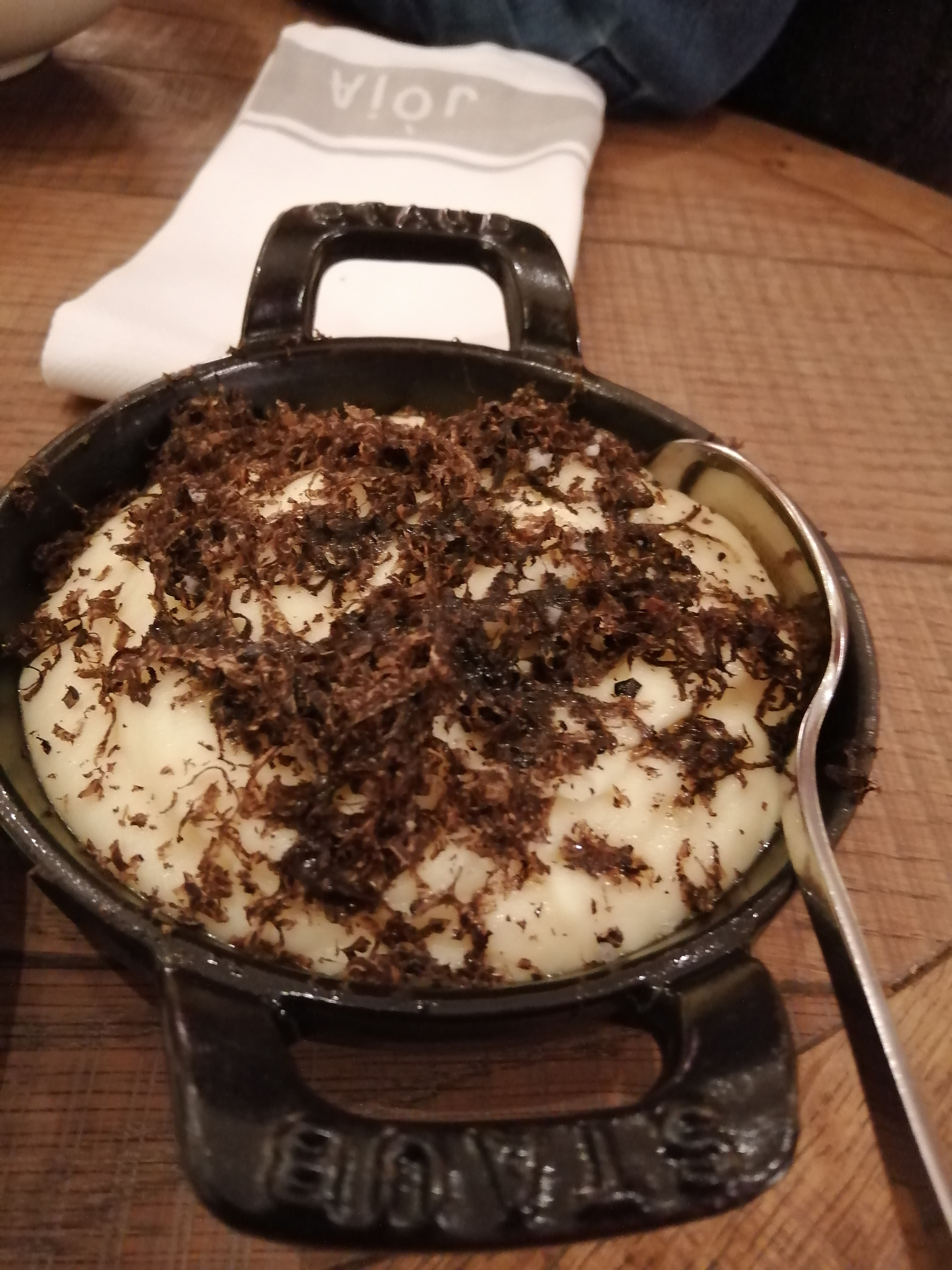Encore en période de rôdage cette nouvelle adresse mise sur la générosité et le partage. De nombreux plats sont à partager et quand ce n'est pas le cas les portions sont gargantuesques (rarement vu un risotto servi en telle quantité, surtout pour une entrée !) Comme pour ce délicieux cou d'agneau à dépiotter soi-même ! Le service ultra souriant est très agréable. Les places au comptoirs sont en or pour observer le chef et sa brigade en oeuvre. C'est sûr, un repas ici n'est pas donné mais une formule à 29euros le midi (entrée plat dessert ) permet de goûter le lieu pour un prix raisonnable. La Joia est prometteuse !