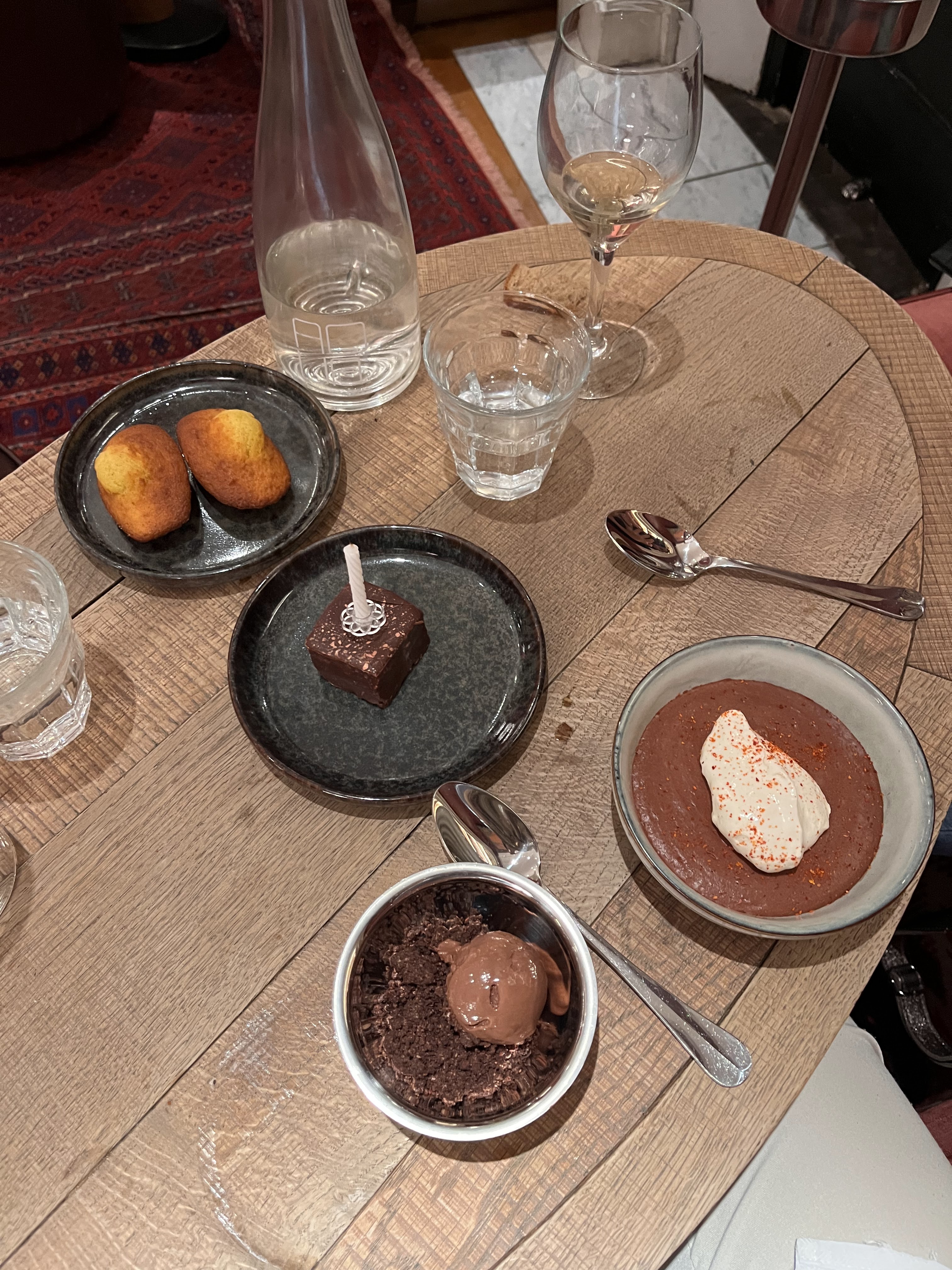 Dans une ruelle calme pas loin des Grands Boulevards, nous sommes tout de suite bien accueilli dans ce bel endroit avec vu directe sur les cuisines. Attention, il n’y a pas de brunch mais une formule avec des plats à partager. Les saveurs, les couleurs et les textures sont très travaillées, c’est un plaisir gourmand. Les quantités n’ont pas l’air importantes mais elles sont largement suffisantes. Le plus : le chocolat chaud est incroyable! Bien dense pour les amateurs de chocolat noir, un peu à l’espagnole.