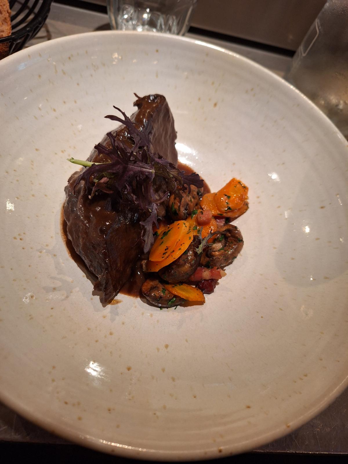 Une très bonne soirée pour ce cadeau de mariage. 4 étoiles seulement pour la cuisine car une légère déception sur les patates. Non pas qu'elles furent mauvaises mais il leur manquait quelque chose (ou alors nous sommes passés à côté). Et un poulet qui, de la même manière, malgré un soin manifeste apporté à la cuisson et sa préparation, n'avait pas cette touche de waow, ou cette signature de goût qu'on aurait pu attendre. Rien qui nous empêche de prendre plaisir à manger et à finir nos plats (ou presque car le poulet est très copieux !), et d'apprécier le dressage notamment du plat de Lieu jaune. Mention spéciale aux carottes rôties au miel de lavande qui, elles, avaient vraiment une identité visuelle et gustative incroyables. Les entrées étaient également très bonnes avec un très bon dressage. L'ambiance, très agréable à l'étage, avec un visuel rosé très enveloppant, une tranquillité très appréciable. Si cela avait été possible nous aurions mis 6 ou 7 étoiles pour le service qui a été impeccable. Nous avons apprécié l'attention portée à nous expliquer les plats, à répondre aux questions et notamment à la demande de boissons non alcoolisée ou d'éviction des moules dans le plat de poisson. L'attention régulière mais jamais intrusive à ce que tout se passe bien. Nous y reviendrons pour le plaisir et avec l'espoir de passer à 5 étoiles la note de cuisine