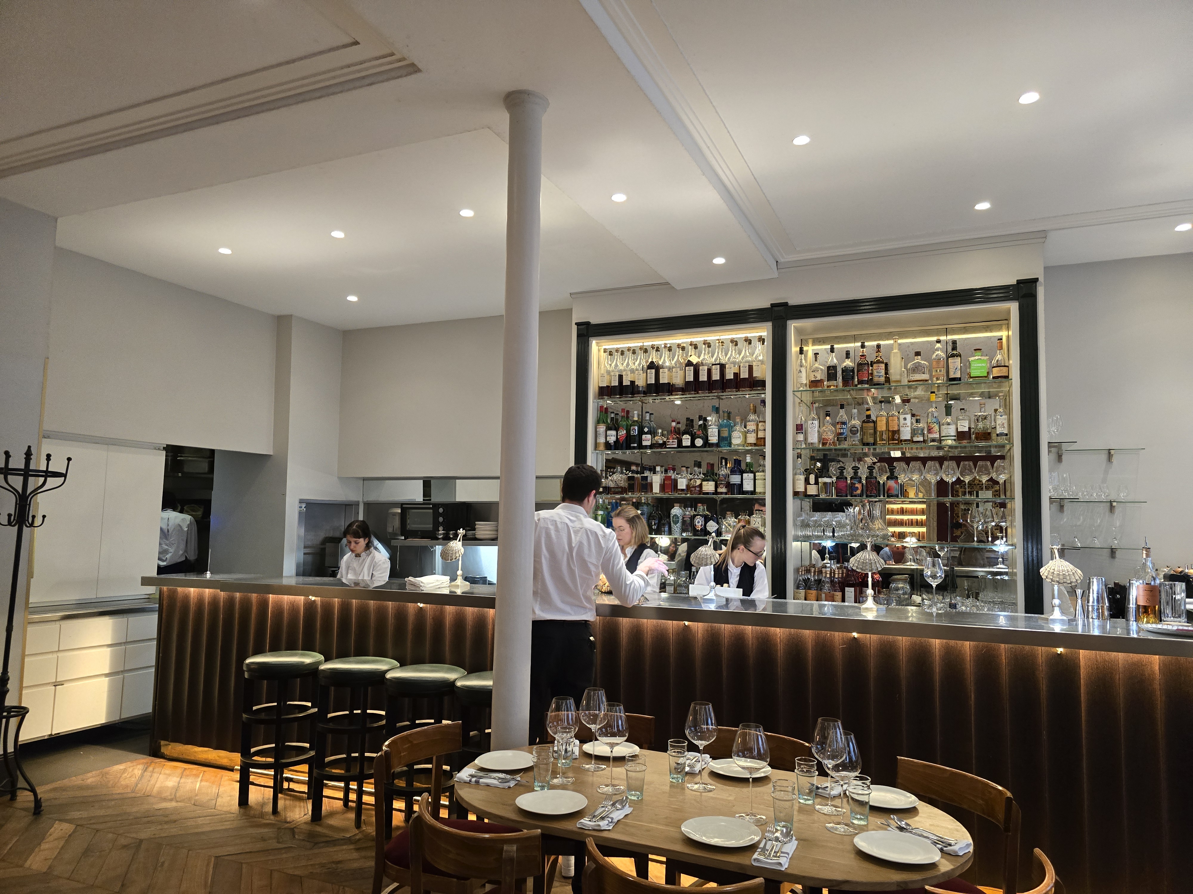 La brasserie parisienne de la chef Darroze. Un endroit très accueillant. Entre table normale, table avec canapé ou table haute bistrot dans un décor cosy, nous trouverons une carte courte intéressante avec une cuisine maîtrisée et de goût. (Je me suis régalé sur le poulpe entier). Côté vins, même idée, une carte courte et variée avec de très belles choses. Le service est efficace et aimable. Je ne mets que trois étoiles car je ne sais pas pourquoi il m'ont servi ma bouteille de bordeaux rouge glacée (contre toutes indications de l'étiquette dudit contenant) Qu'à cela ne tienne, l'expérience est tout de même très agréable et je recommande donc avec plaisir.