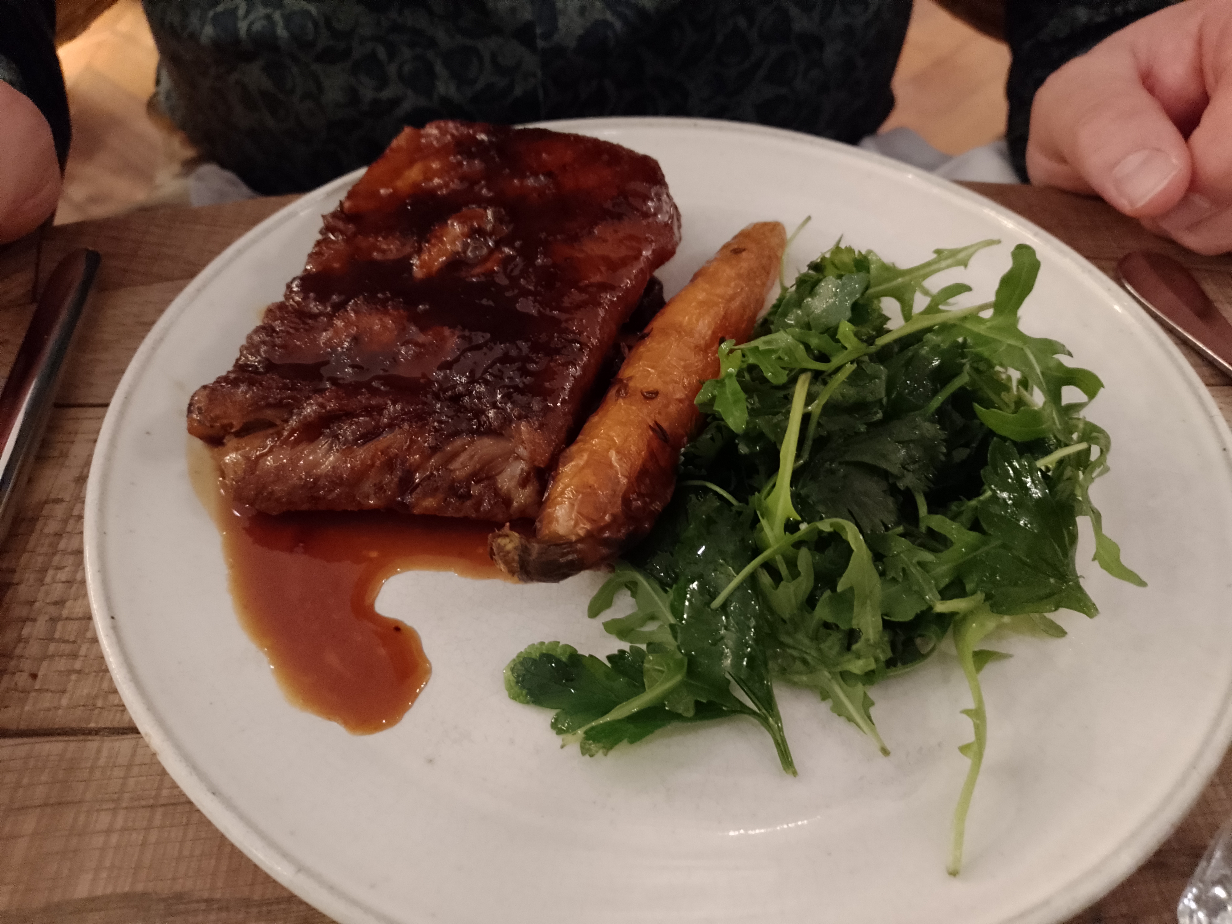 Le menu du midi est top ! J'ai beaucoup aimé celui d'aujourd'hui, aubergines houmous, ribs avec une purée et finir avec une crème caramel ! Entrée/plat ou plat/dessert à 24€ ou entrée/plat/dessert à 29€.