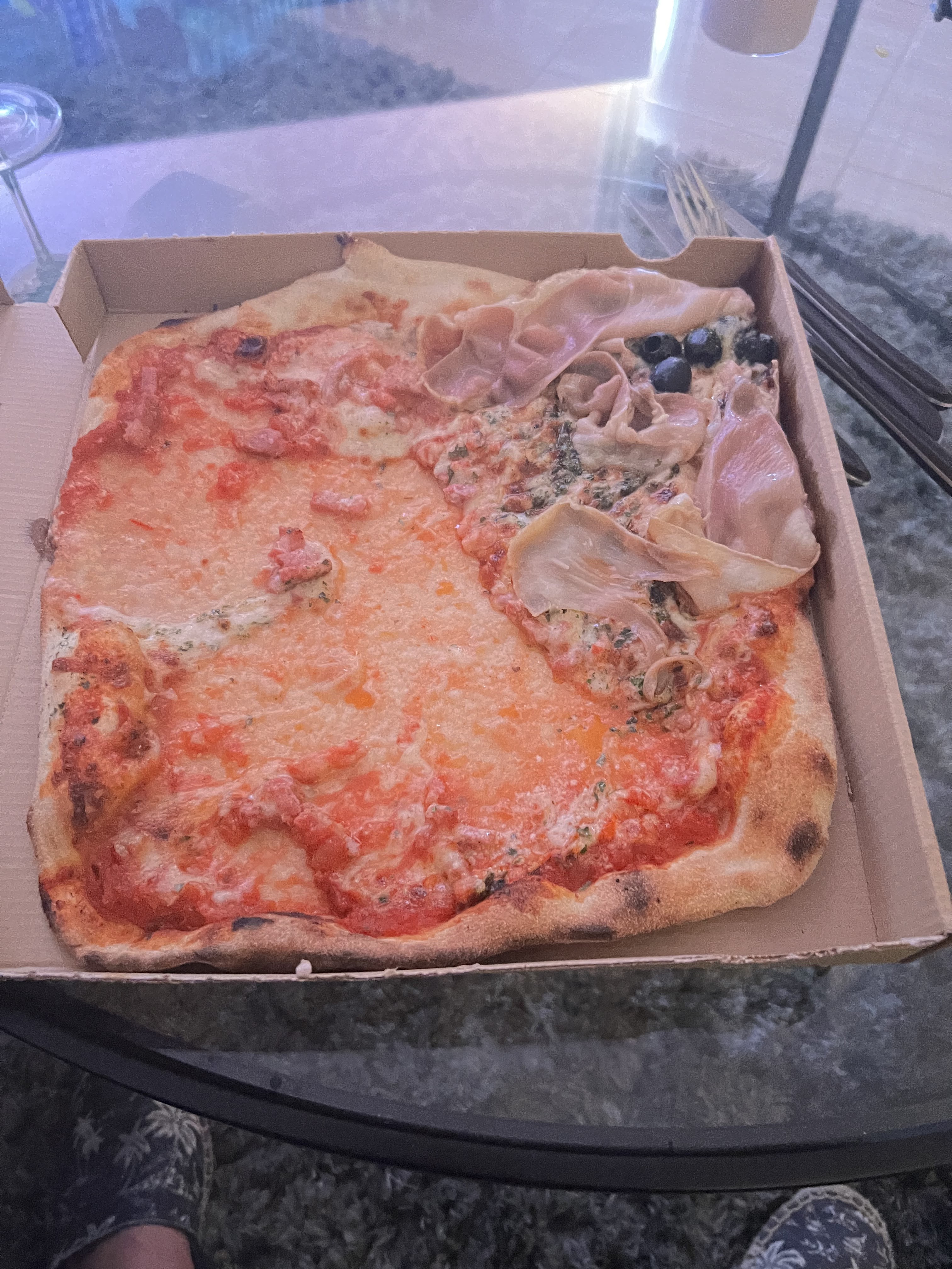 Une pizza Reine et une Mamamia, mangés au bord de mer ! La Reine très bonne, bien garni. La Mamamia aussi bien garni, cependant le pesto était un peu trop salé. Très bon rapport qualité/prix (26€ pour 2 grandes pizza et une canette de soda), une pâte fine comme j'aime, nous avons passé un bon moment ! Merci