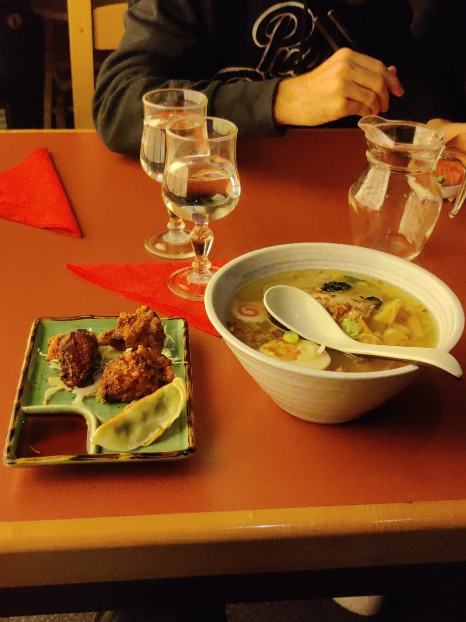 Un lieu simple avec une belle ambiance japonaise, le poulet était très bon avec une panure très fine. J’ai trouvé le ramen un peu trop simpliste mais le service était au top et l’ensemble très satisfaisant