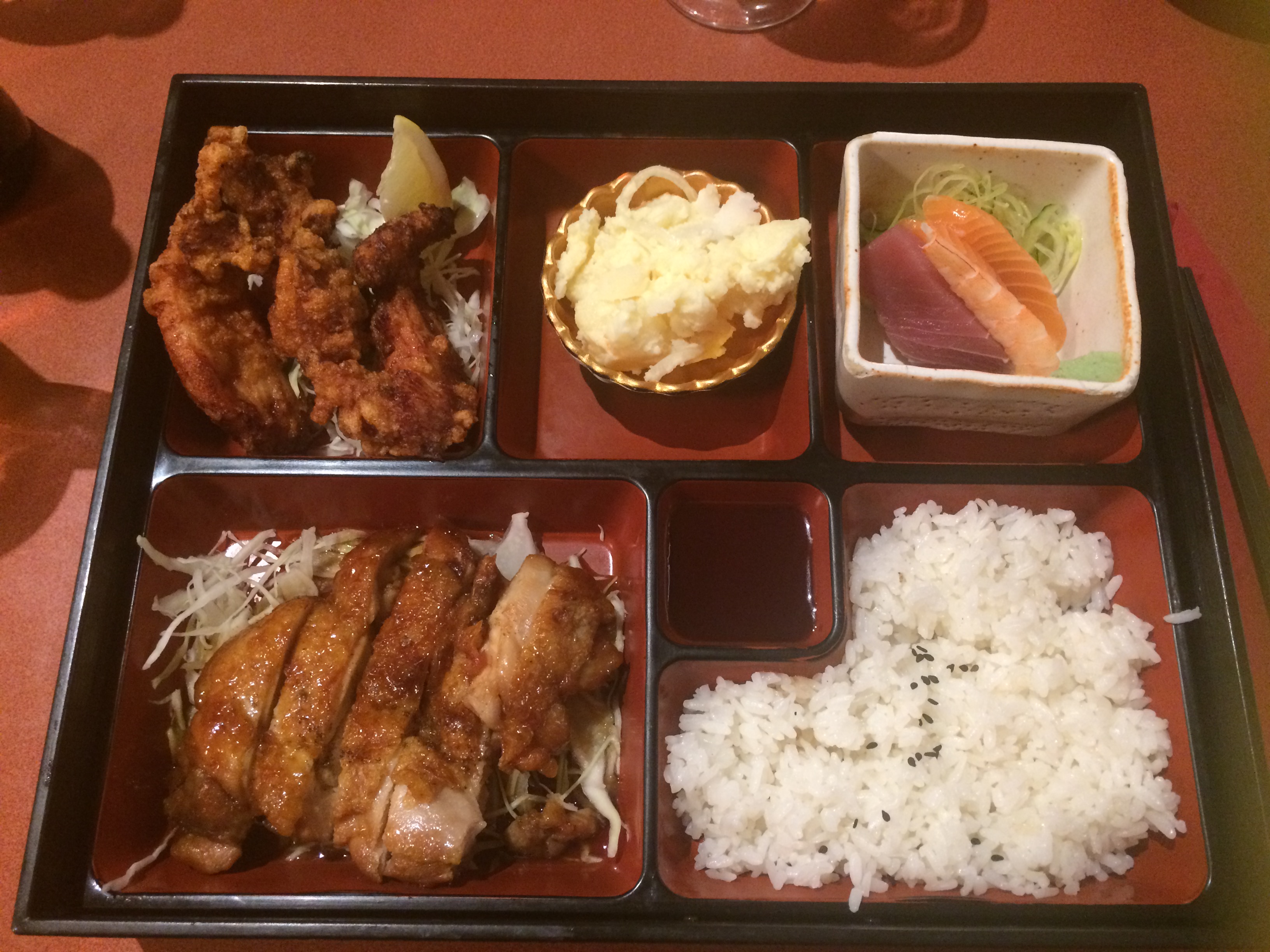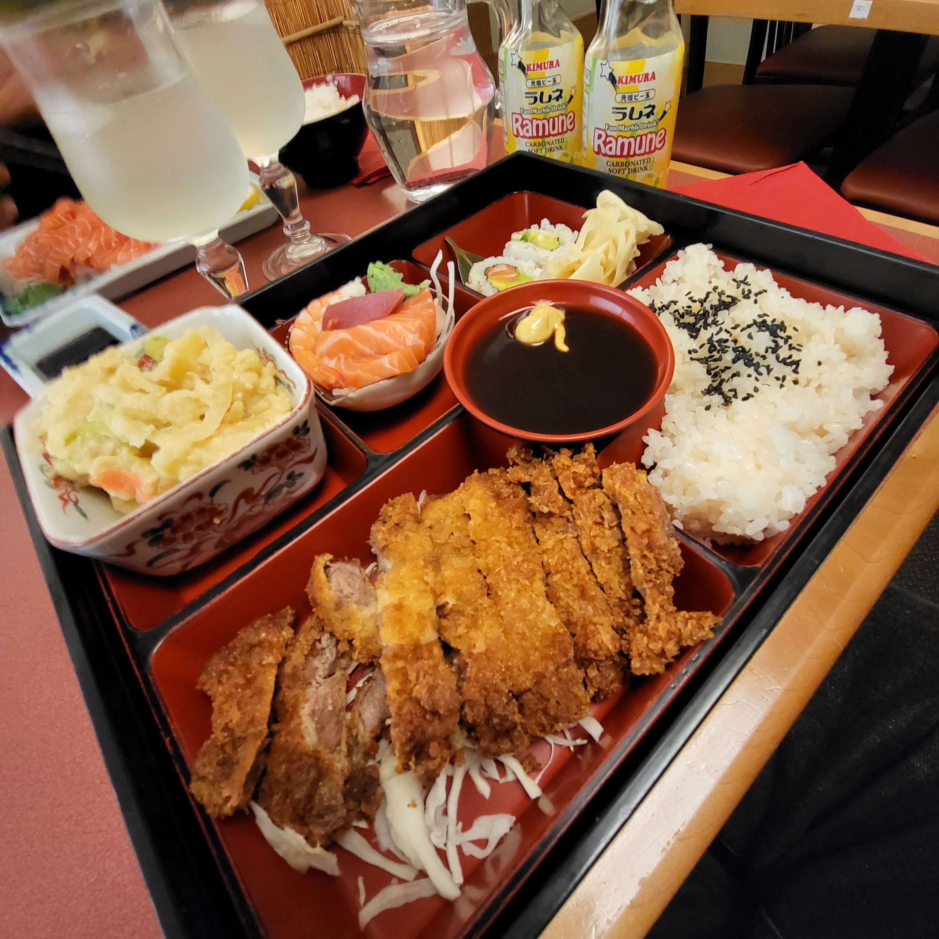 Le service était merveilleux, Mes amis et moi étions pour la plupart satisfaites. la nourriture frite est la meilleure du Japon, mais le poulet frit que j'ai mangé était décevant et un peu trop salé. La portion de bento est grande et le menu est tout bon.