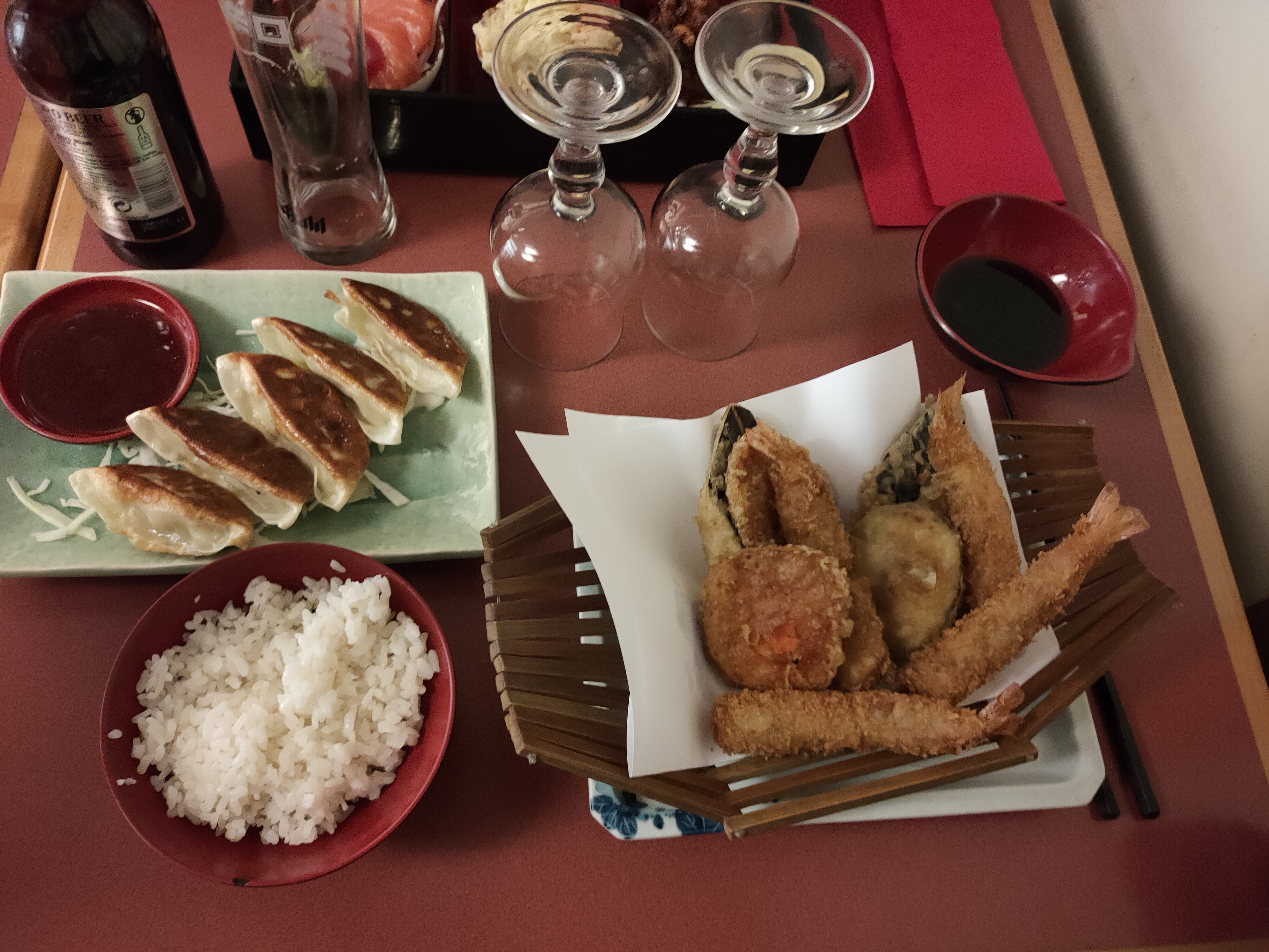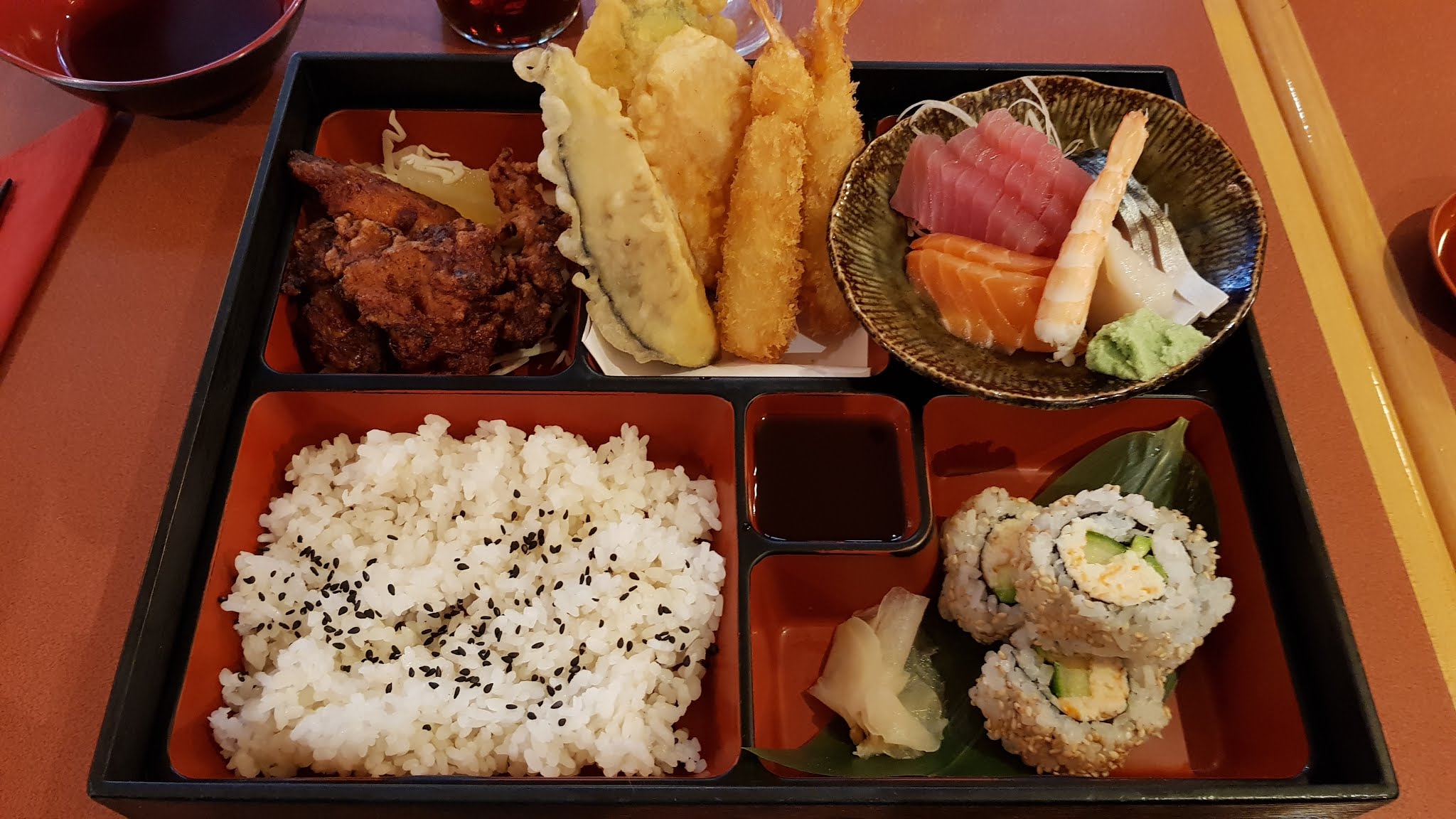 Le riz à sushi était mauvais, froid et pas le riz à sushi, le sashimi est ok, la tempura est un peu brune.