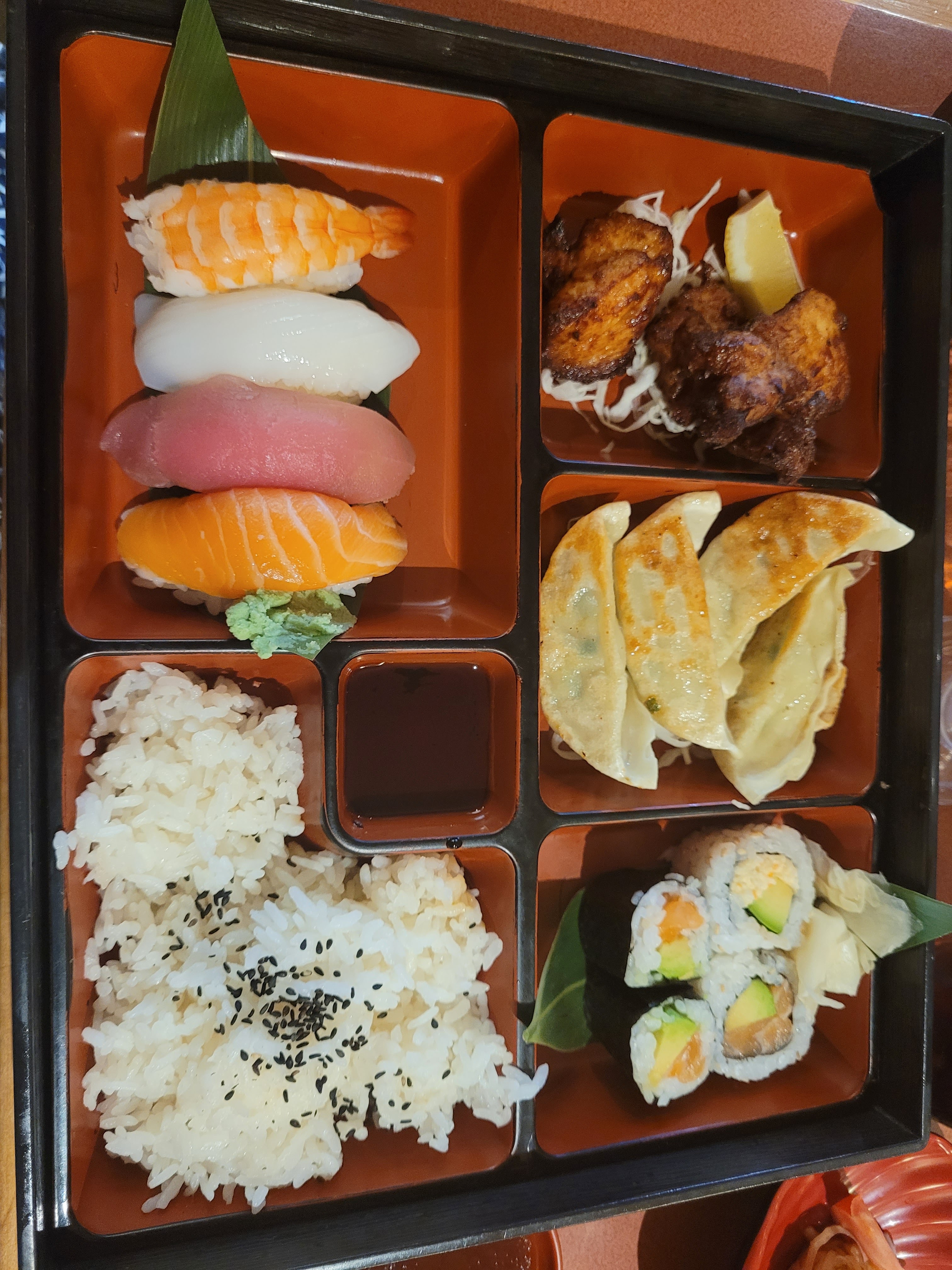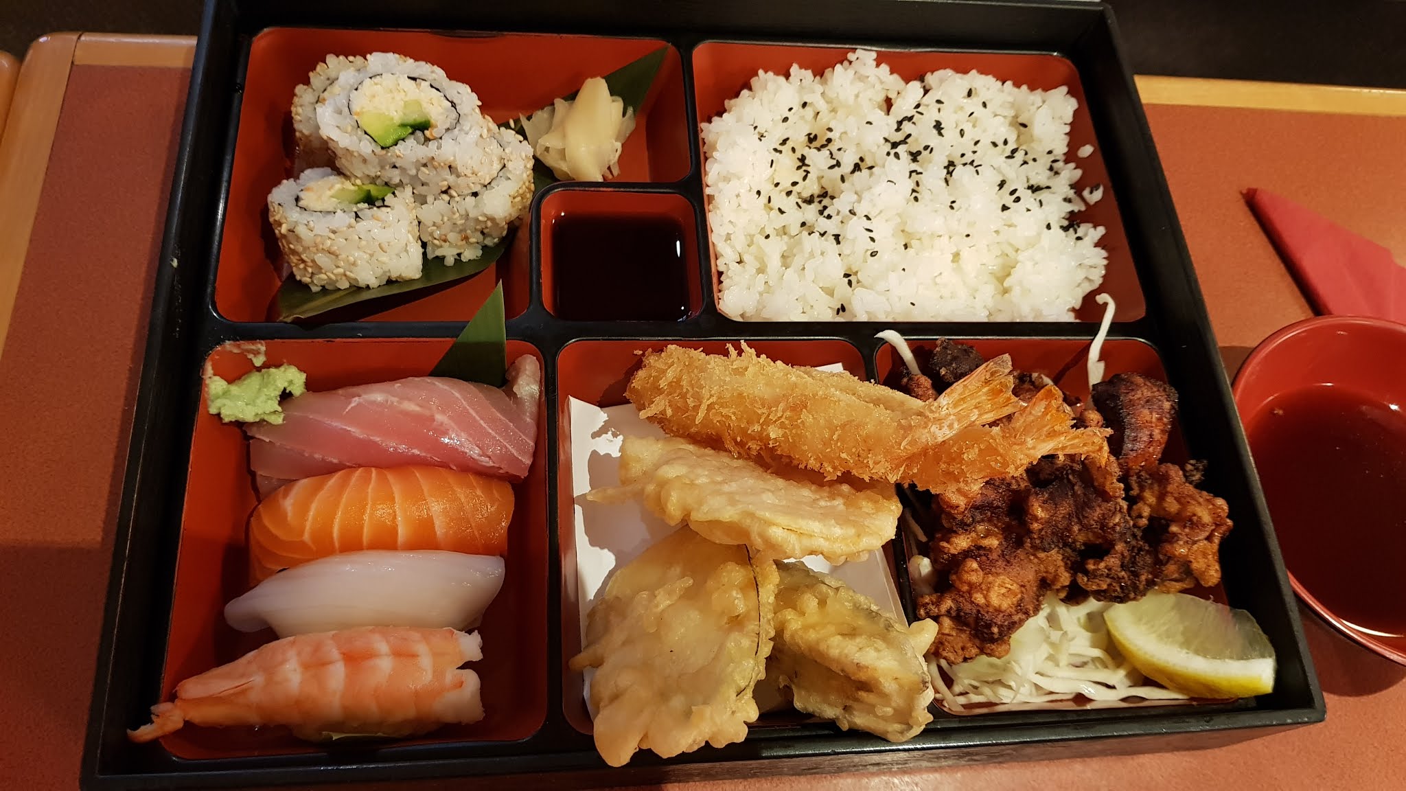Délicieux ! Tous les ingrédients sont frais et de grande qualité, beaucoup de variété entre les bentôs, makis et sushis. Mention spéciale pour le sashimi de thon rouge, probablement le meilleur que j'ai pu goûter. Foncez !