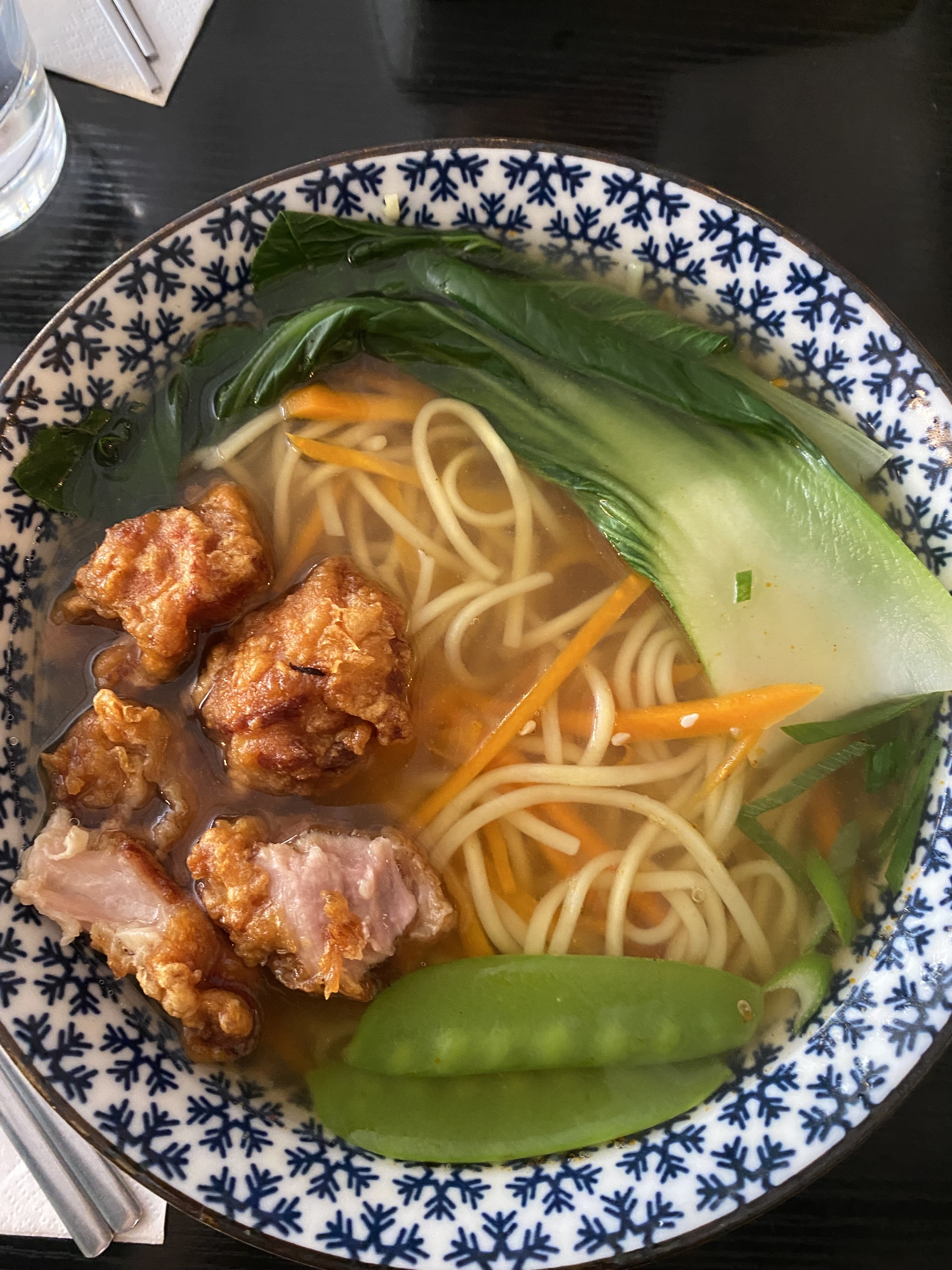 Très bon restaurant, découvert un peu par hasard et ce fût très bon ! Nous avons pris les raviolis et les pâtes avec le bouillon et le poulet croustillant et c'était très bon ! Si nous repassons dans le quartier nous y reviendrons avec plaisir