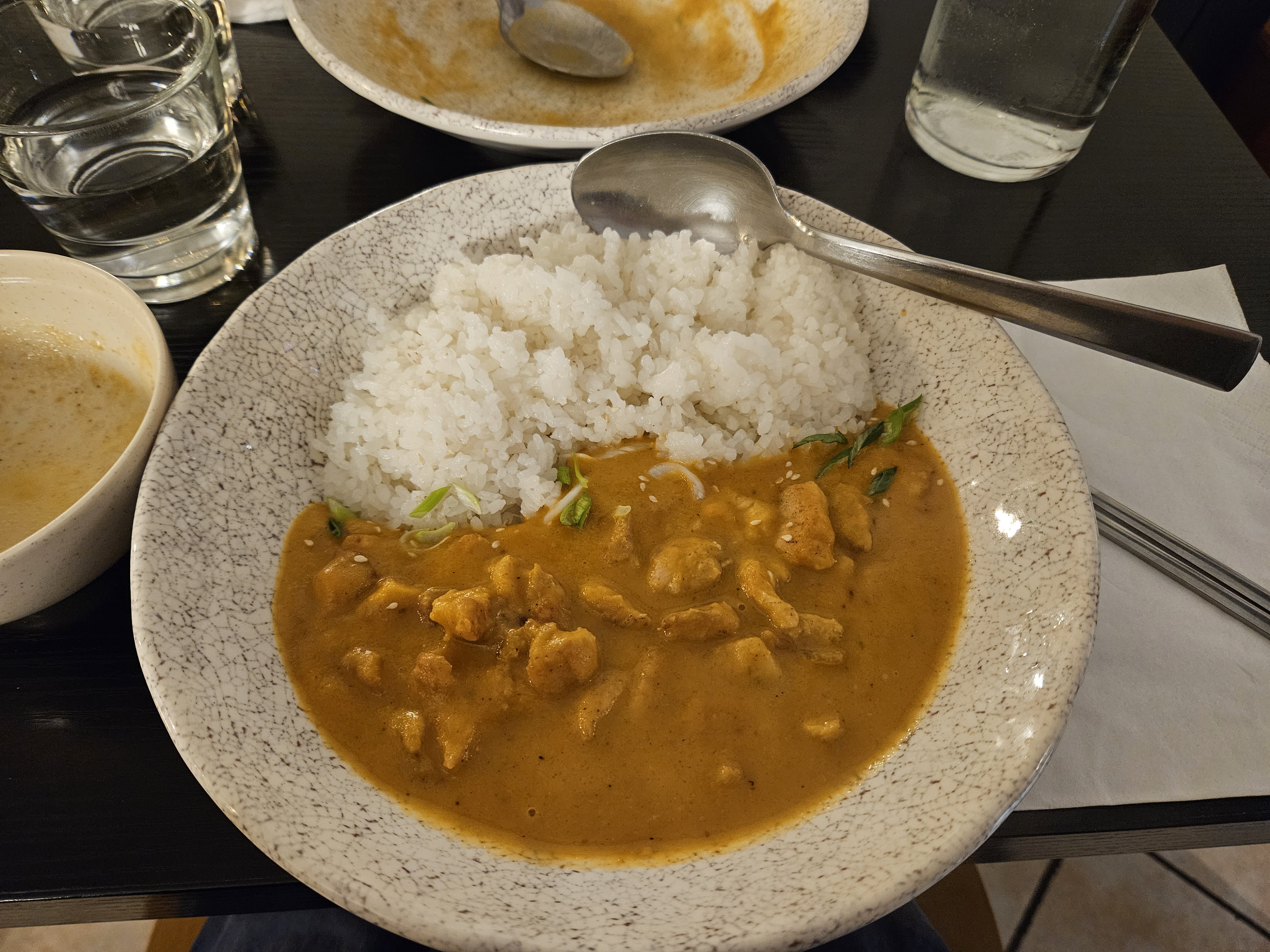 Le service a été rapide, j'ai commandé le mix momo à partager, chaque variété était très bonne mais j'ai eu une préférence pour celui au porc très juteux. En plat principal, j'ai pris le curry coco, le goût était plutôt léger mais honnêtement très bon. Définitivement à tester. 👍