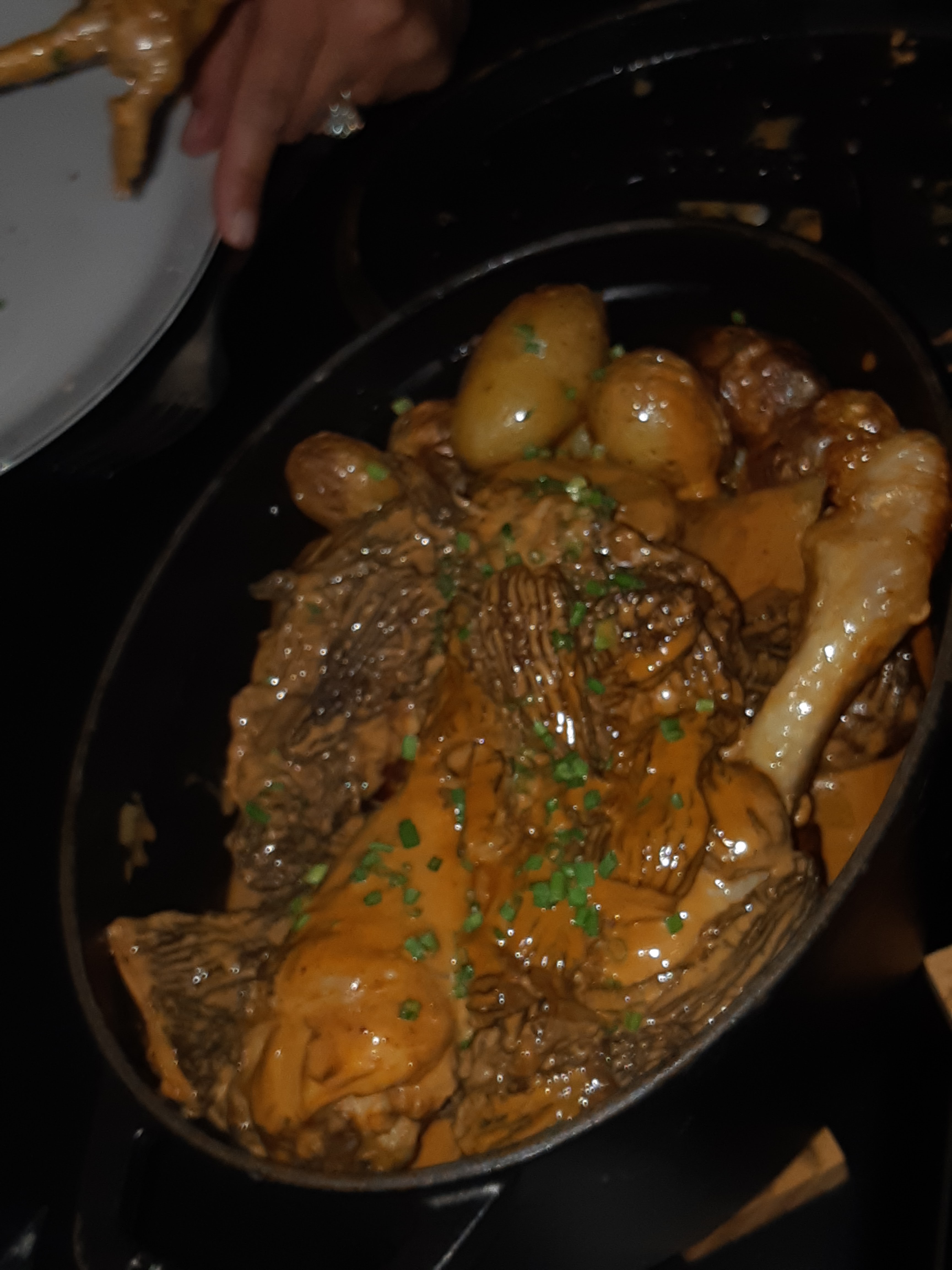 Succulent !!! Le poulet au vin jaune et au morilles est une tuerie !