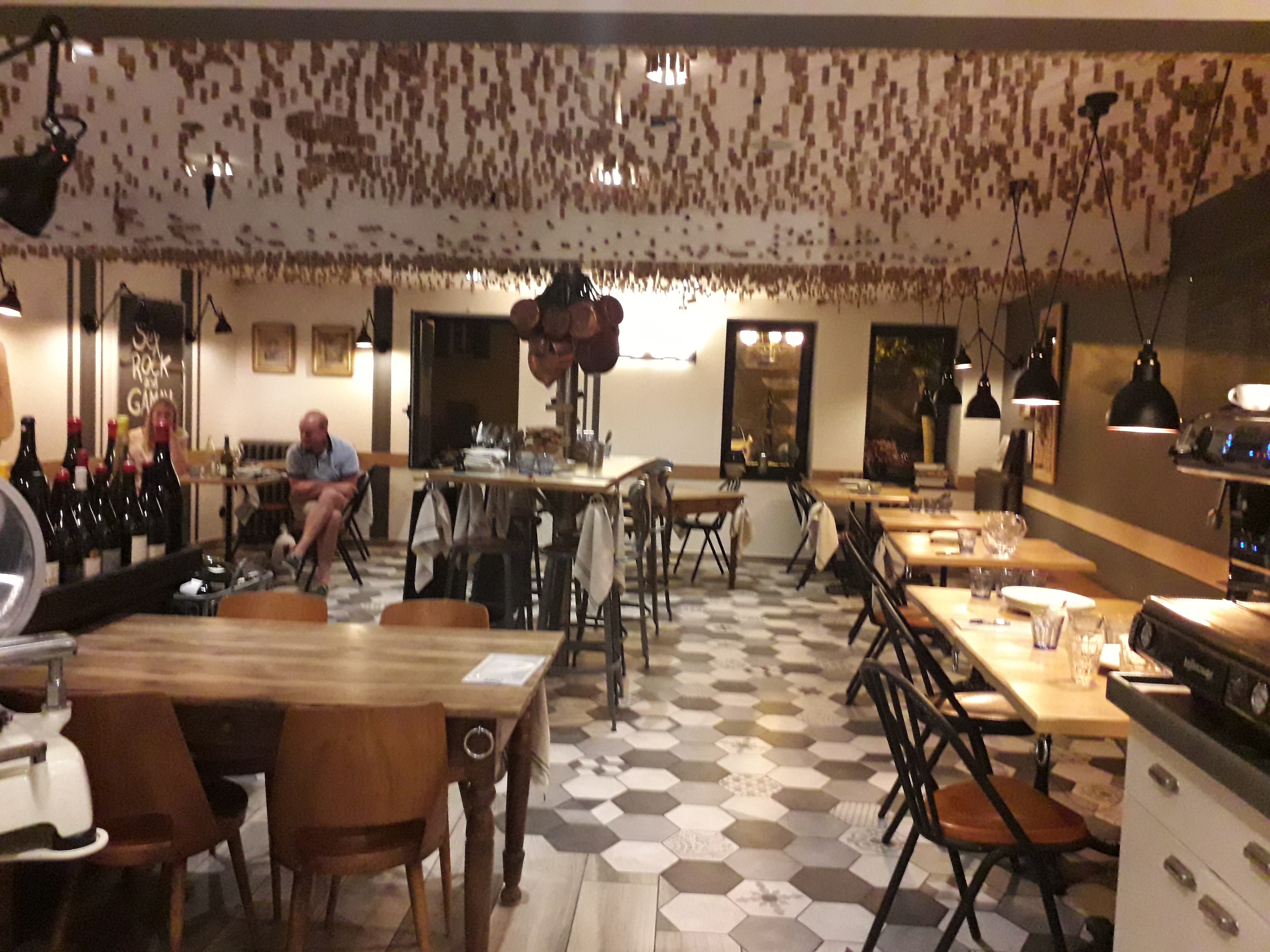 Très chaleureux , bon rapport qualité prix, excellent, pour les fin de semaine faut réserver, belle carte des vins de la région .le petit truc fun,on vous fourni un tube de colle pour coller votre bouchon au plafond.a recommander pour passer un bon moment entre amis .
