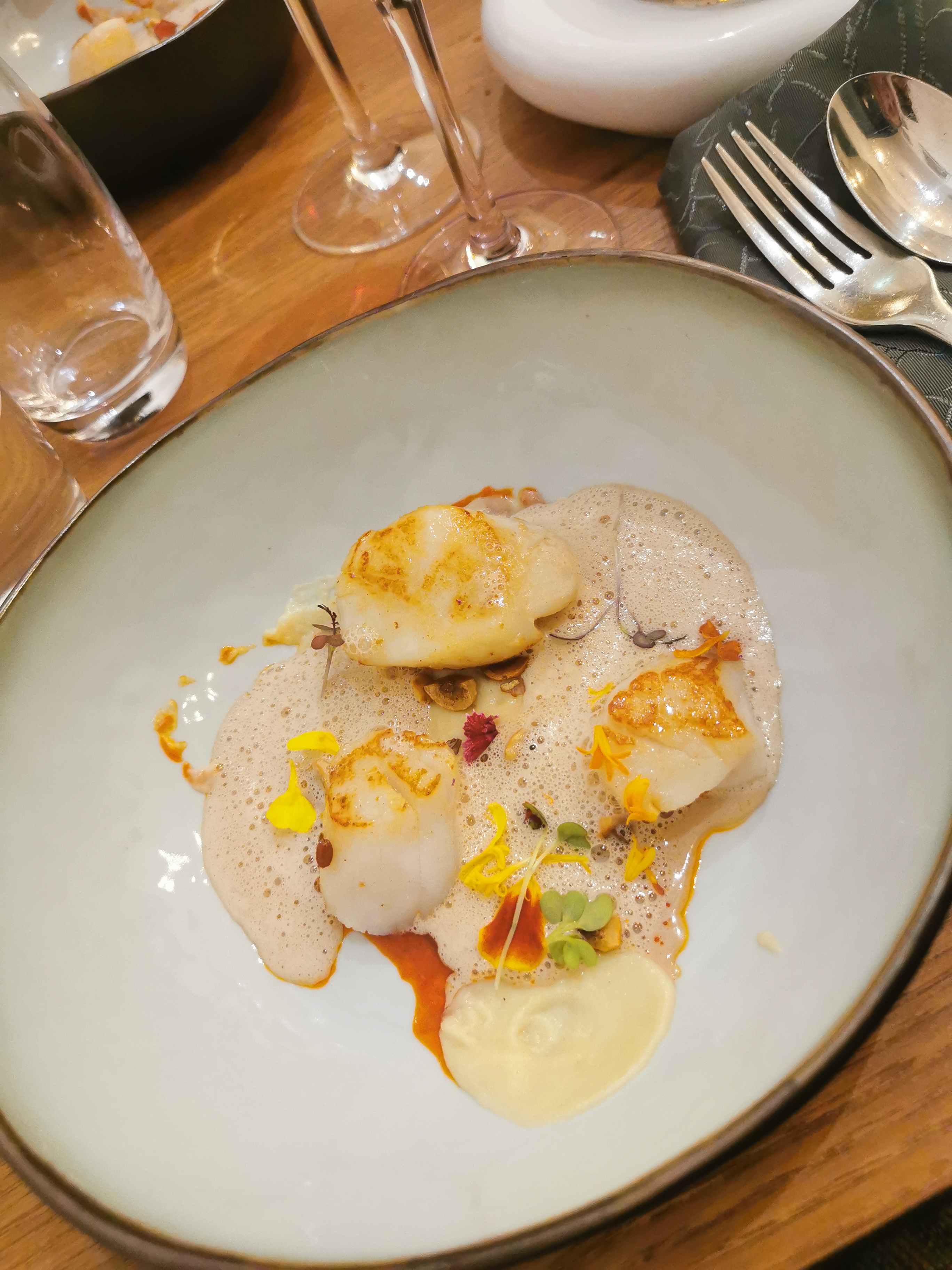 Parfait je n'ai jamais mangé des noix de st-Jacques aussi bien cuisinées et je ne vous parle même pas du Paris Brest façon profiteroles Hum ! Merci.