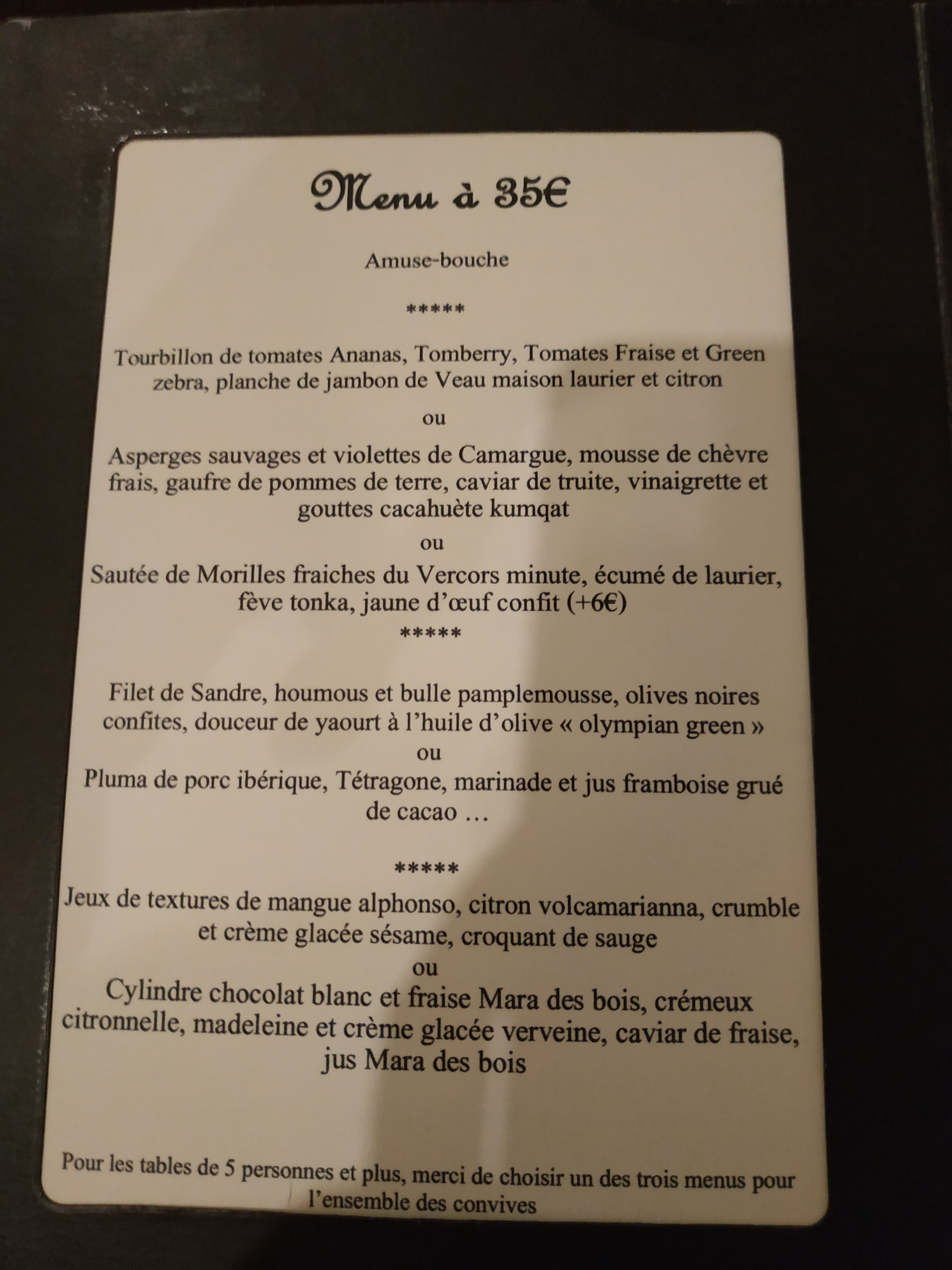 Menu abordable pour cette qualités . excellentes découvertes et raffinements des plats avec un service aux petits soins par l équipe .merci à tous