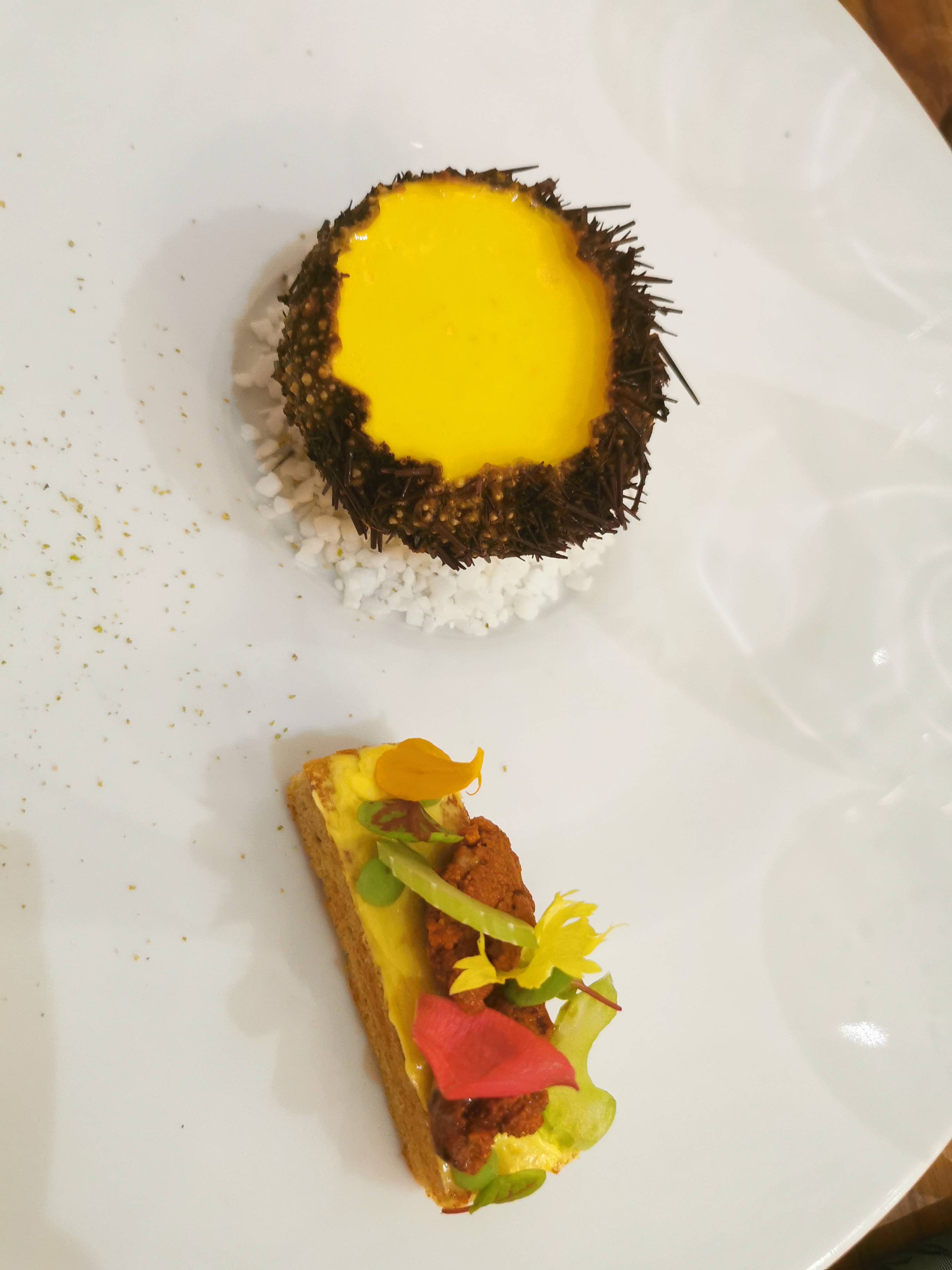 On a été agités mais qu'est ce qu'on a aimé !! Autant le Service que l'assiette ! Déjà venu il. Y a 3.4 ans ça a encore progressé. Belle carte de vins avec de jolis flacons. Les accords sont étonnants, travaillés et le Dressage est soigné. Petit coup de cœur sur le plat autour de l'oursin, c'est astucieux et bien pensé. Une adresse que je recommandais déjà.. Ça ne m'a que conforté dans mon idée. Superbe !