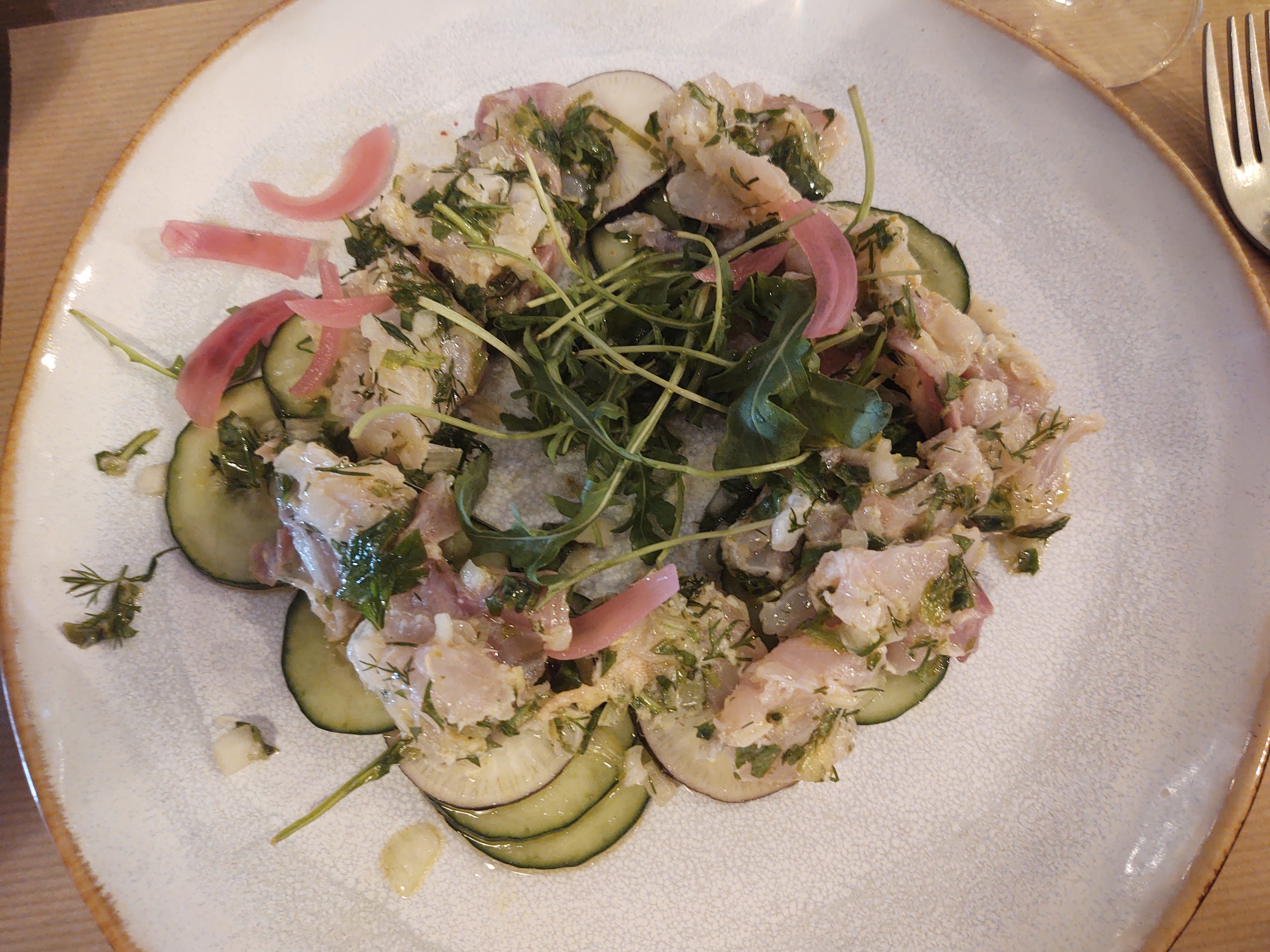 Entre-plat fade, aucun goût, le dessert était bon. Ne vaut pas 18€