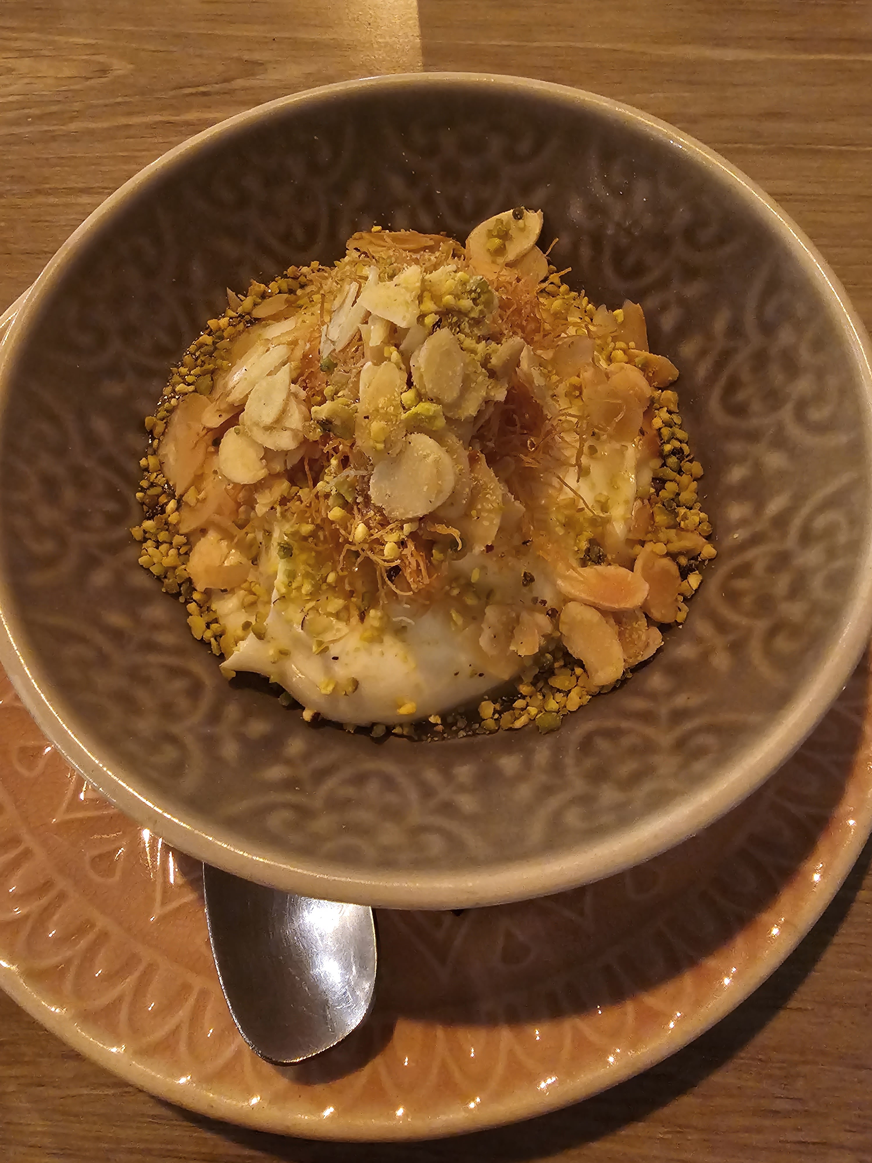 Si je pouvais mettre plus d’étoile je l’aurai fait! Une excellente expérience culinaire chez chef Elkhaldi dans un cadre chaleureux qui nous fait voyager, et c’était la première partie du voyage, qui continue avec un assortiment de mezze juste excellent, la dégustation de chaque élément du plateau m’a fait voyager à Damas, le plat c’était le plat du chef « kebbeh labaniye » la je suis revenue à mon enfance chez ma grand mère en Syrie 😊 plat copieux, trooooop bon, plein de saveurs, une forte envie pour d’autres plats comme les grillades que mon amie a commandé et a adoré mais avec mon plat, ce n’était plus possible 😁 il faudrait revenir. La fin du voyage s’est fini avec un rêve d’été, un désert syrien revisité, pas trop sucré, succulent, je n’ai pas de mots, j’ai arrêté de parler lors de ce voyage, il fallait profiter de chaque instant pour que la dégustation soit au TOP, juste WAW. Si vous cherchez un juste libanais standard, n’y aller pas, c’est un VRAI Restaurant SYRIEN du niveau des chefs étoilés. Merci encore une fois pour ce voyage ♥️♥️♥️♥️